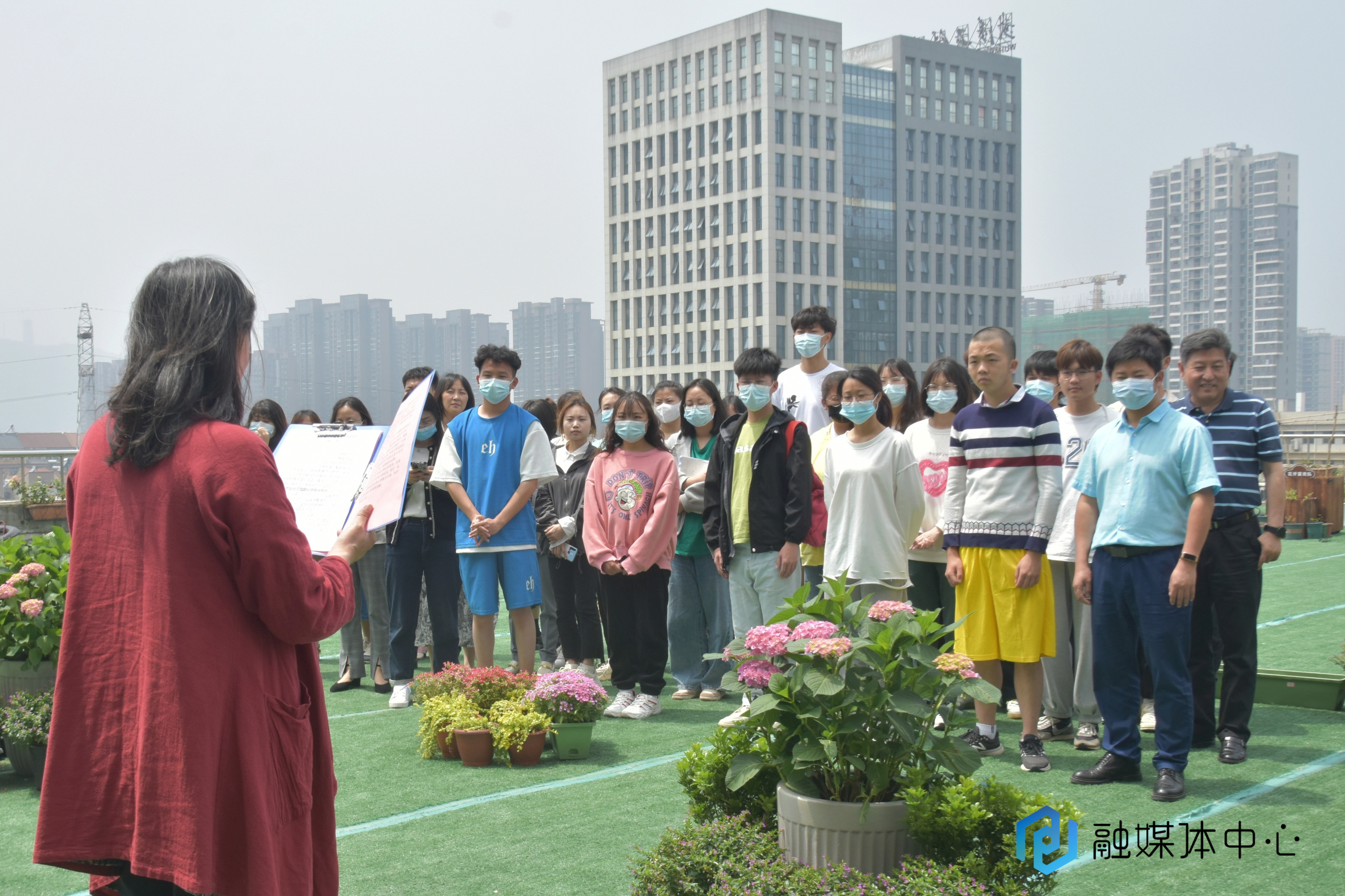 高芸对活动致辞。她指出,五感花园的建设为有需求的学生提供了实践基地,将积极心理学理论与园艺劳动活动有机结合,让同学们运用园艺材料维护美化校园环境,通过视觉、触觉、听觉、嗅觉、味觉五大感官体系与自然环境和植物进行接触,感受生命的活力,舒缓紧张的心情,激发学习生活的自信心。她表示,“五感花园”的开园标志着学校有了属于自己的空中花园,希望“五感花园”在未来学校心理健康教育中心发挥更大的作用。