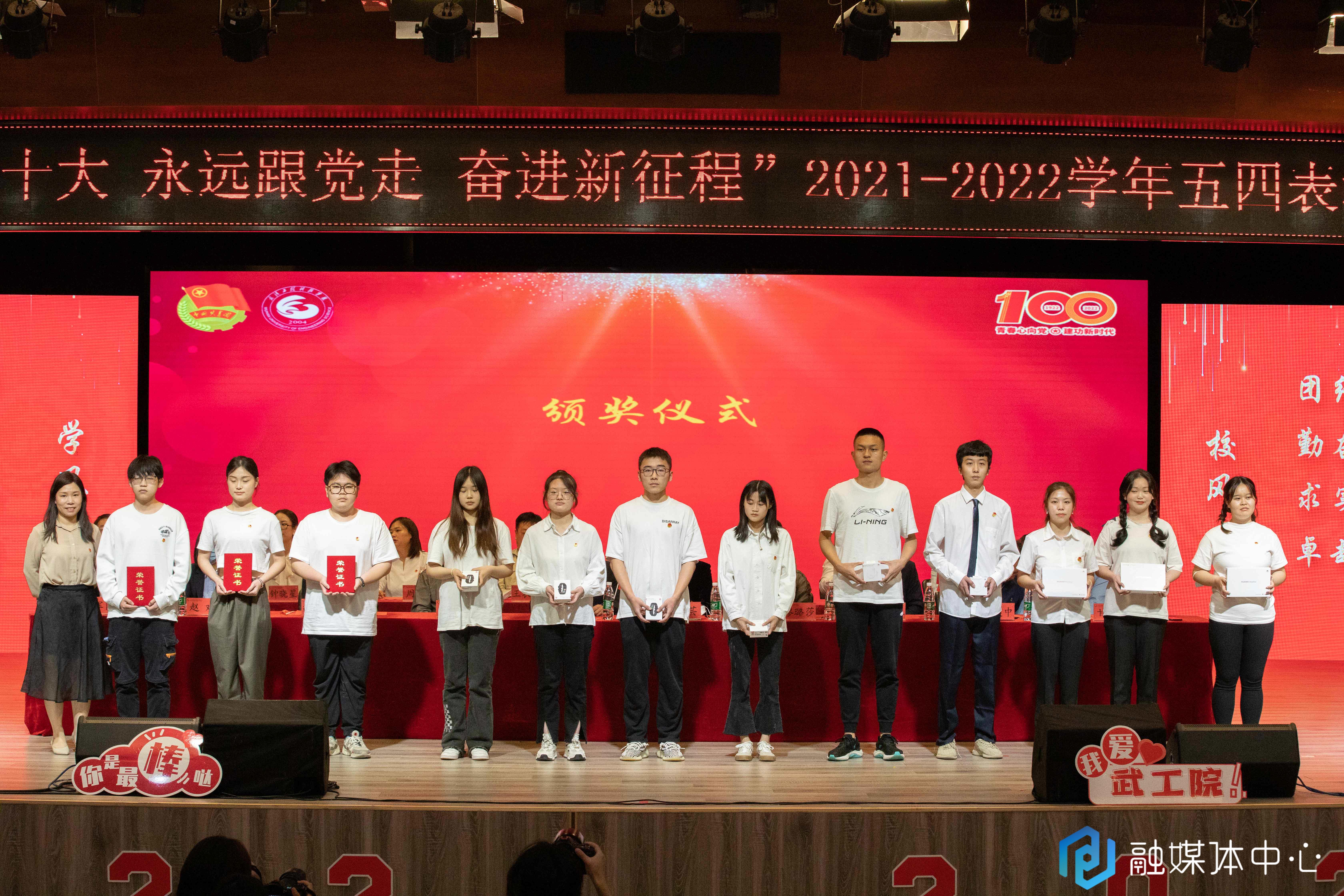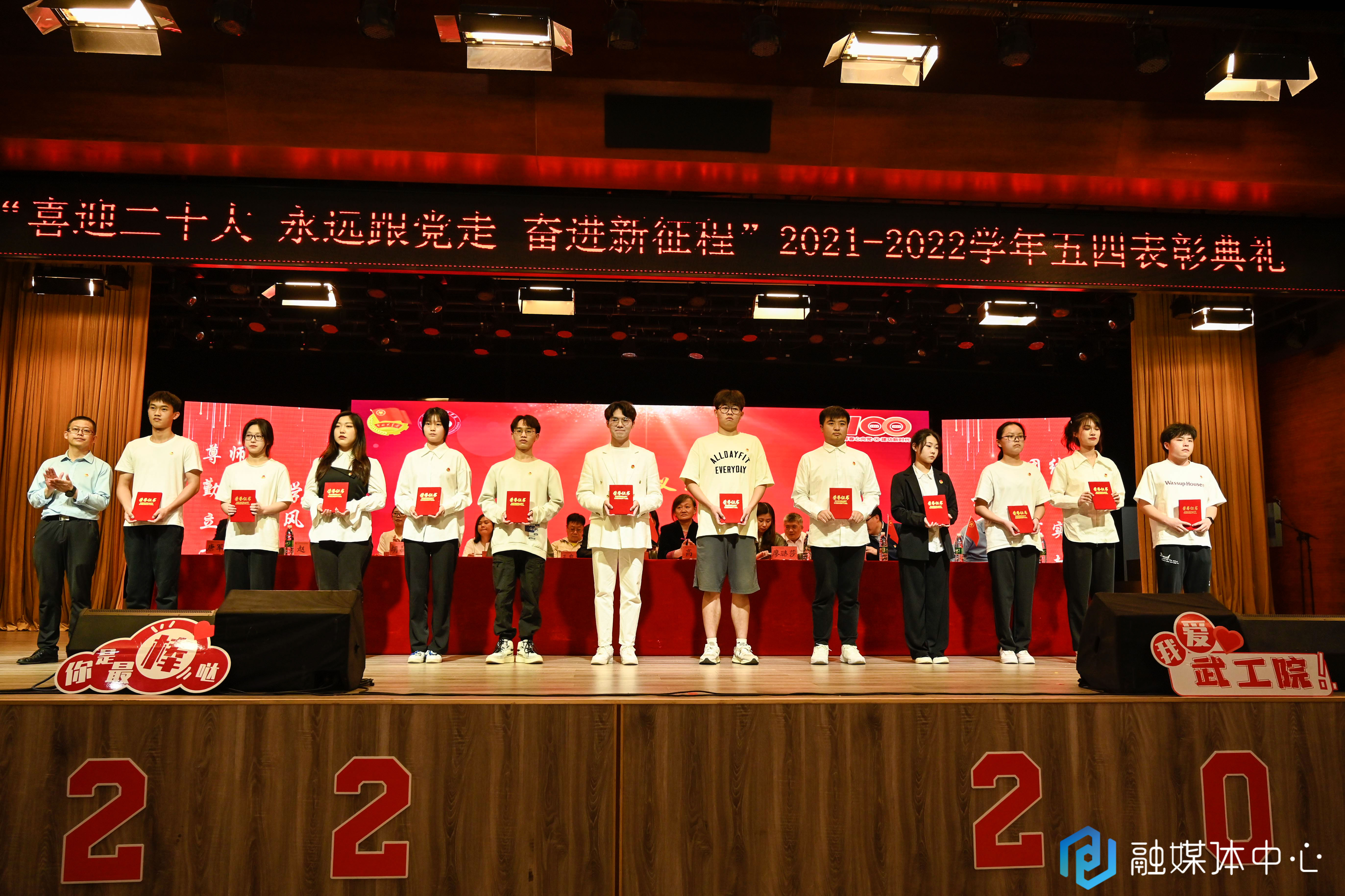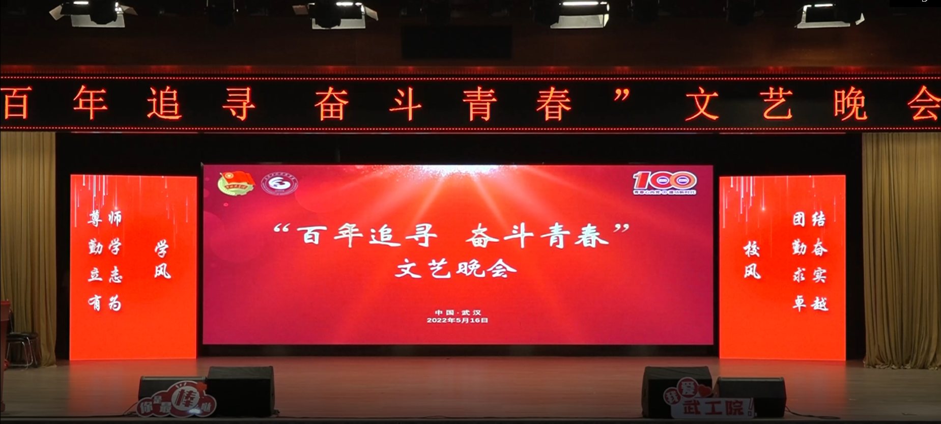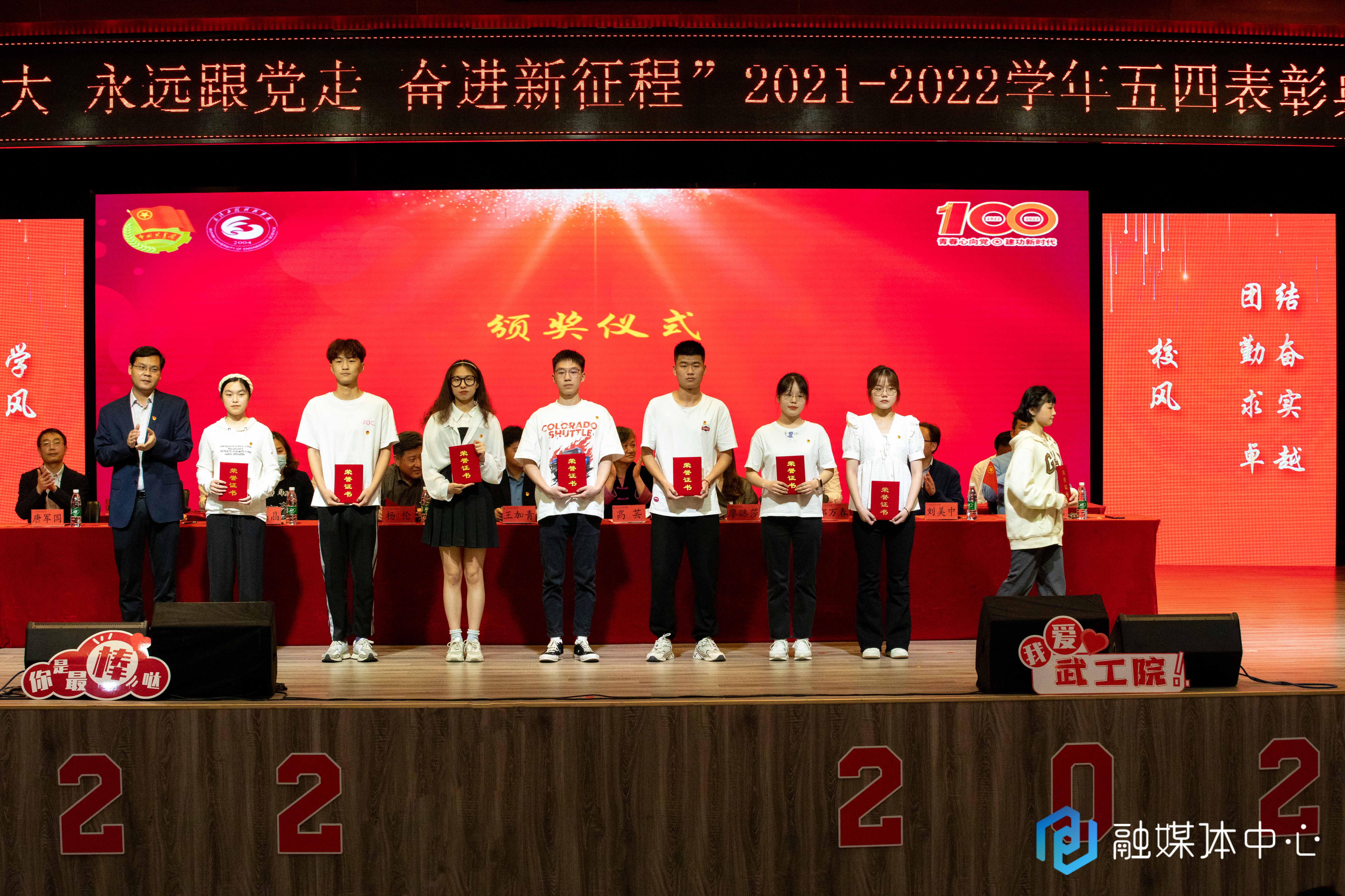 本网讯(大学生记者 徐彤晨 摄影:邱婉琪 潘力 饶晶宇 摄像:梅少菁 张茗 裴晟君 吴清凤)“青春孕育无限希望,青年创造美好明天。一个民族只有寄望青春、永葆青春,才能兴旺发达。”为庆祝中国共青团成立100周年,引导广大青年感悟自强精神,锤炼品德修养,奋进新时代,武汉工程科技学院“喜迎二十大,永远跟党走,奋进新征程”2021—2022 学年五四表彰典礼暨“百年追寻 奋斗青春”献礼建团百年文艺晚会于5月16日晚在三教报告厅举行。学校全体校领导,相关职能处室负责人,各学院党总支书记、团总支书记和师生代表参加了本次典礼。活动由学生工作处副处长、校团委书记钟晓星主持。