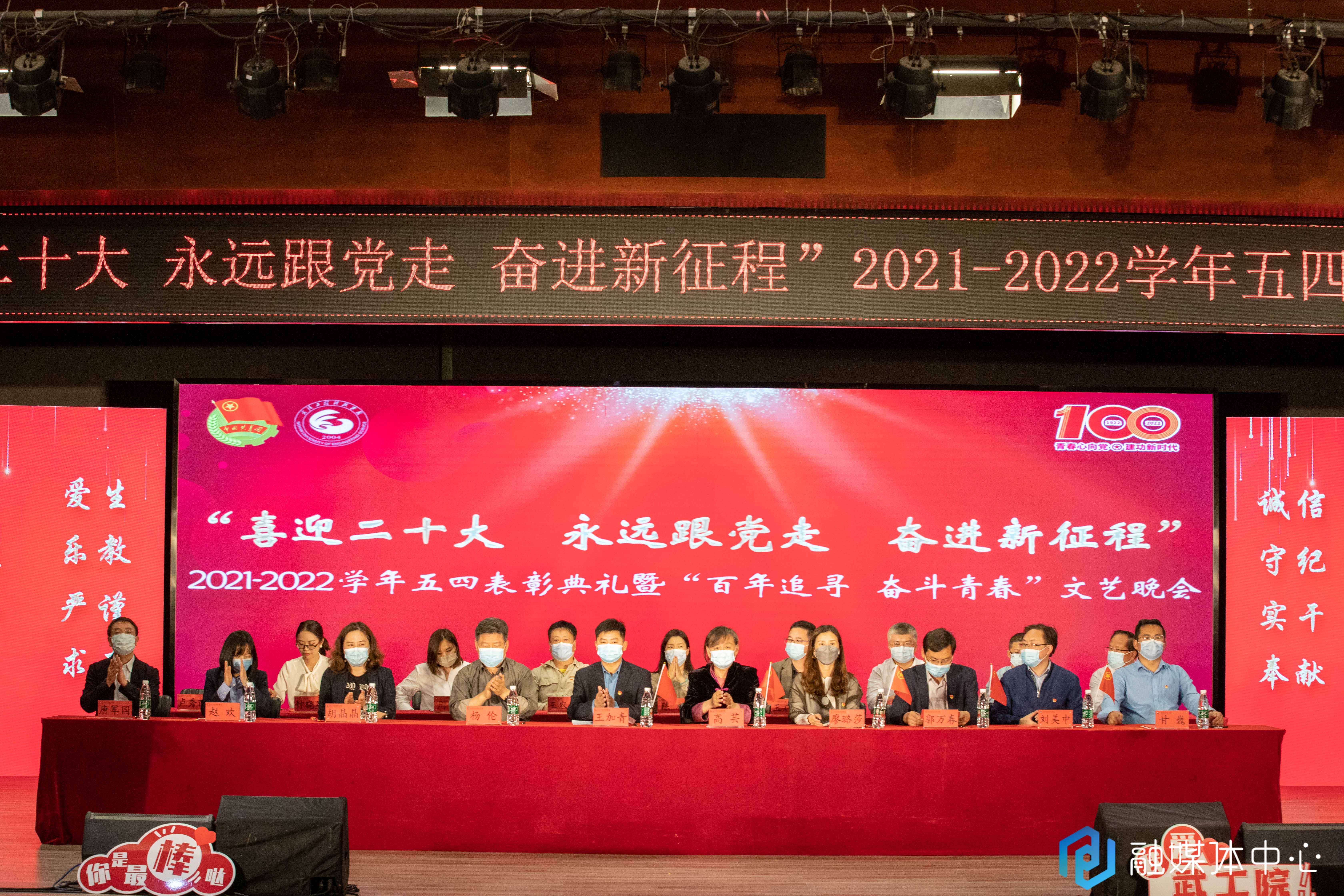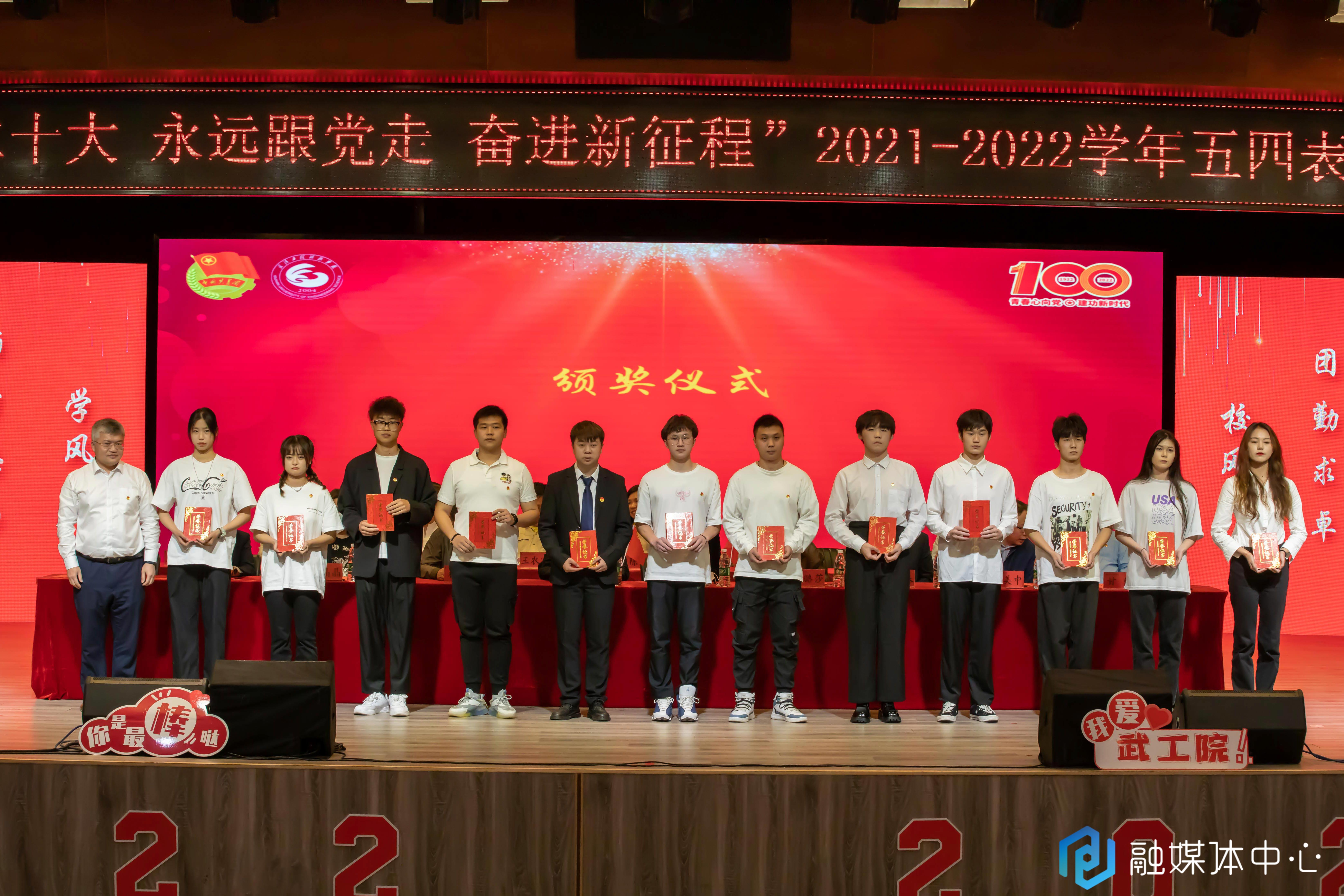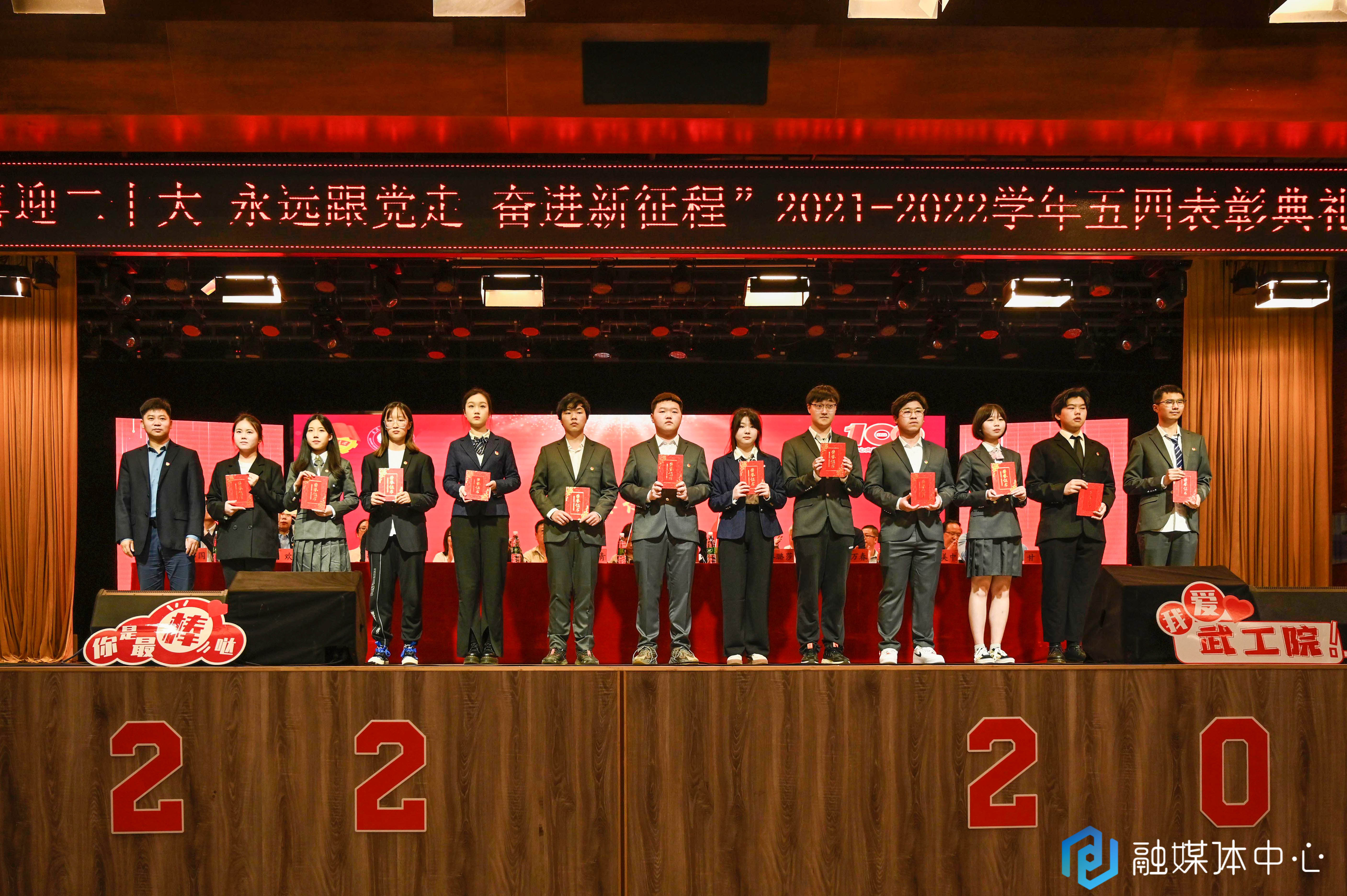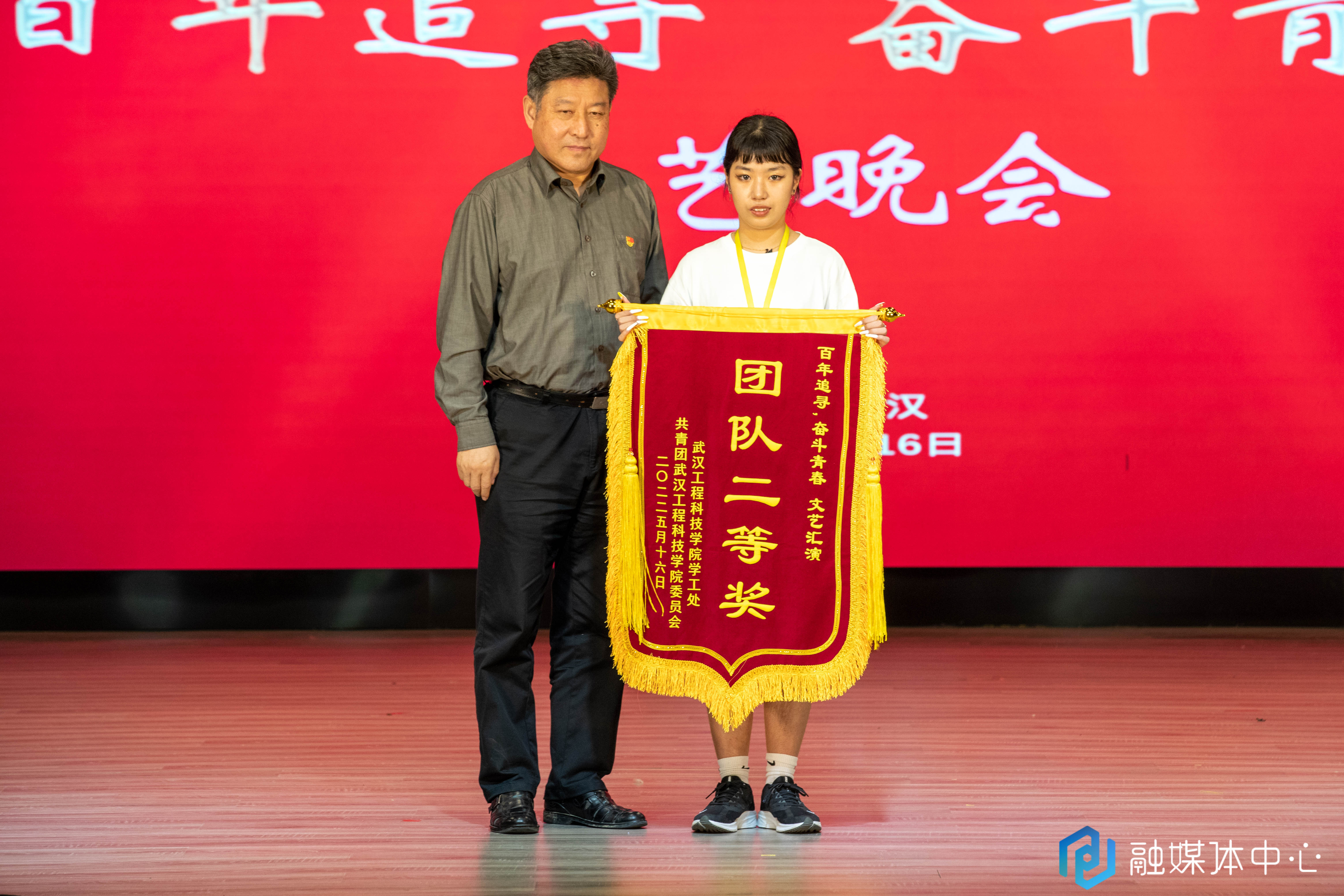 本网讯(大学生记者 徐彤晨 摄影:邱婉琪 潘力 饶晶宇 摄像:梅少菁 张茗 裴晟君 吴清凤)“青春孕育无限希望,青年创造美好明天。一个民族只有寄望青春、永葆青春,才能兴旺发达。”为庆祝中国共青团成立100周年,引导广大青年感悟自强精神,锤炼品德修养,奋进新时代,武汉工程科技学院“喜迎二十大,永远跟党走,奋进新征程”2021—2022 学年五四表彰典礼暨“百年追寻 奋斗青春”献礼建团百年文艺晚会于5月16日晚在三教报告厅举行。学校全体校领导,相关职能处室负责人,各学院党总支书记、团总支书记和师生代表参加了本次典礼。活动由学生工作处副处长、校团委书记钟晓星主持。