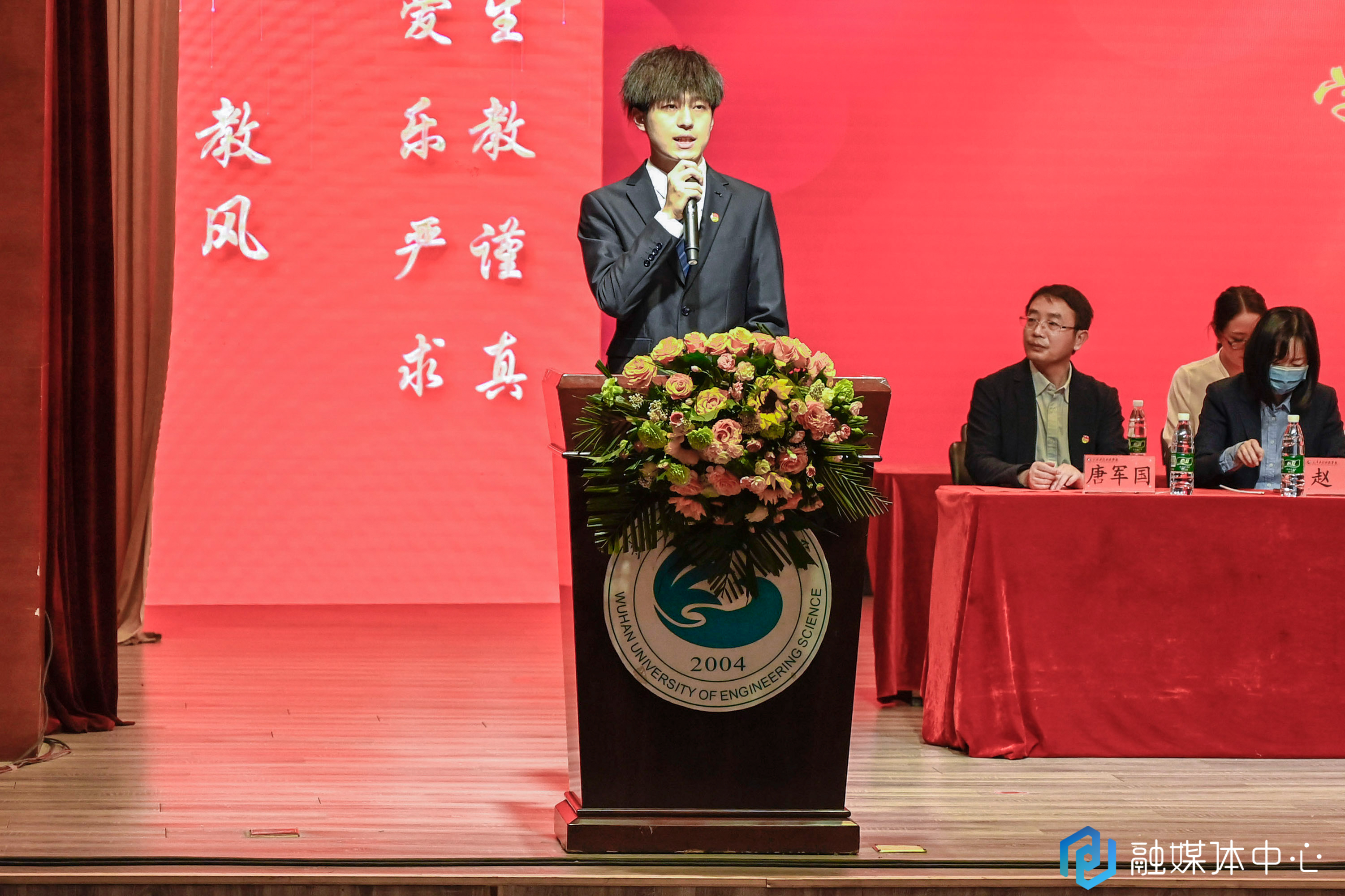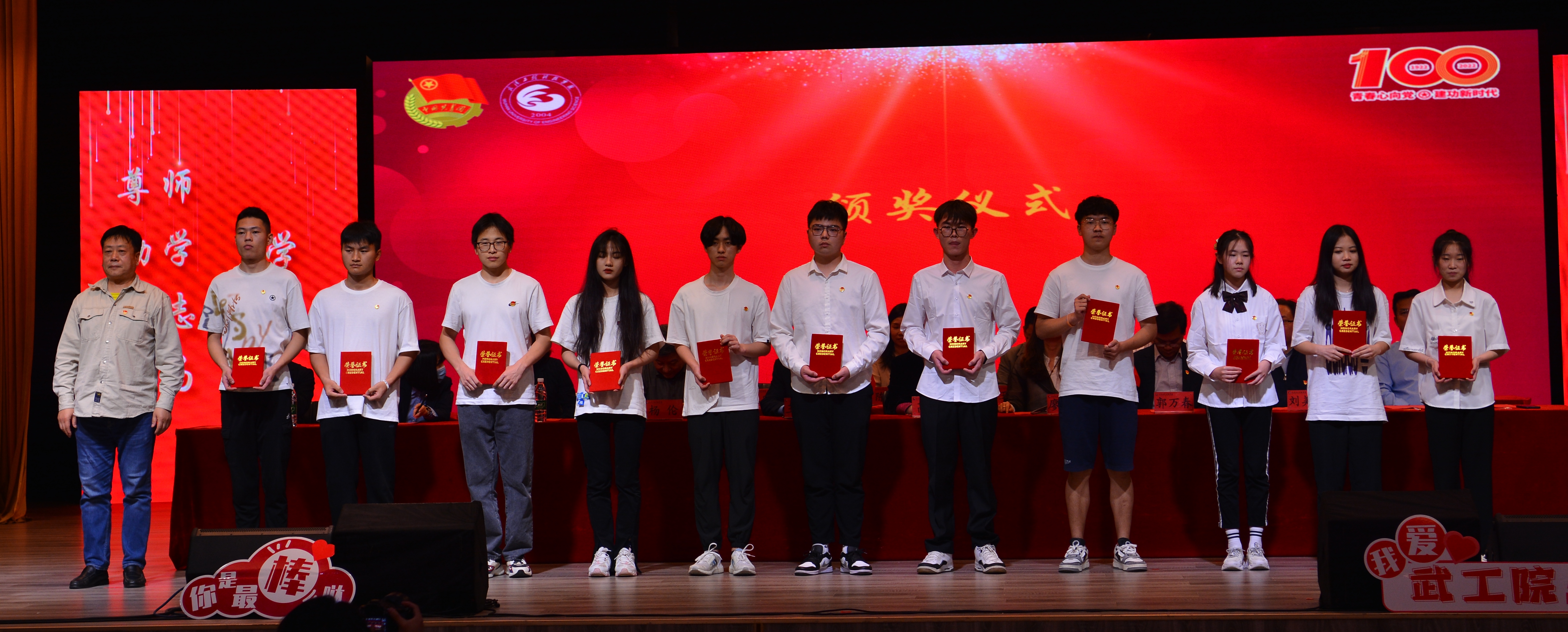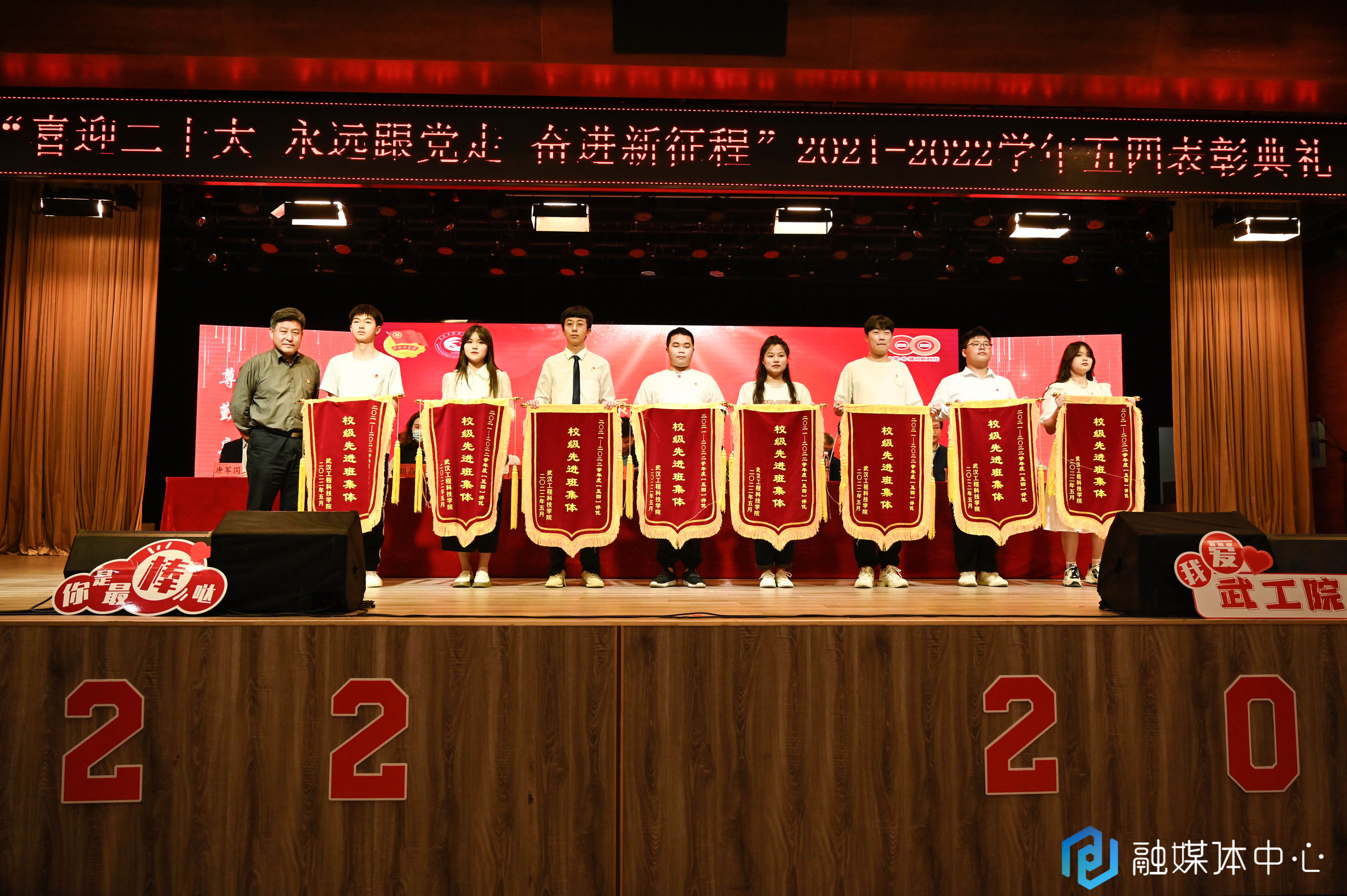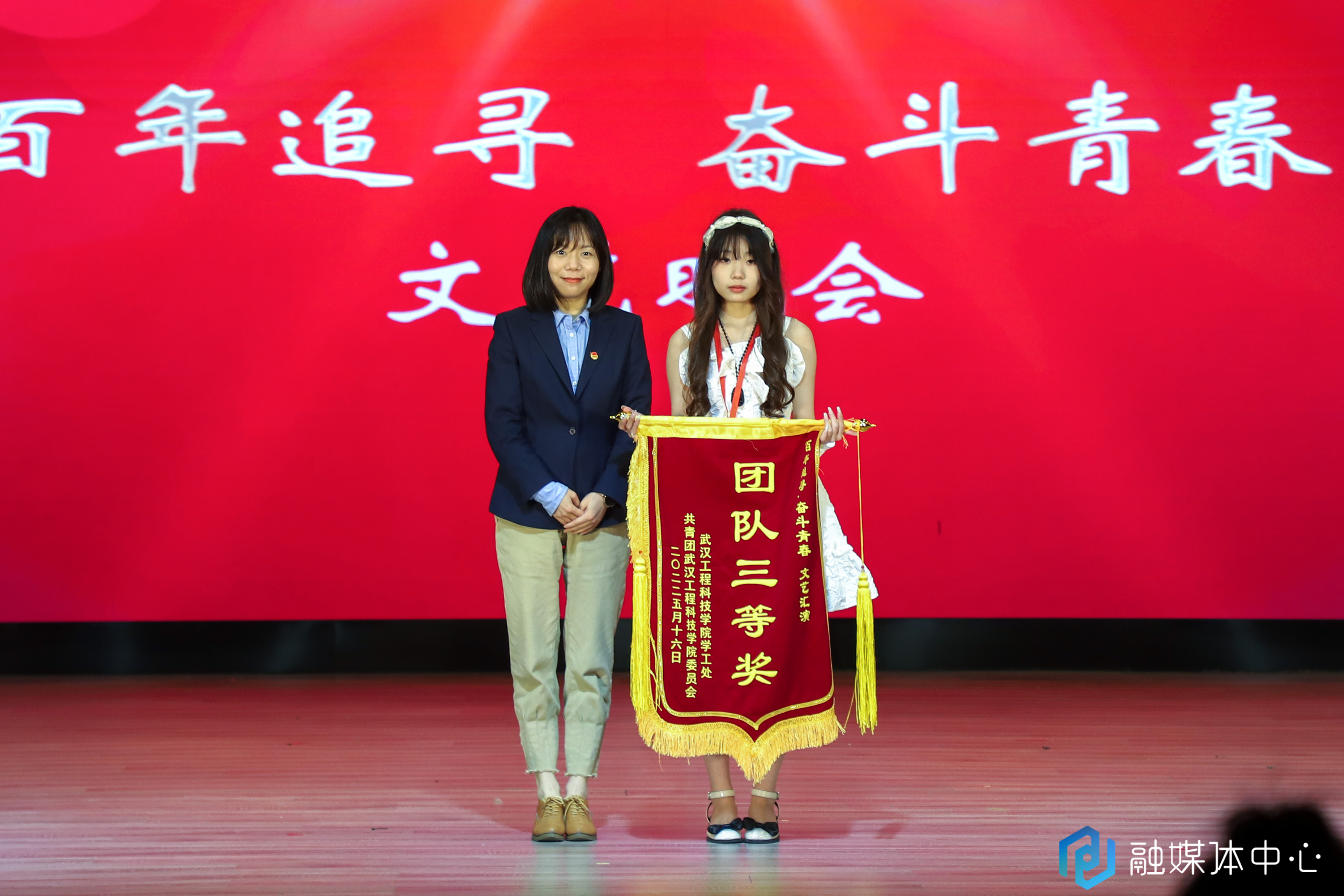 本网讯(大学生记者 徐彤晨 摄影:邱婉琪 潘力 饶晶宇 摄像:梅少菁 张茗 裴晟君 吴清凤)“青春孕育无限希望,青年创造美好明天。一个民族只有寄望青春、永葆青春,才能兴旺发达。”为庆祝中国共青团成立100周年,引导广大青年感悟自强精神,锤炼品德修养,奋进新时代,武汉工程科技学院“喜迎二十大,永远跟党走,奋进新征程”2021—2022 学年五四表彰典礼暨“百年追寻 奋斗青春”献礼建团百年文艺晚会于5月16日晚在三教报告厅举行。学校全体校领导,相关职能处室负责人,各学院党总支书记、团总支书记和师生代表参加了本次典礼。活动由学生工作处副处长、校团委书记钟晓星主持。