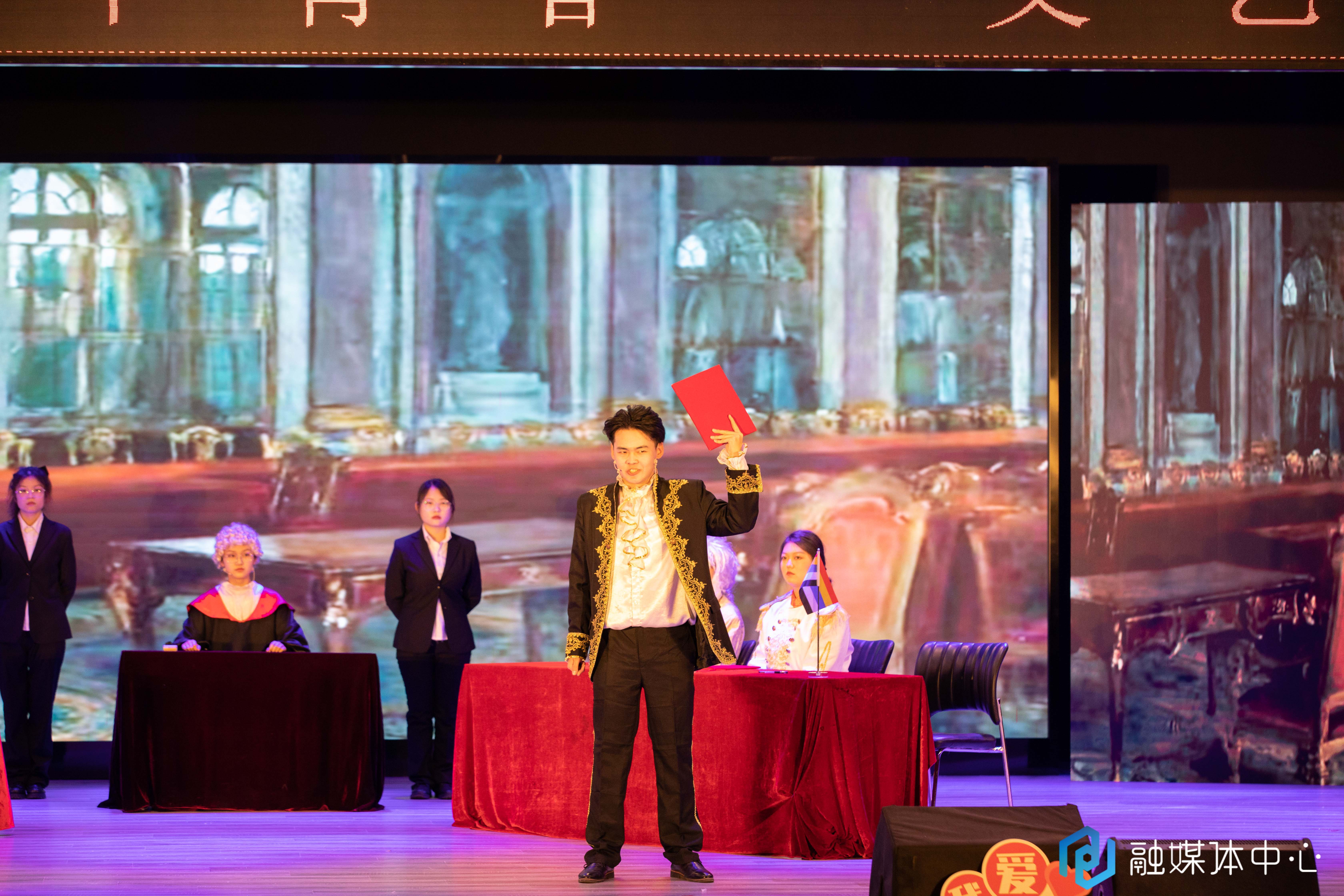 接着,献礼建团百年文艺晚会在红星合唱团所演绎的《1919》情景剧中拉开序幕。此次文艺晚会由五个篇章构成,分别是“初生”、“砥砺”、“奋进”、“信仰”以及“灯塔”,红星合唱团与各个学院用精彩绝伦的表演来展现中国共青团百年奋斗历程与辉煌成就:情景演绎《百年五四,红色传承》,雄赳赳,气昂昂,体现出五四青年的血气方刚;情景演绎《雷锋在我心》与歌舞表演《理想》,将雷锋精神诠释得淋漓尽致;歌舞表演《到农村去,到边疆去》,奏响知青“上山下乡”的新篇章;情景演绎《绿水青山就是金山银山》,表达了把绿水青山建得美,把金山银山做得大的思想宗旨;情景演绎《“疫”起逆行》结合当前时代背景,展现出防疫人员逆行抗疫的责任与担当。最后,晚会在召唤全体师生青春绽放、奋勇前行的歌曲合唱《青春武工院》中落下帷幕。校领导上台与表演者及工作人员合影留念。