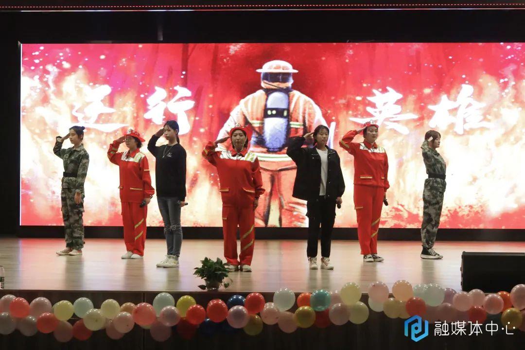 人文学院带来的节目《焰》随着旁白的介绍缓缓拉开序幕。在情节的不断推动下,观众的情绪也随着剧情的发展而不断变化。来自人文学院21级小学教育专业的学生石秀丽说:“当看到女主角小炎最后继承母亲衣钵成为一名消防战士时,我深受感动。也让我明白了美好生活的背后是有人为我们负重前行。”