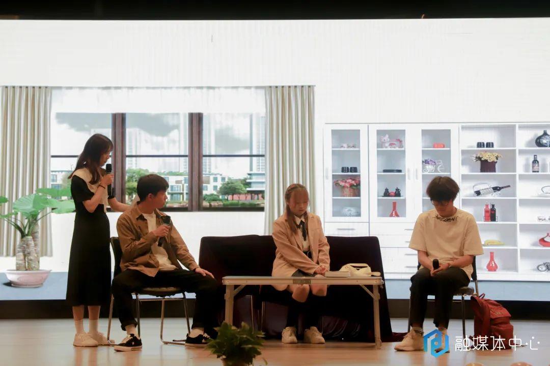 随后,表演正式开始。经济与管理学院表演的《金磊传》是本次比赛的第一个节目。该心灵情景剧讲述,因父母离异,金磊误入歧途,被哄骗吸食新型毒品,最后在同学的帮助和警方的调解下,迷途知返,最终与父母和解的故事。该情景剧给现场观众展现了家庭矛盾带给孩子的负面影响,以及社会上出现的新型毒品对大学生的危害,最后号召大学生远离黄赌毒。