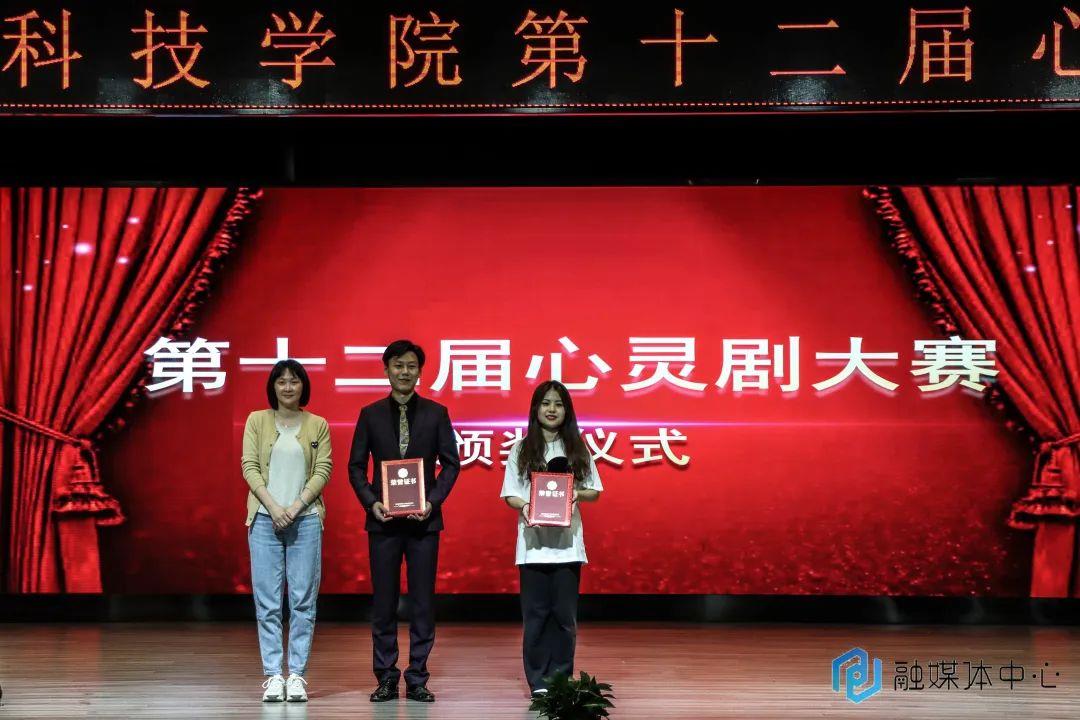 最终,经过评委认真评选,天蓝心理健康协会代表队荣获心灵情景剧大赛一等奖,信息工程学院代表队、人文学院代表队荣获二等奖,经济与管理学院代表队、艺术与传媒学院代表队荣获三等奖;艺术与传媒学院的廖子淦与人文学院的张扬鋆获得最佳男女主角奖,信息工程学院的黎涢鹏、苏晓、高玉丰、郭杰荣获最佳编辑奖;艺术与传媒学院的蒋小靖荣获最佳导演奖。