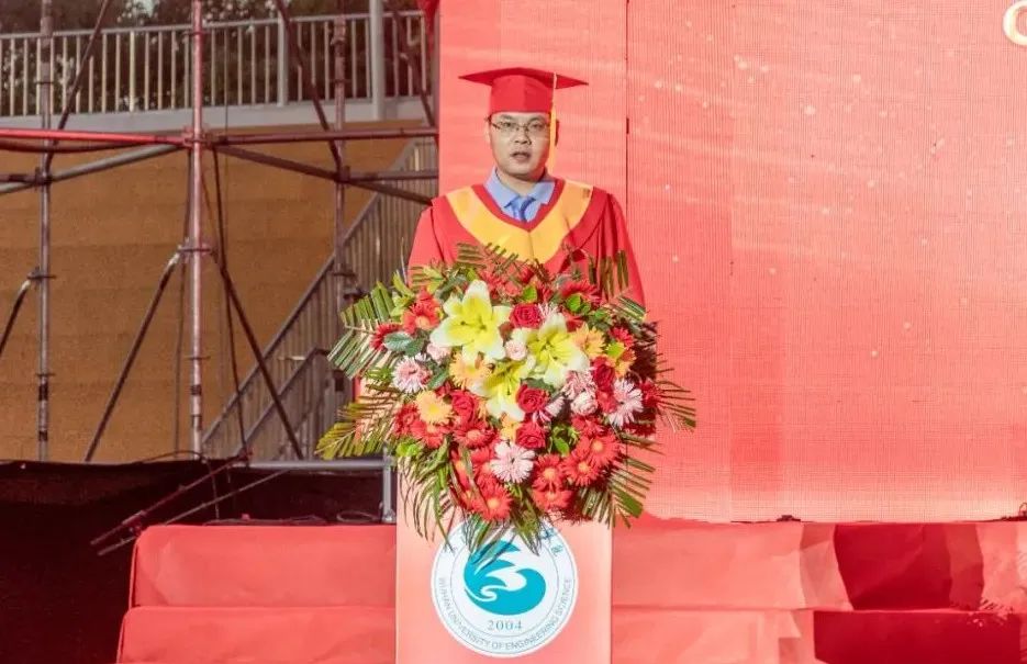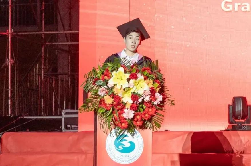 他以国际、国内形势和学校的一系列重大变化为引,回顾了毕业生在武工院度过的四年时光。在过去的几年里,同学们始终践行着武工院“立德 博学 笃行 创新”的校训精神,和学校在一起成长、一起辉煌,懂得了爱国与信仰,明白了责任与使命,感悟了青春与奉献,学会了拼搏与坚持。