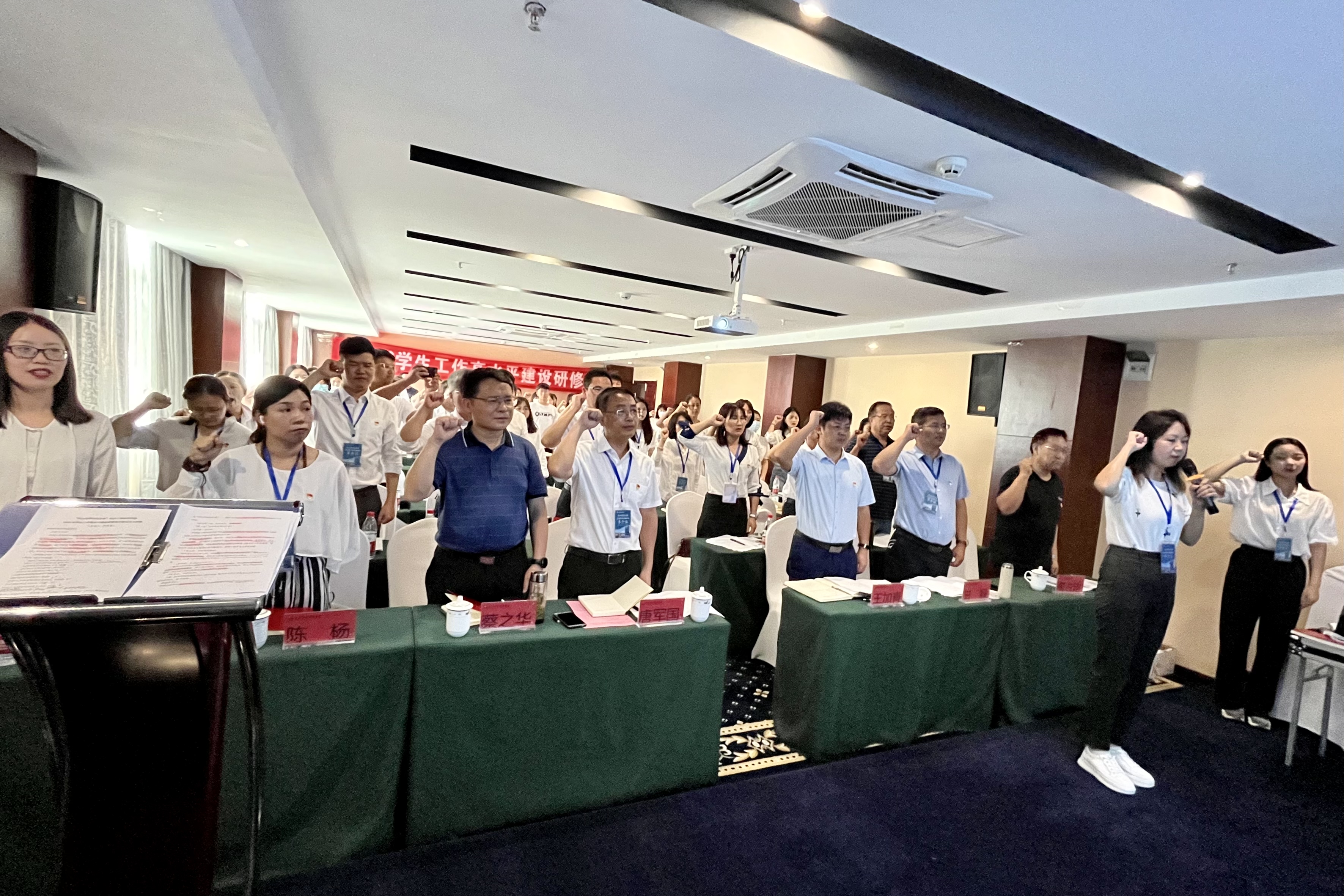信息工程学院团总支书记邹帆带领全体与会人员重温辅导员誓词,激励全体辅导员不忘育人初心。