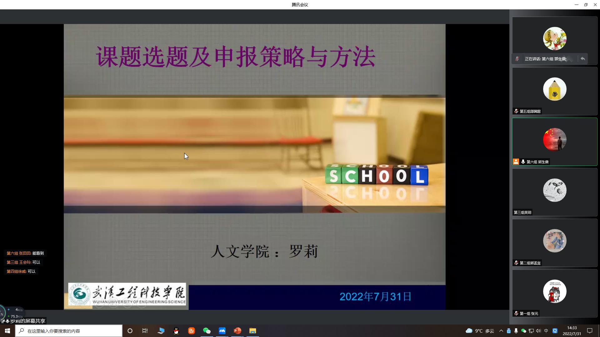 为加强政治觉悟,提升科研能力,7月31日下午,武汉工程科技学院第二期干部培训班举行线上培训。本次培训邀请的专家是我校马克思主义学院院长阎占定教授和人文学院罗莉教授,第二期干部培训班全体学员参加培训,培训由人文学院副院长、第二期干部培训班班长郭生鼎主持。