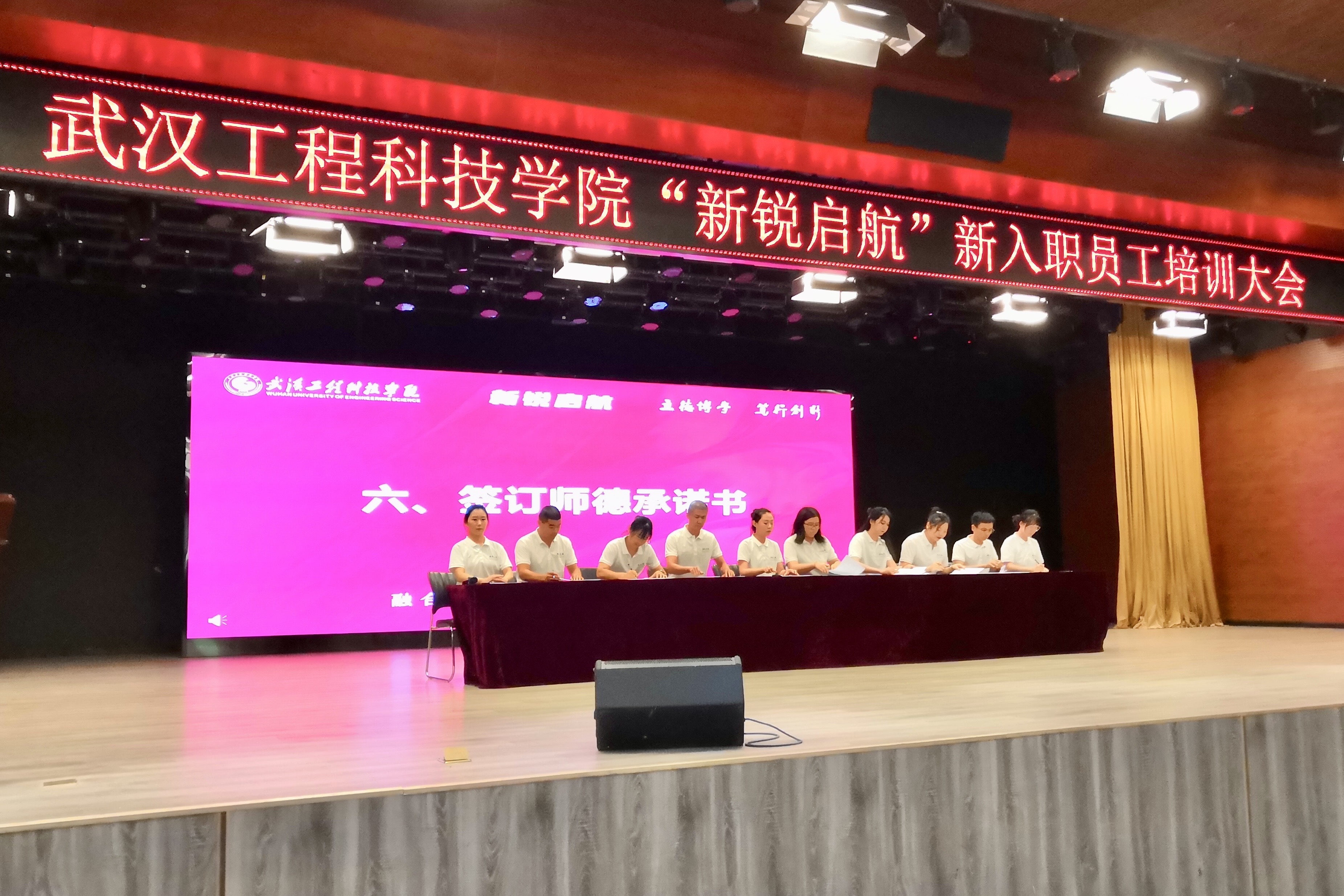 学员代表上台签订师德承诺书。