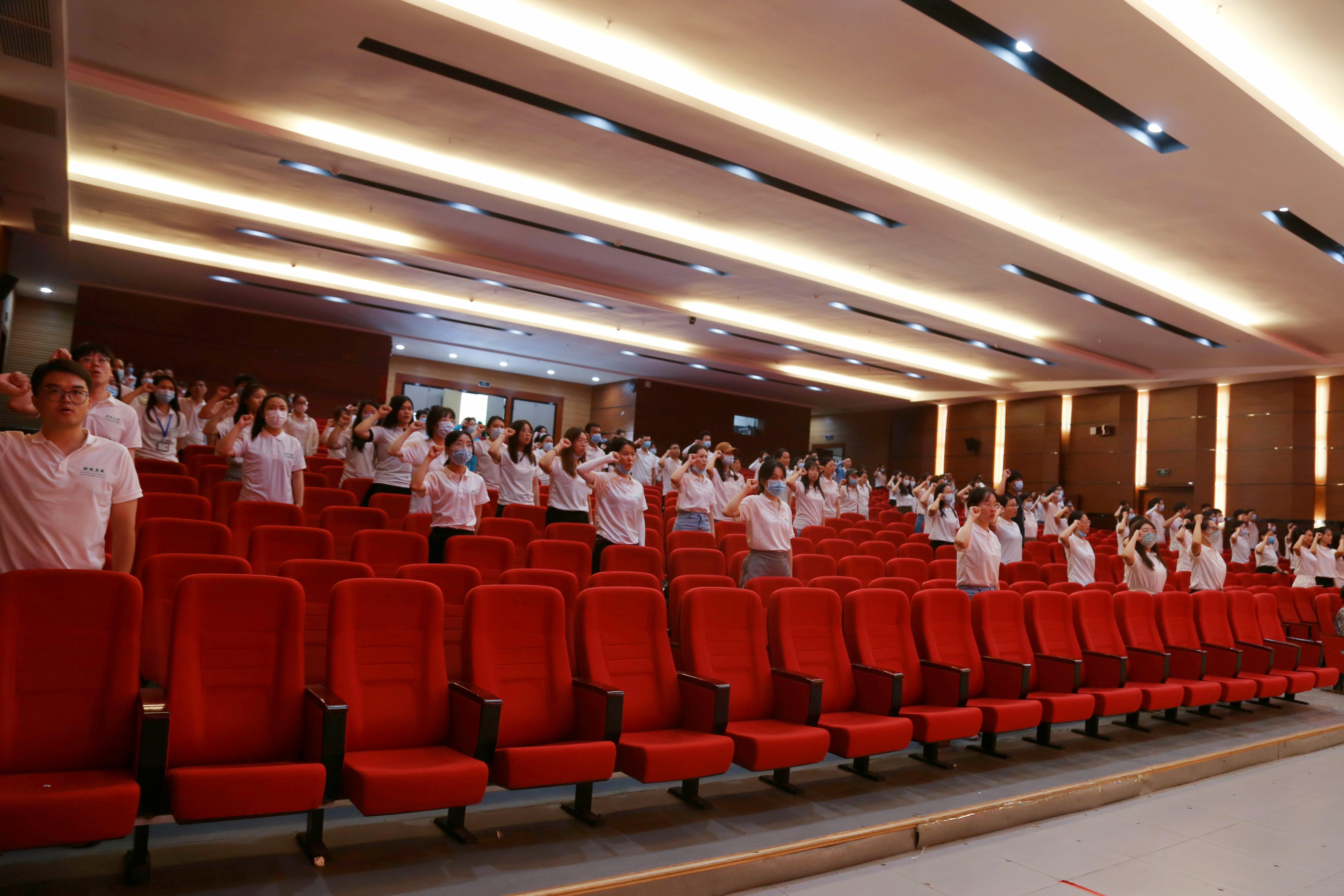 优秀学员代表韩笑带领全体新入职员工进行入职宣誓。全体新入职员工起立,举起右手,庄严宣誓:“我志愿成为一名人民教师,忠诚党的教育事业,遵守教育法律法规,履行教书育人职责,引领学生健康成长,做到有理想信念、有道德情操、有扎实学识、有仁爱之心,为教育发展、国家繁荣和民族振兴努力奋斗!”