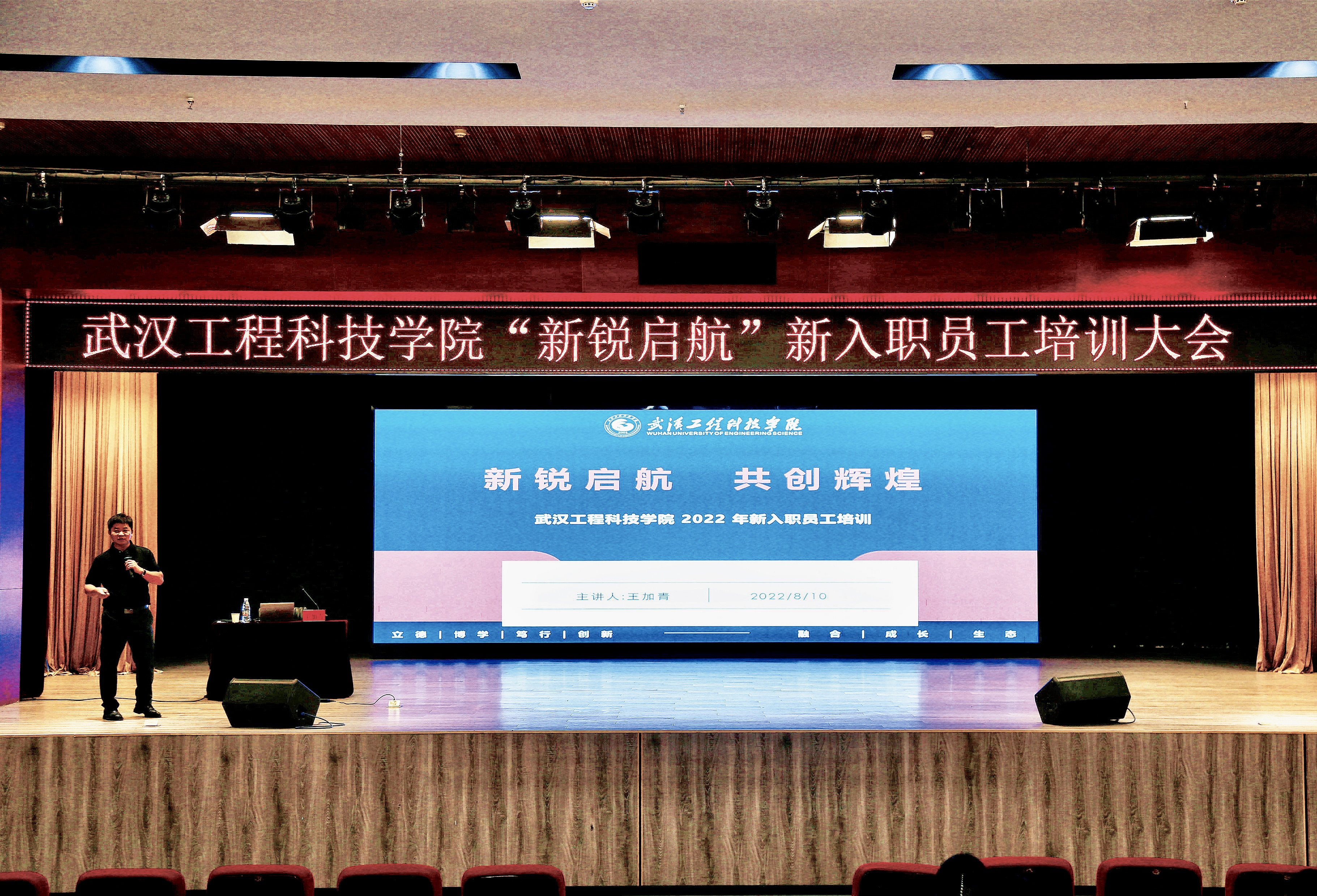 8月11日,武汉工程科技学院2022年“新锐启航”新入职员工培训结业典礼在三教报告厅举行。学校党委书记高芸,党委副书记、校长助理、学生工作处处长唐军国,党委常委、校长助理郭万春,各学院、相关职能处室负责人出席本次结业典礼,结业典礼由人事处副处长湛正祥主持。
