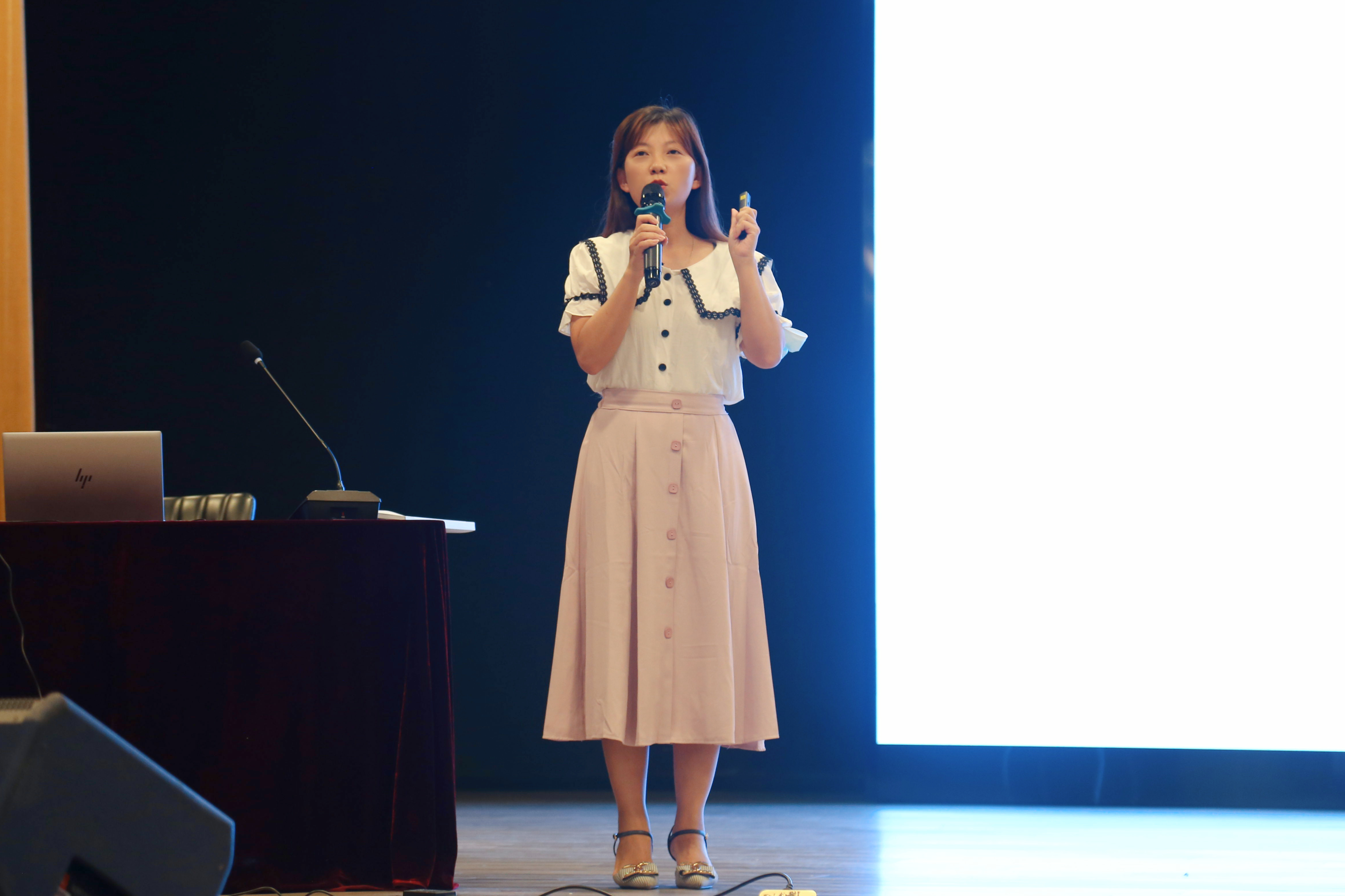 辅导员韩笑作为优秀学员代表发言,她对学校为新入职教师提供了此次培训学习机会表示感谢。她说,本次培训内容丰富,既有素质拓展、学校发展、师德师风、课程思政、教学设计等专题讲座,又有公文写作、学生工作、人事制度等专题培训。她表示一定不辜负学校领导和培训教师的殷切期望,将一腔热血投入到工作,将一片爱心奉献给学生,为学校发展做出更大的贡献。