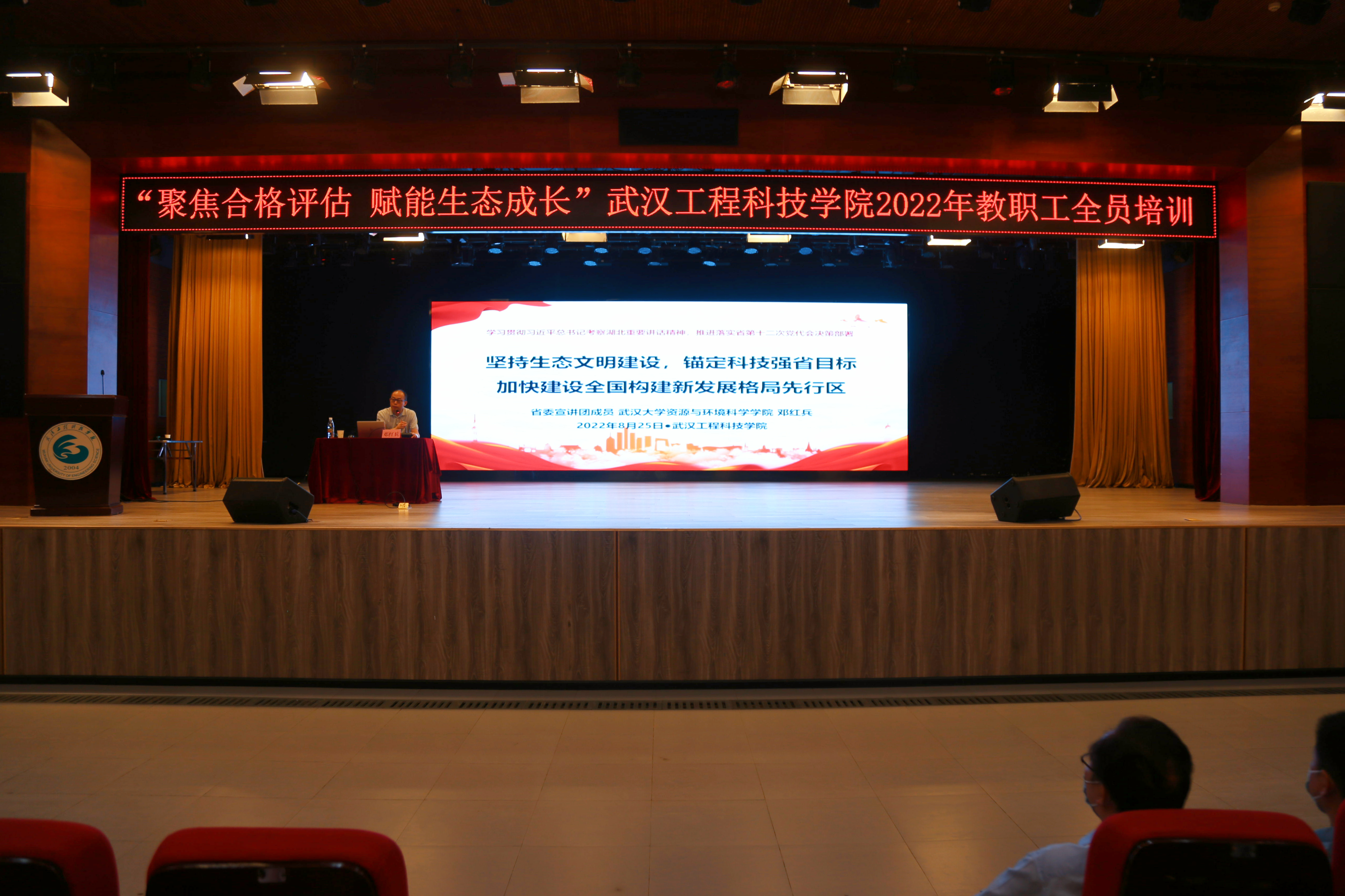 本网讯(通讯员 彭雪 刘杨宇倩)为深入学习宣传贯彻习近平总书记考察湖北重要讲话精神,推进落实省第十二次党代会部署,进一步引导我校党员干部和师生把思想和行动统一到党代会精神上来,把力量凝聚到落实党代会确定的各项目标任务上来,迅速掀起学习宣传贯彻热潮,8月25日上午,武汉工程科技学院在三教报告厅举行主题宣讲活动,省委宣讲团成员、武汉大学教授、博士生导师邓红兵作专题宣讲,全体校领导、全校教职工听取宣讲报告。