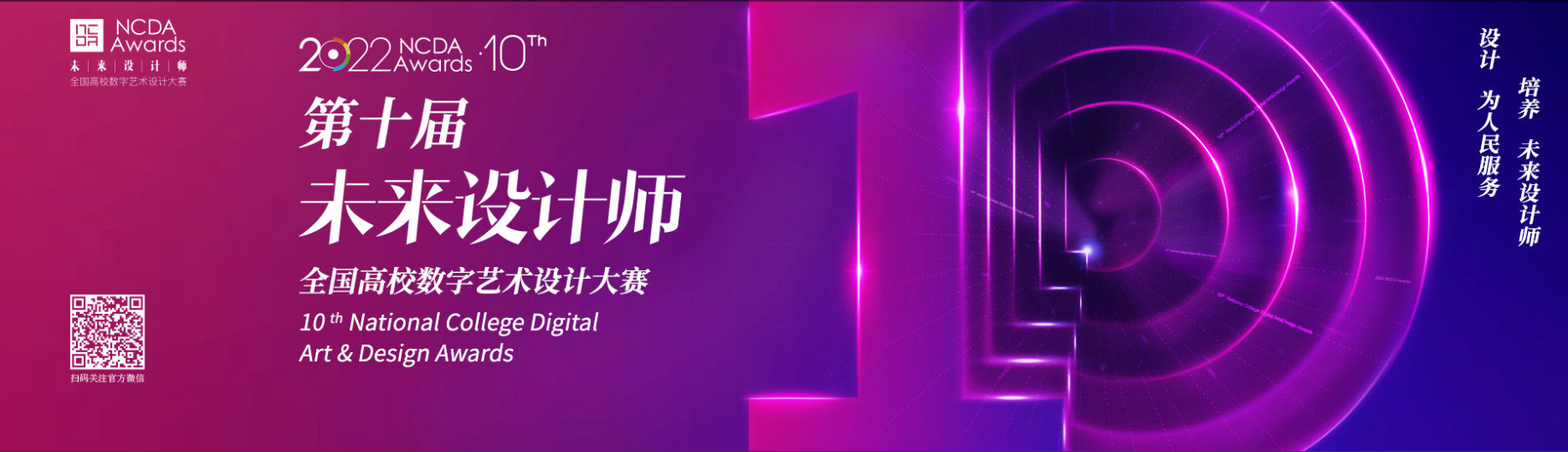 未来设计师•全国高校数字艺术设计大赛(NCDA)始于2012年,每年举办一届,已连续举办九届。作为一项高规格、高水平的全国性专业赛事,“学生组”和“教师组”赛事分别入选中国高等教育学会发布的《全国普通高校学科竞赛排行榜》和《全国普通高校教师教学竞赛项目》,是高校教育教学改革和创新人才培养的重要竞赛项目之一,具有广泛影响力;每年有近1500所高校的100万人次大学生参赛,近90%的985、一流大学和知名设计院校参赛。