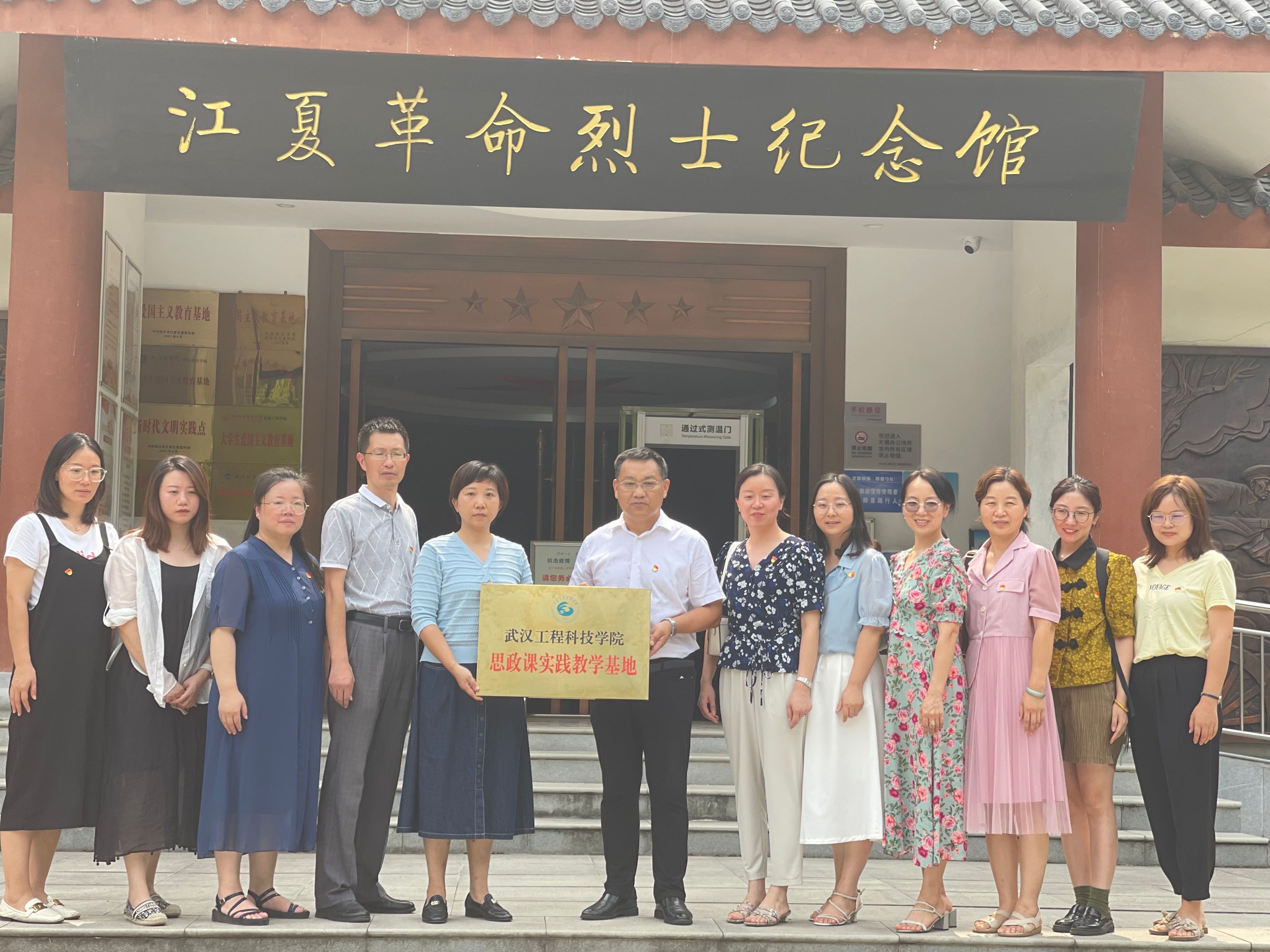 通讯员(通讯员 郝晓鹏)为落实学校“聚焦合格评估 赋能生态成长” 2022 年教职工培训精神,帮助新进教师更好地适应、融入学校教育教学,增强基层党组织的凝聚力、战斗力,8月25日下午,我校马克思主义学院党支部组织教师党员前往武汉市江夏区革命烈士纪念馆举行党员学习活动暨共建“武汉工程科技学院思政课实践教学基地”挂牌仪式。江夏区革命烈士纪念馆负责人董明慧,我校马克思主义学院院长阎占定、党支部书记李英参加挂牌仪式。