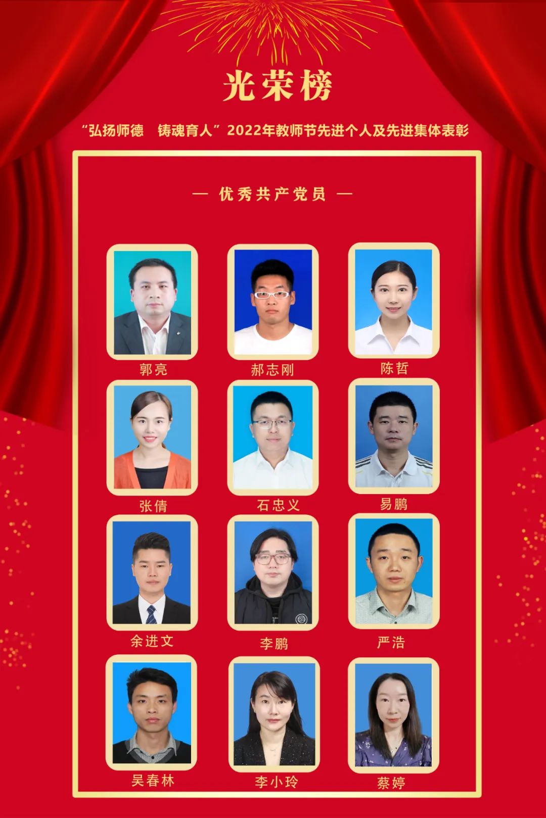 获奖者分别是:郭亮、郝志刚、陈哲、张倩、石忠义、易鹏、余进文、李鹏、严浩、吴春林、李小玲、蔡婷