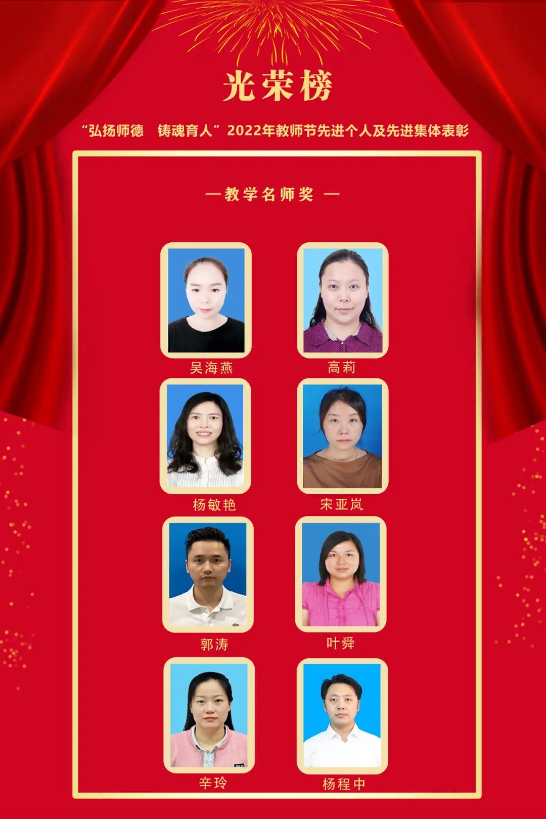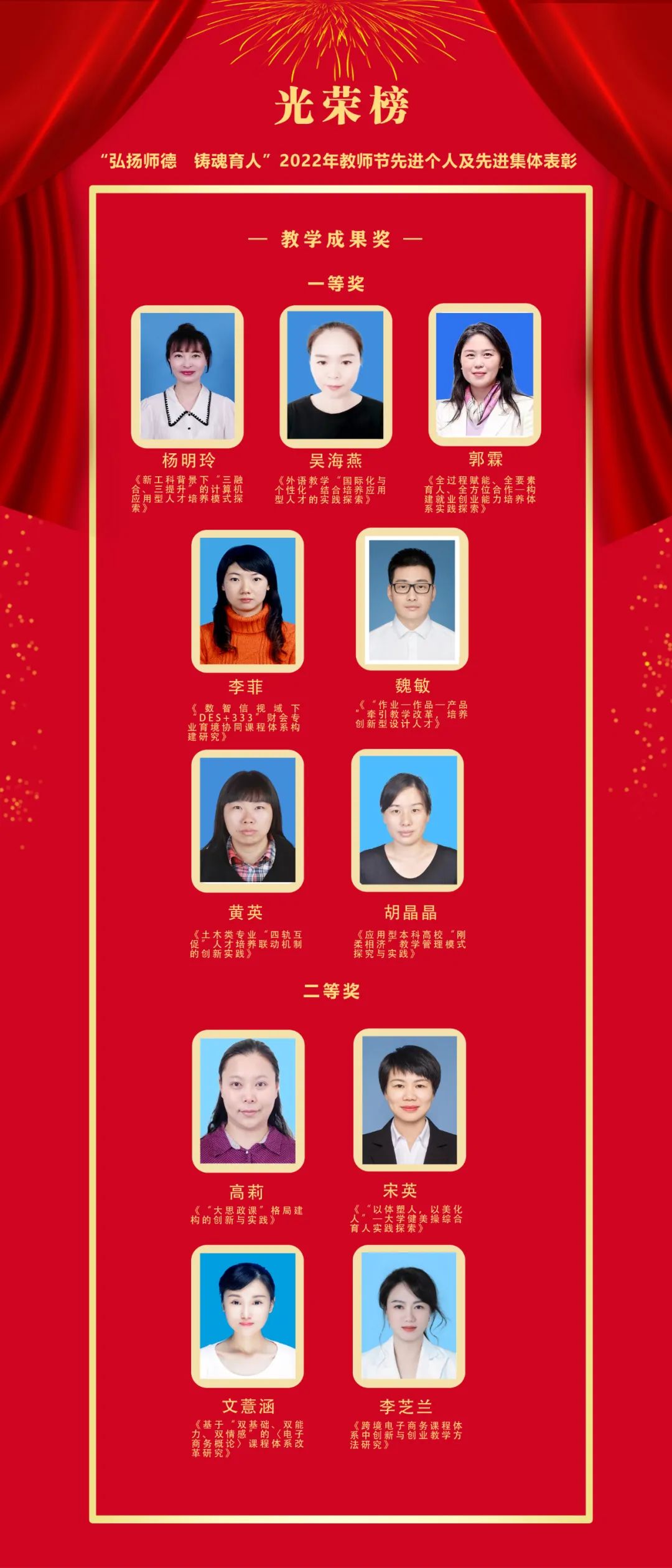 获奖者分别是:吴海燕、高莉、杨敏艳、宋亚岚、郭涛、叶舜、辛玲、杨程中