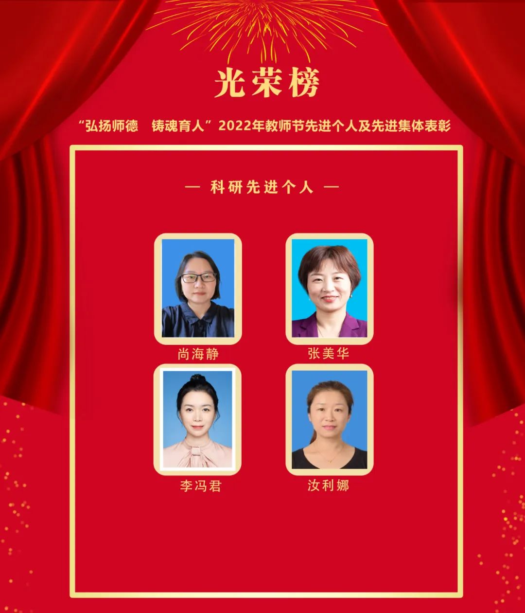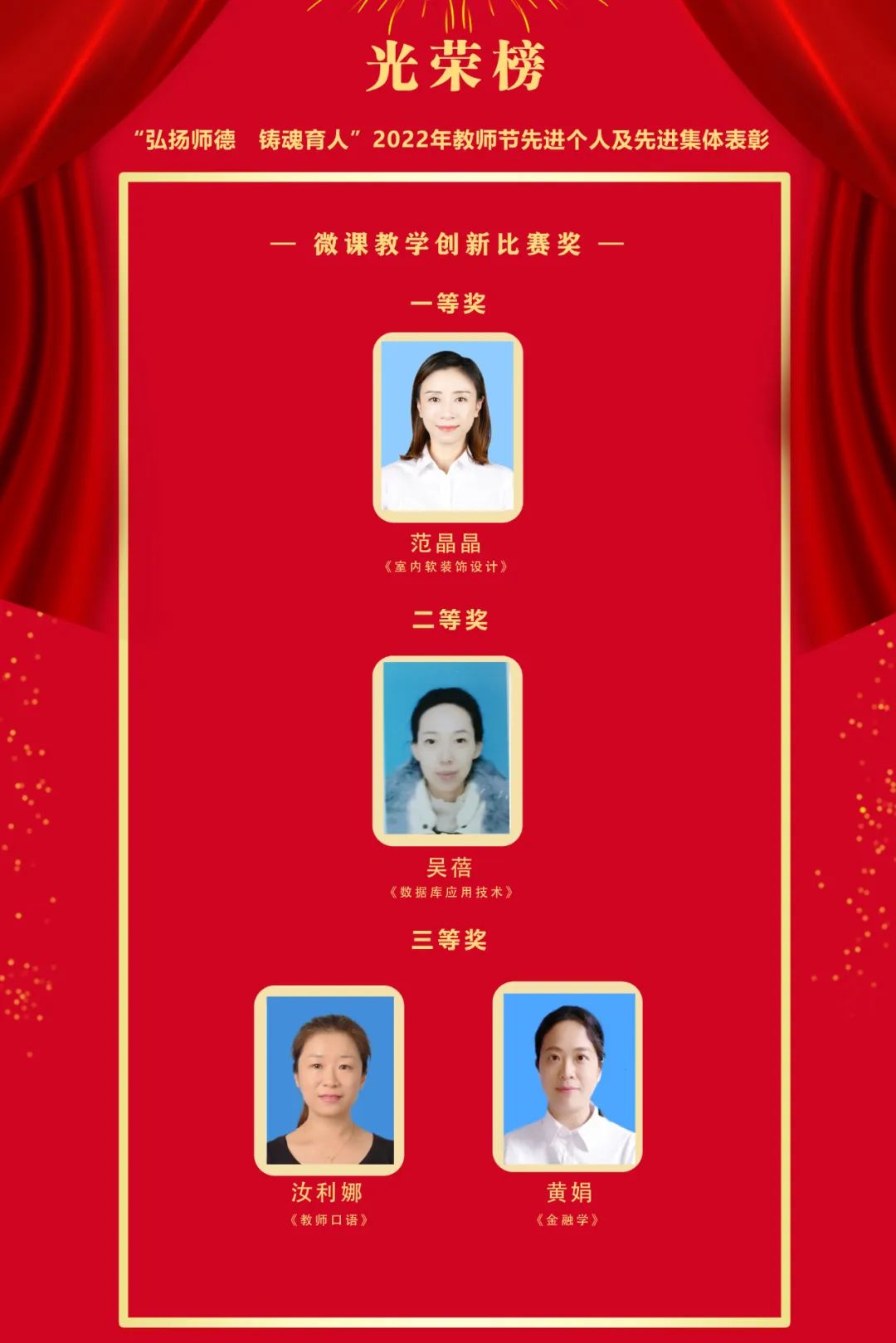 获奖者分别是:尚海静、张美华、李冯君、汝利娜