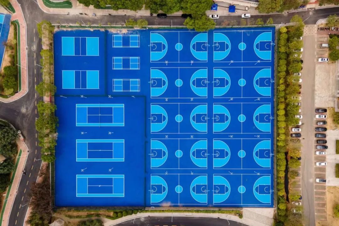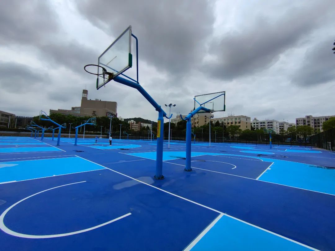 篮球场是象征青春的符号,崭新的蓝色球场与天空交相辉映,伫立在中央的路灯,将见证比赛时关键一球的瞬间,挥洒炙热滚烫的汗水,又可以和小伙伴一起好好打球啦!