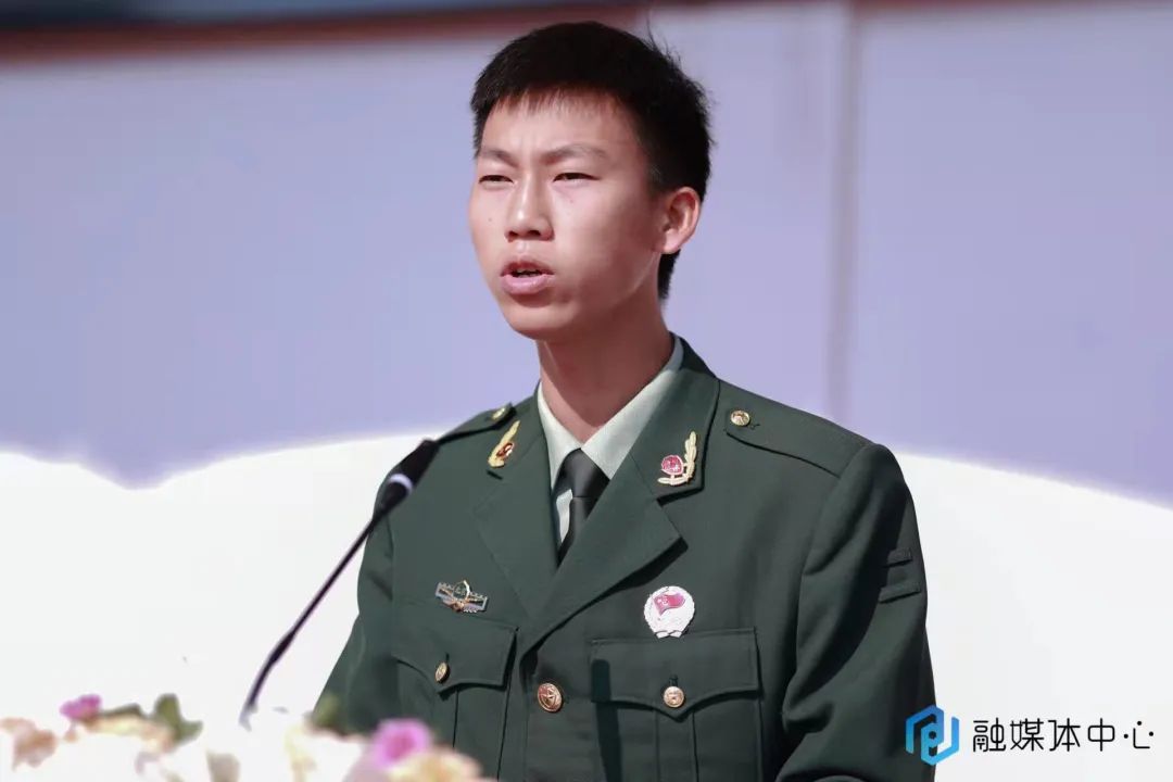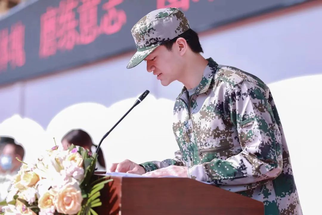 会上,2022级新生代表邢家豪发言。他说:“我们每一个武工院学子当心怀感恩,传承大爱,不负学校创造的良好军事训练环境,刻苦训练,在青春赛道上跑出青年风采。”他认为,不积跬步无以至千里,不积小流无以成江河。军训固然是苦,可是一身戎装让我们信心百倍。只要我们步步坚实,脚踏实地,这段军训生活肯定是最宝贵的人生阅历。