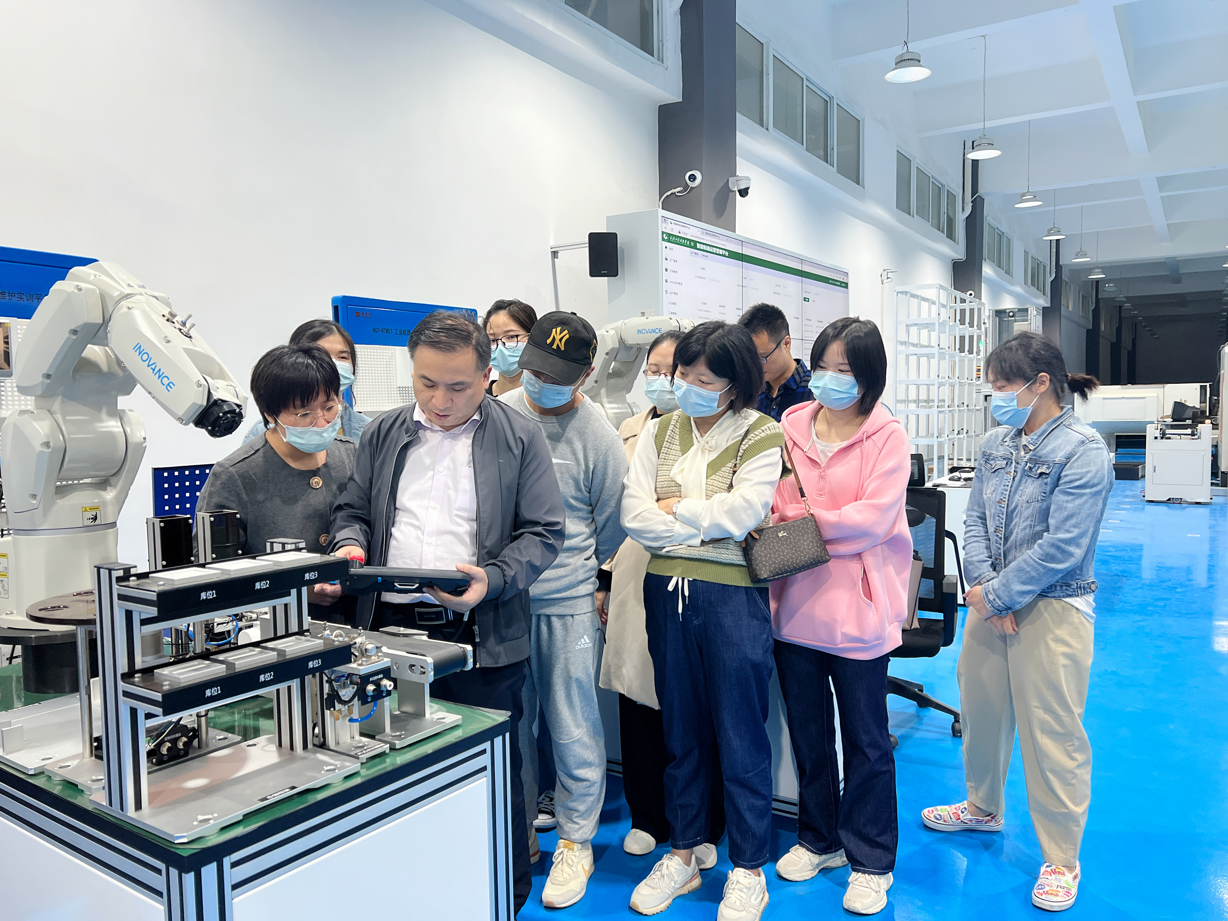 本网讯(通讯员 李孝元 李露雅)为加强教师对智能制造的理解,提高教师对智能产线的动手操作能力,10月5日,我校信息工程学院机械系举办了“智能制造中心-机器人培训”活动,学校副校长杨伦、校长助理兼教务处长胡晶晶莅临现场观摩。