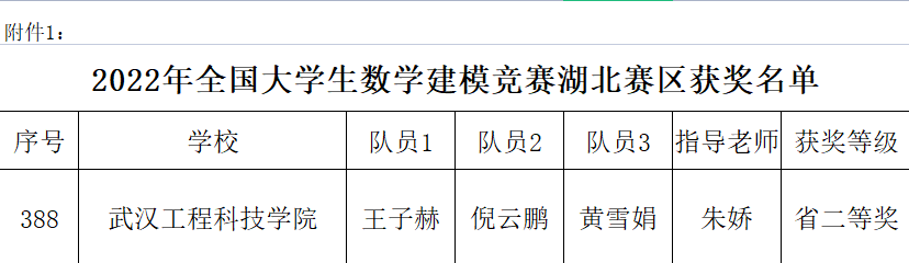 全国大学生数学建模竞赛含金量高,获奖率低,难度系数大,希望武工院学子能够以以上同学为榜样,充分发挥自己的优势,发扬团结协作精神,积极参加来年的比赛。