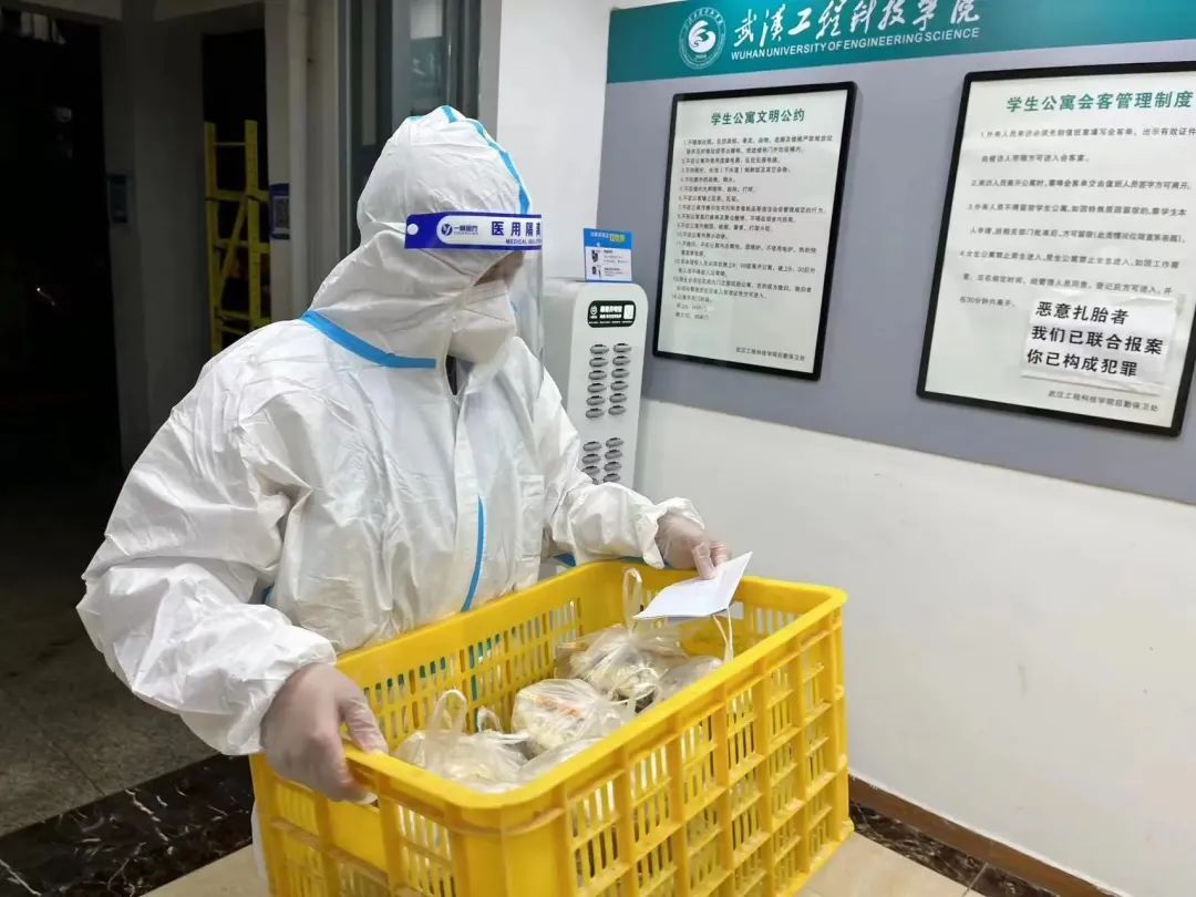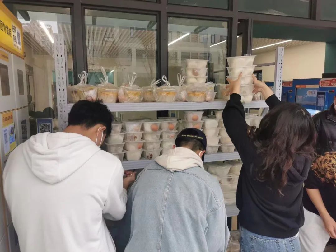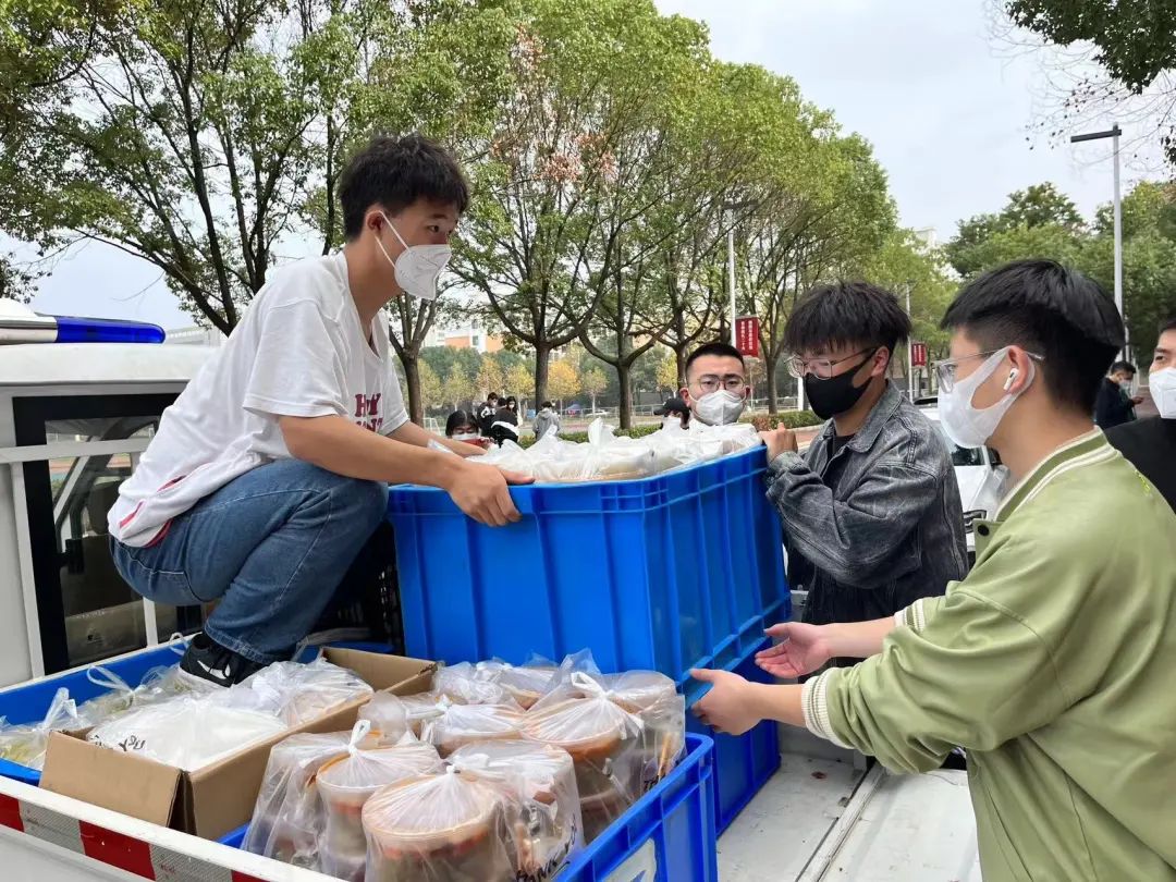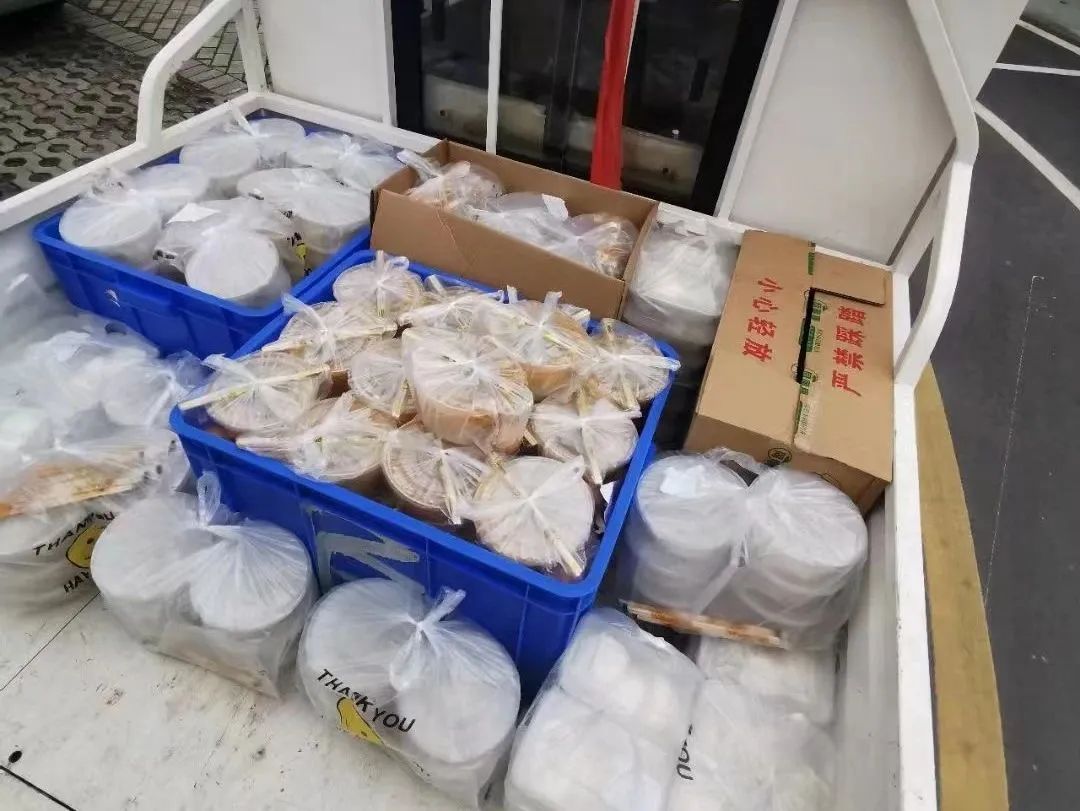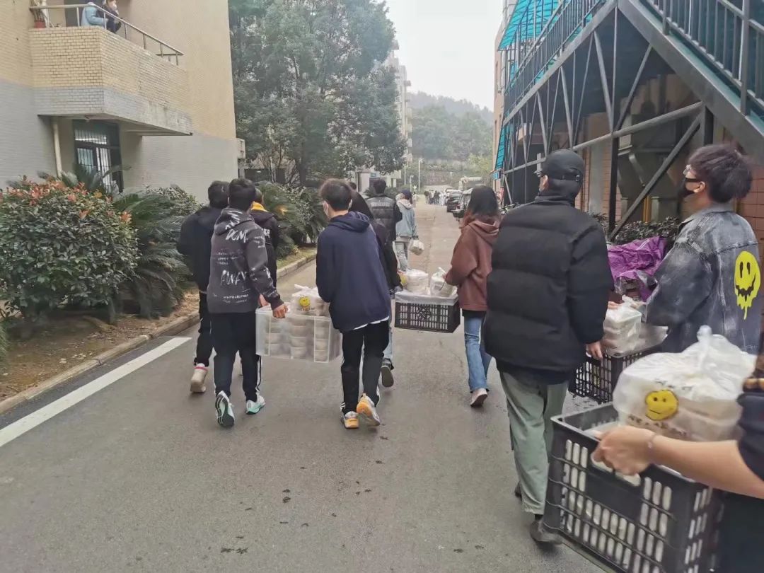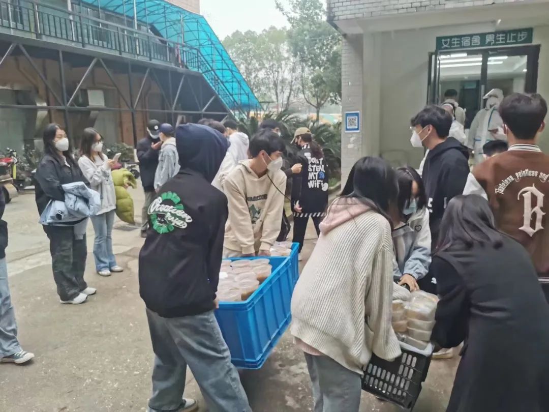 七点,宿舍楼下志愿者已等候多时,等到送餐车一辆辆停靠在楼下时,他们分工明确,一人拿餐筷,其余同伴提着饭菜,踏着迅捷的步伐穿梭于楼层间,将餐盒送达每间宿舍,不间断地往返虽然辛苦,但是他们没有停下脚步,热腾腾的不仅仅是饭菜,更是他们炽热的内心。