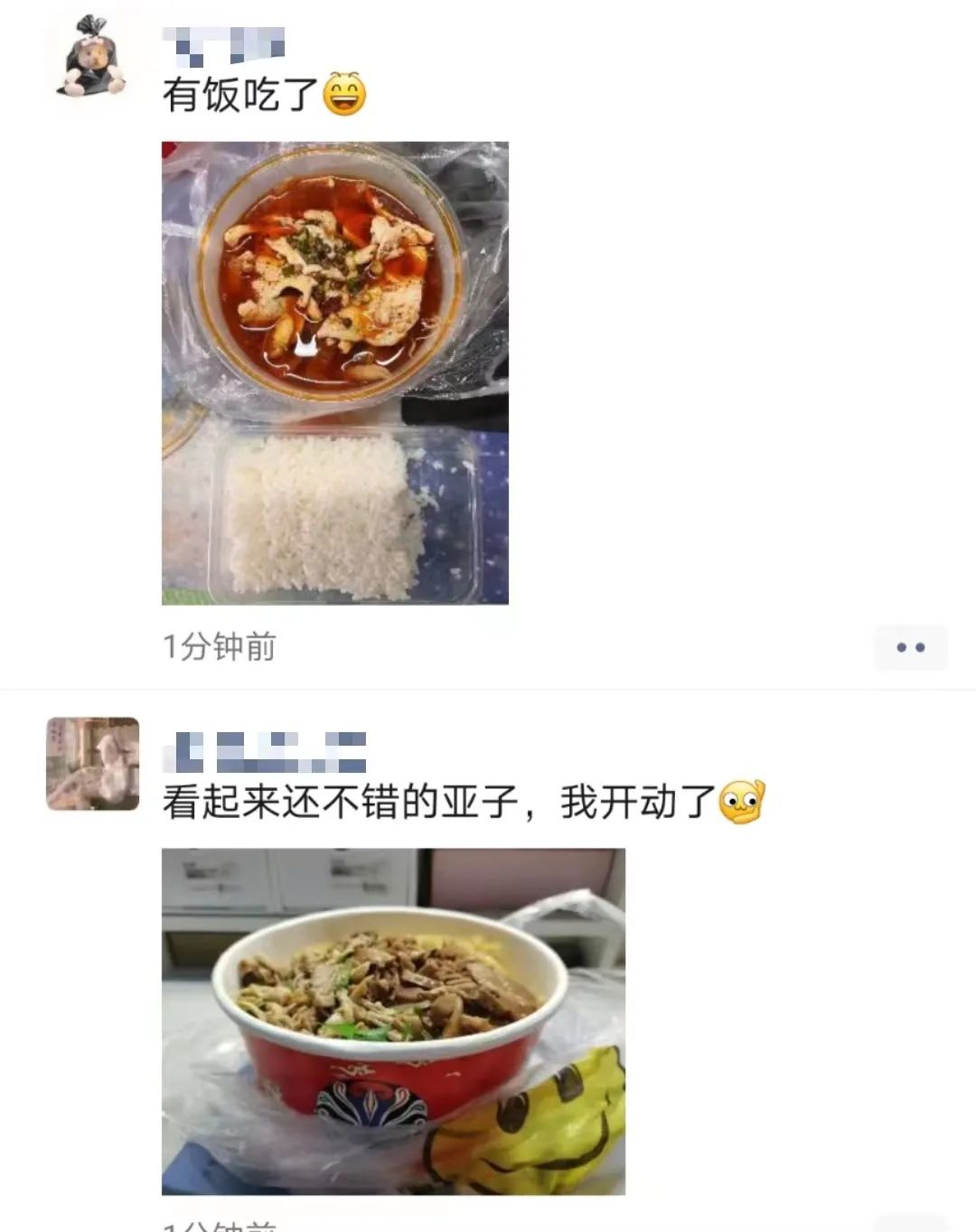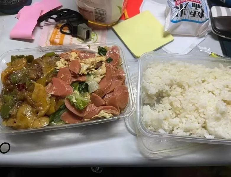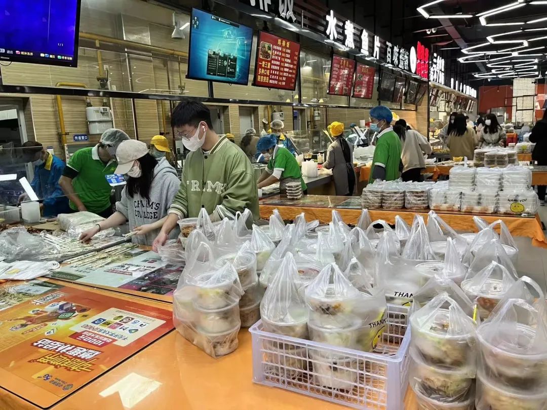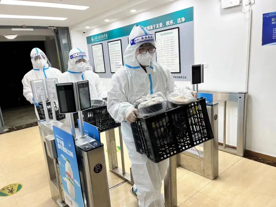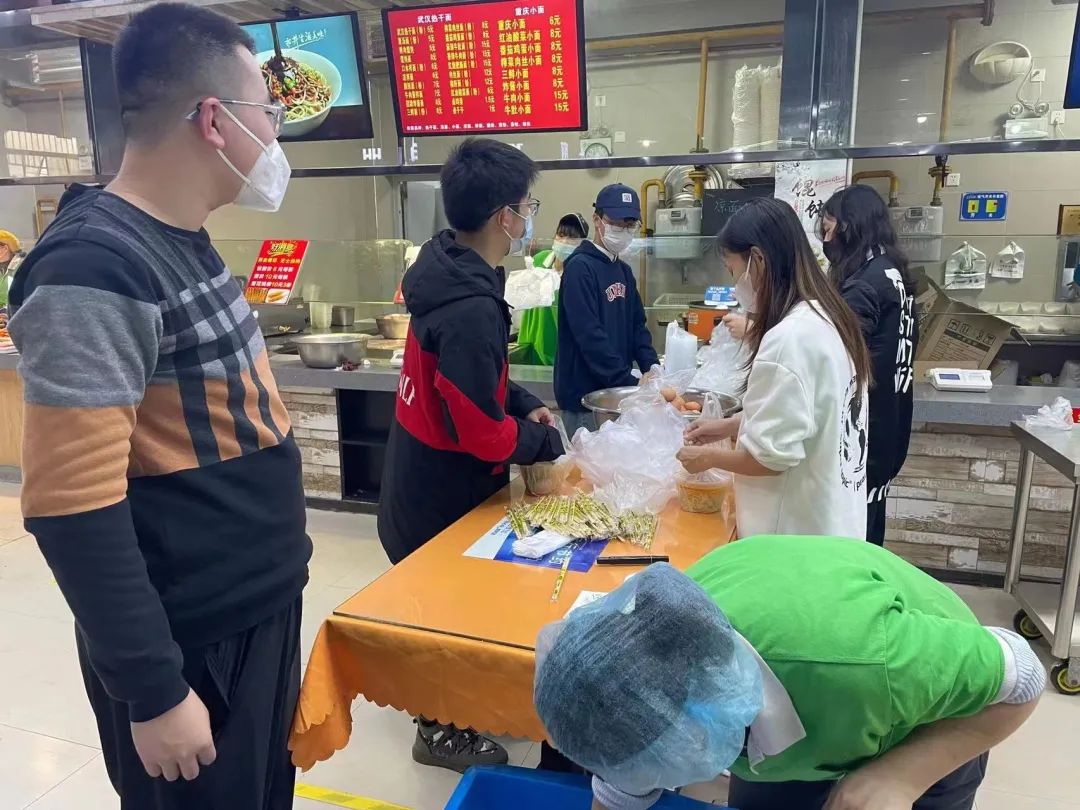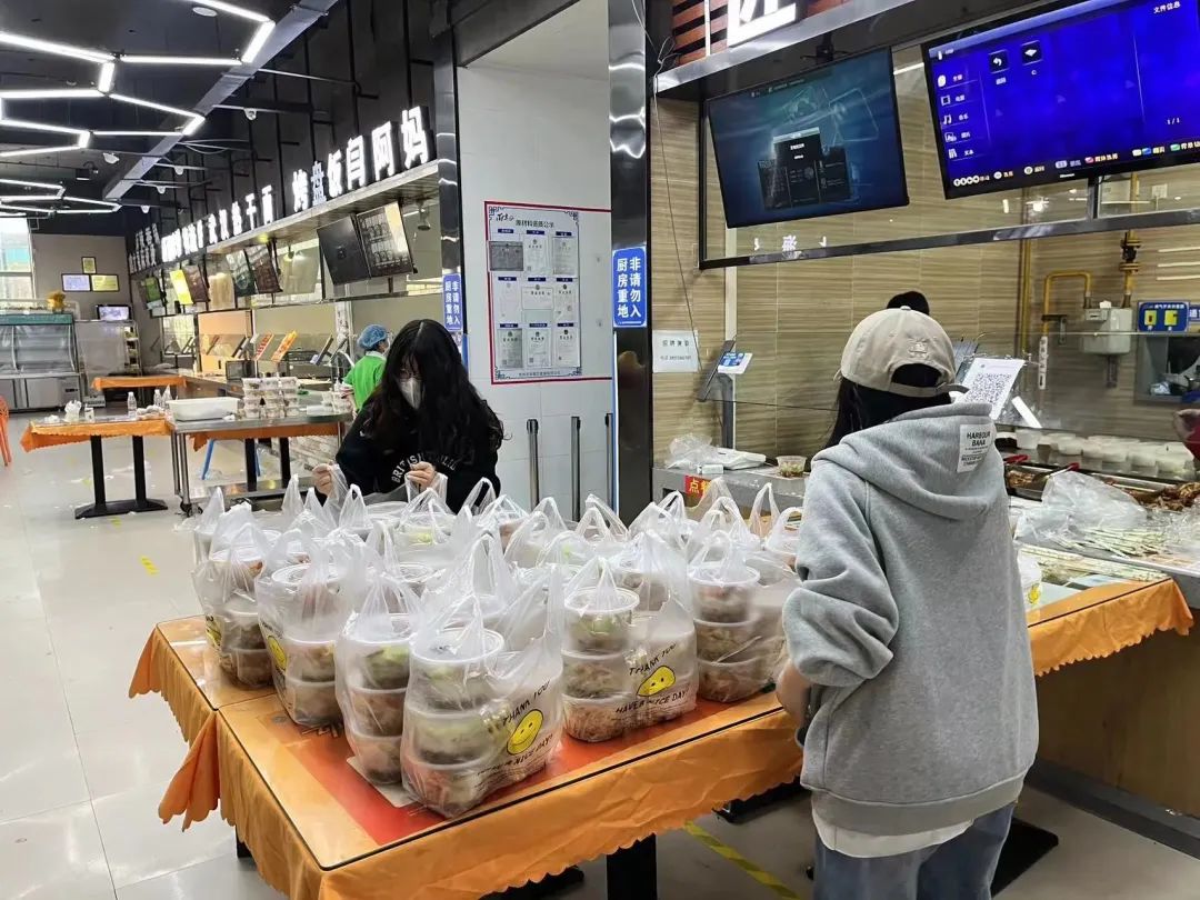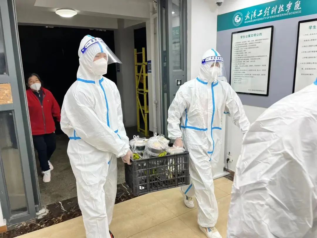 七点,宿舍楼下志愿者已等候多时,等到送餐车一辆辆停靠在楼下时,他们分工明确,一人拿餐筷,其余同伴提着饭菜,踏着迅捷的步伐穿梭于楼层间,将餐盒送达每间宿舍,不间断地往返虽然辛苦,但是他们没有停下脚步,热腾腾的不仅仅是饭菜,更是他们炽热的内心。