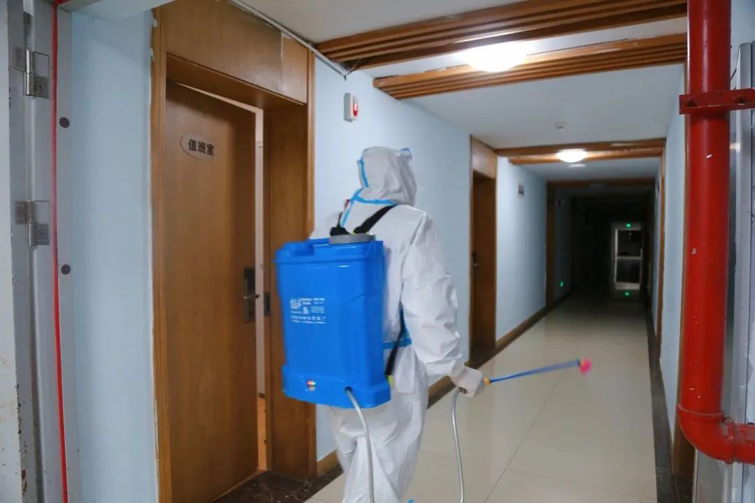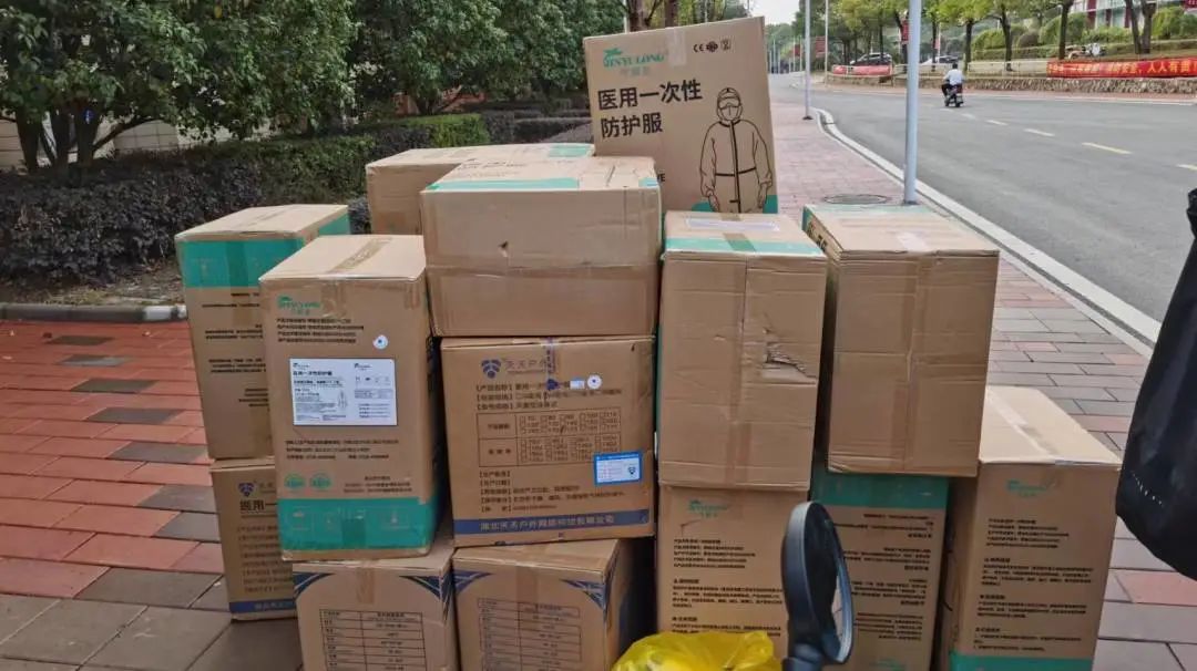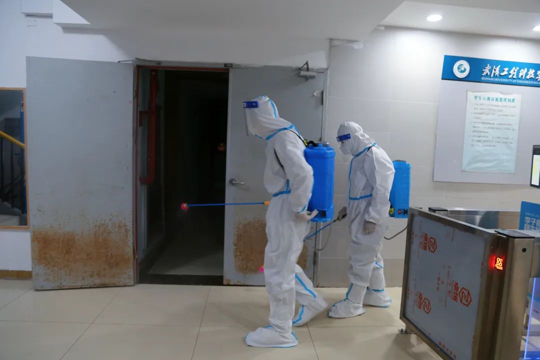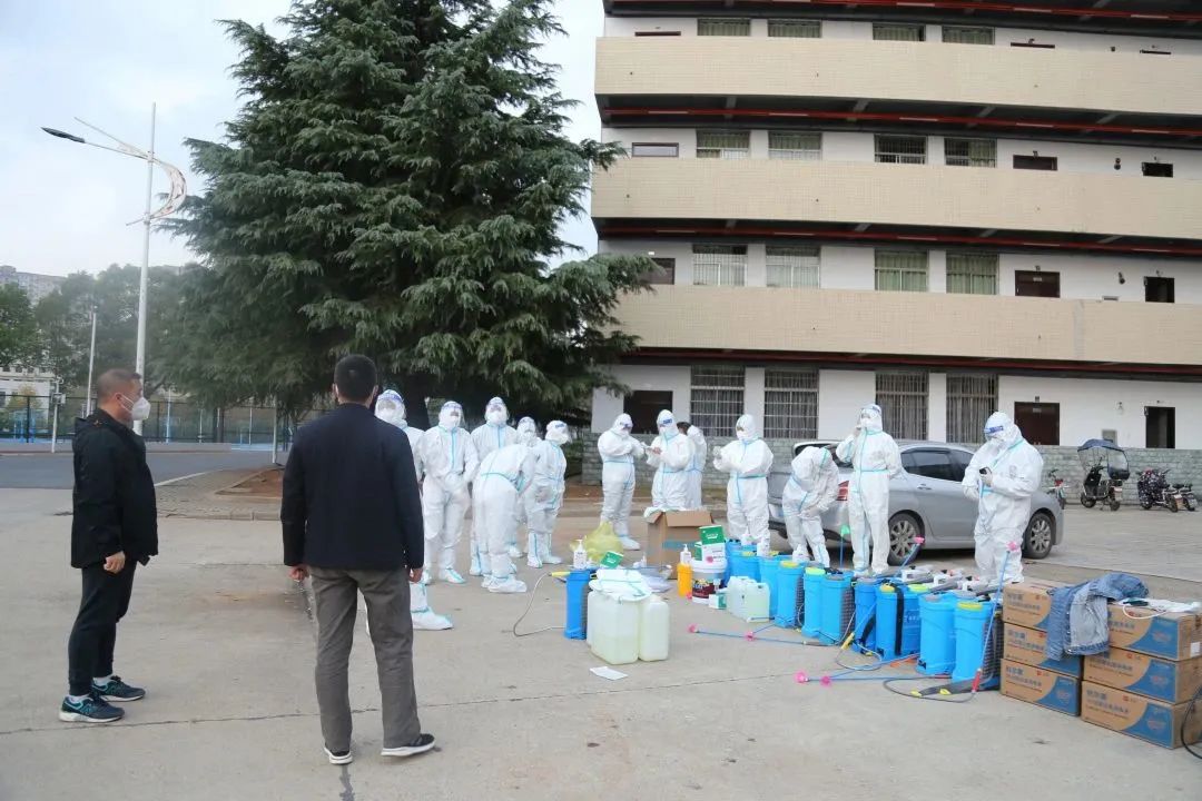 为了满足防疫需要,一箱箱口罩和酒精整齐地摆在各宿舍楼下,专业人员第一时间进校消杀,确保新冠病毒无处可逃。