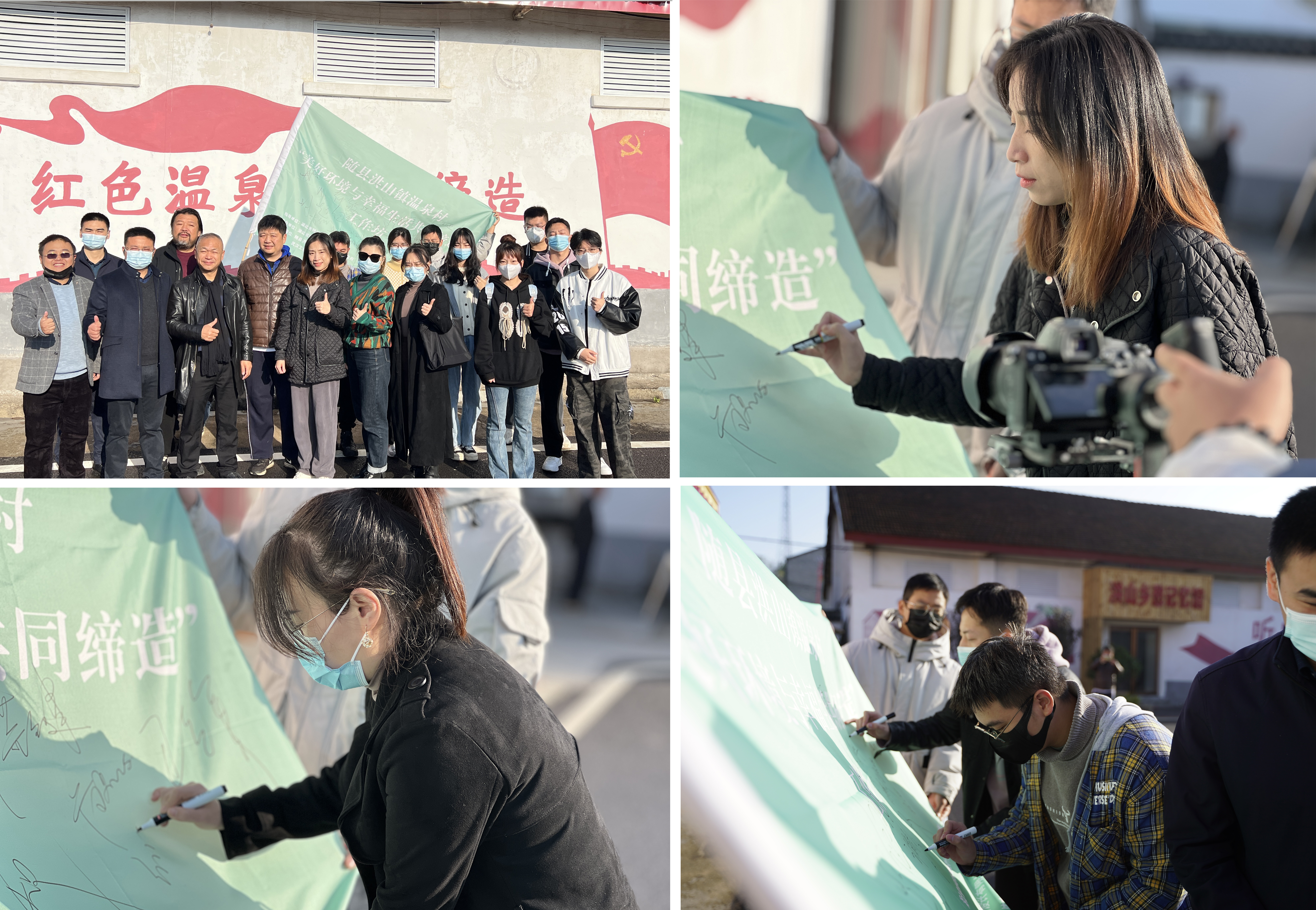 这次设计服务团队由艺术与传媒学院副院长魏敏,环境设计系主任范晶晶带队,参与随州市随县洪山镇温泉村、高尖村乡村景观改造项目。小组的成员由付知子、张晓晶老师及7名环境设计、2名广播电视编导学生组成联合西厢房乡侬文化传播有限公司共同打造。