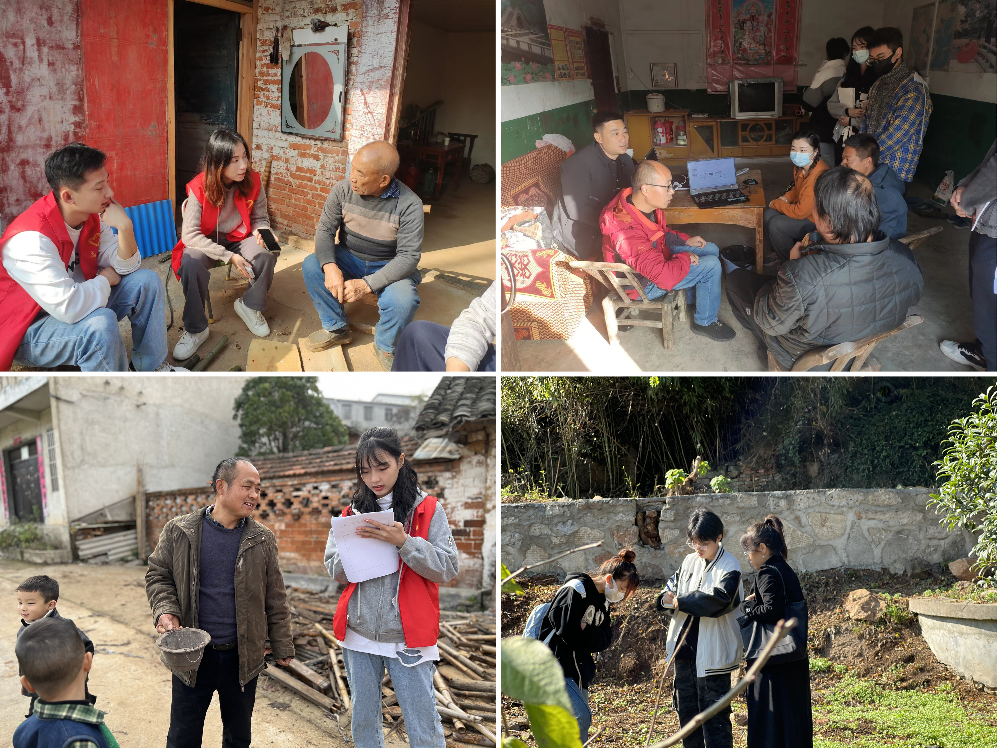此次共同缔造工作坊围绕随县洪山镇内温泉村碾子湾小院和高尖山村双楼子湾小院共6座庭院。项目从设计到实施落地为期5天,11月22-28日,环境设计服务团队前往洪山镇,就投入到积极的团队研讨与调研工作,先后对6座庭院做了实地勘查、测量与问卷调查。项目开展过程中受到两个村的村委会书记与村民们的大力支持,导师们带领学生与当地村民沟通,力求针对村民的生活困难去设计解决问题。在设计构思过程中寻找当地可用的材料,做因地制宜、环保务实的设计。