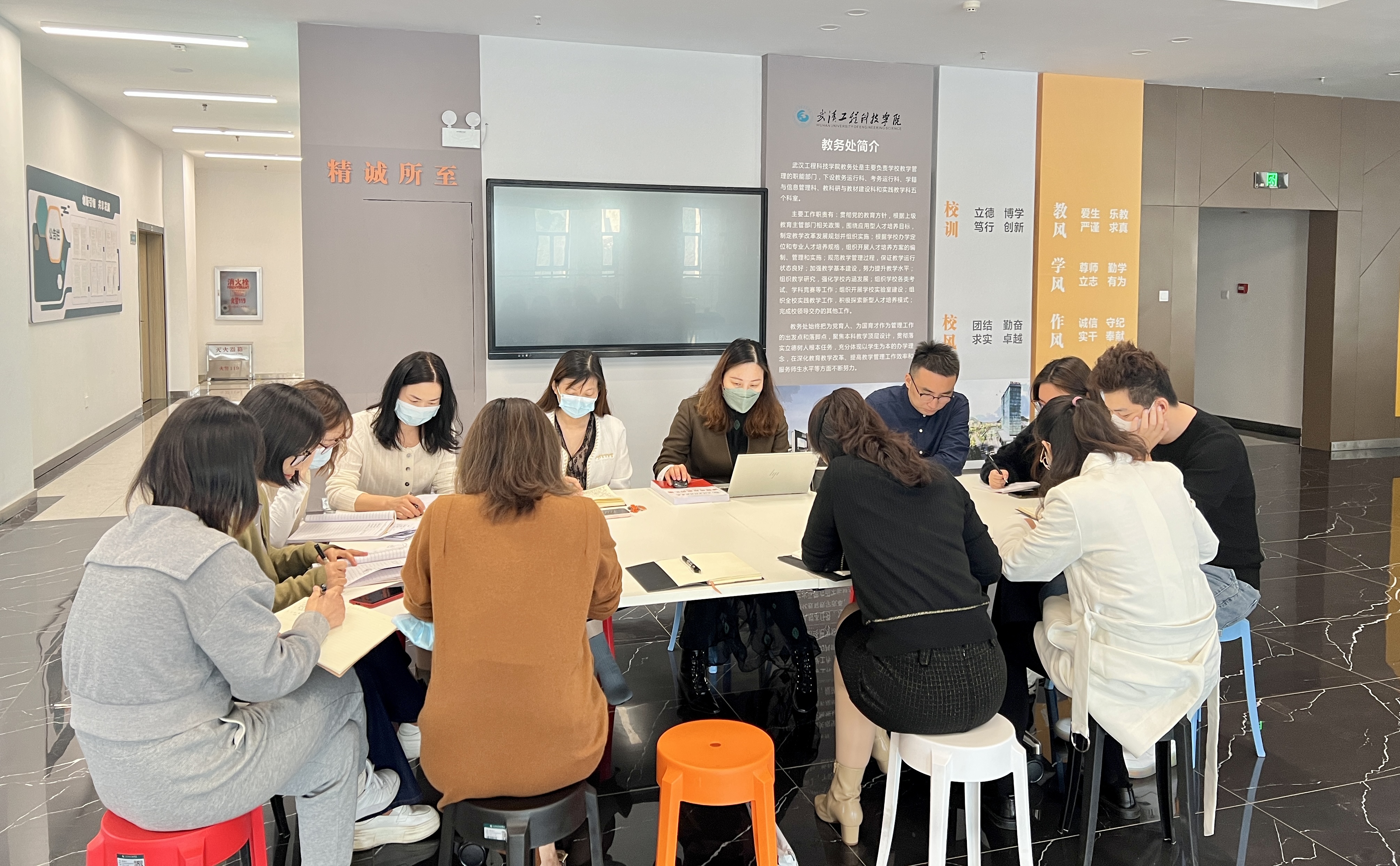 随后,隆芳敏结合教科研与教材建设、日常教学运行工作指出要认真学习领会二十大会议精神,要研究性的开展工作,边学边思边干。刘晓明从实践教学管理等方面工作提出要树牢质量意识,在教学管理工作中做到质量为先、发展为要,推进高质量发展的学习体会。各科室成员踊跃发言,表示要认真学习党的二十大精神,尤其是教育相关文件,努力践行教务处的服务公约,做好教学服务工作,为建设美好武工院添砖加瓦,服务广大师生。