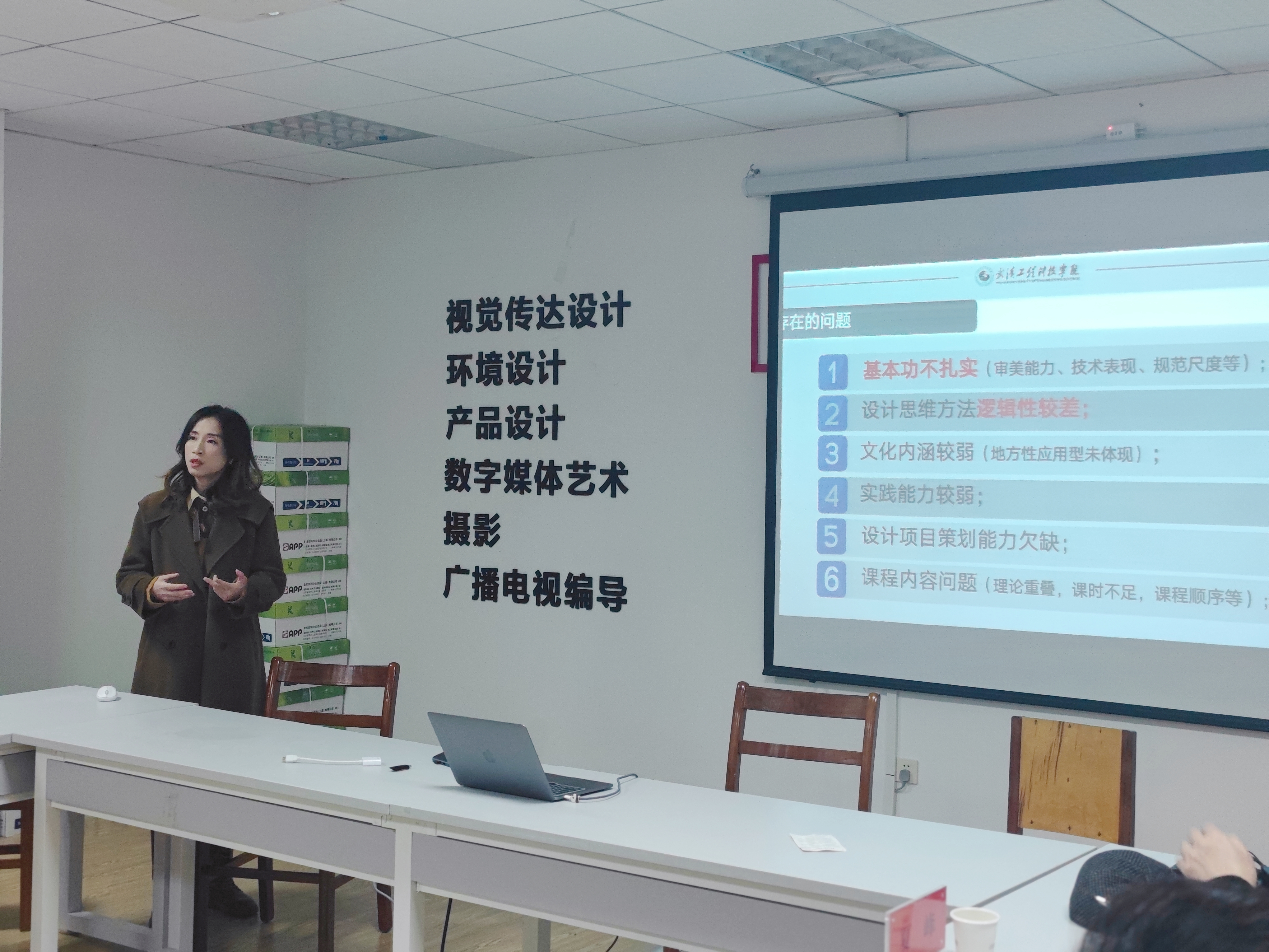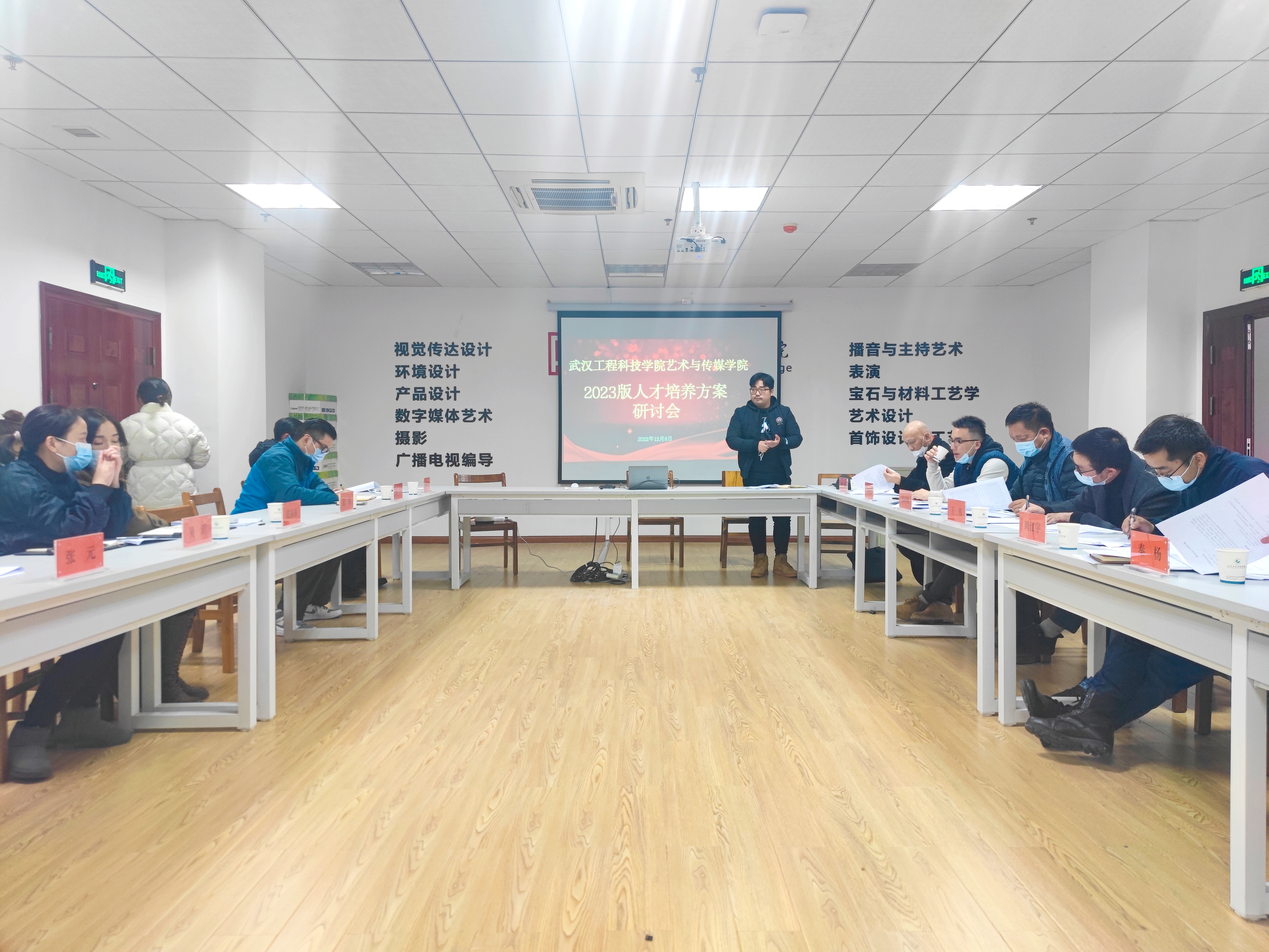 本网讯(通讯员 冯威)12月8日下午,武汉工程科技学院在综合楼507会议室举行了“艺术与传媒学院2023版人才培养方案研讨会”,会议邀请到武汉纺织大学原传媒学院院长沈祥胜教授、湖北工业大学产品设计系主任周红宇教授、武汉科技大学视觉传达设计系主任王伟教授、湖北第二师范学院环境设计系主任秦杨教授等校外专家参会。艺术与传媒学院院长杨先艺,视觉传达设计专业、环境设计专业、数字媒体艺术专业、产品设计专业、广播电视编导专业负责人及骨干教师参加会议。会议由我校艺术与传媒学院副院长魏敏主持,教务处副处长刘晓明到会指导。