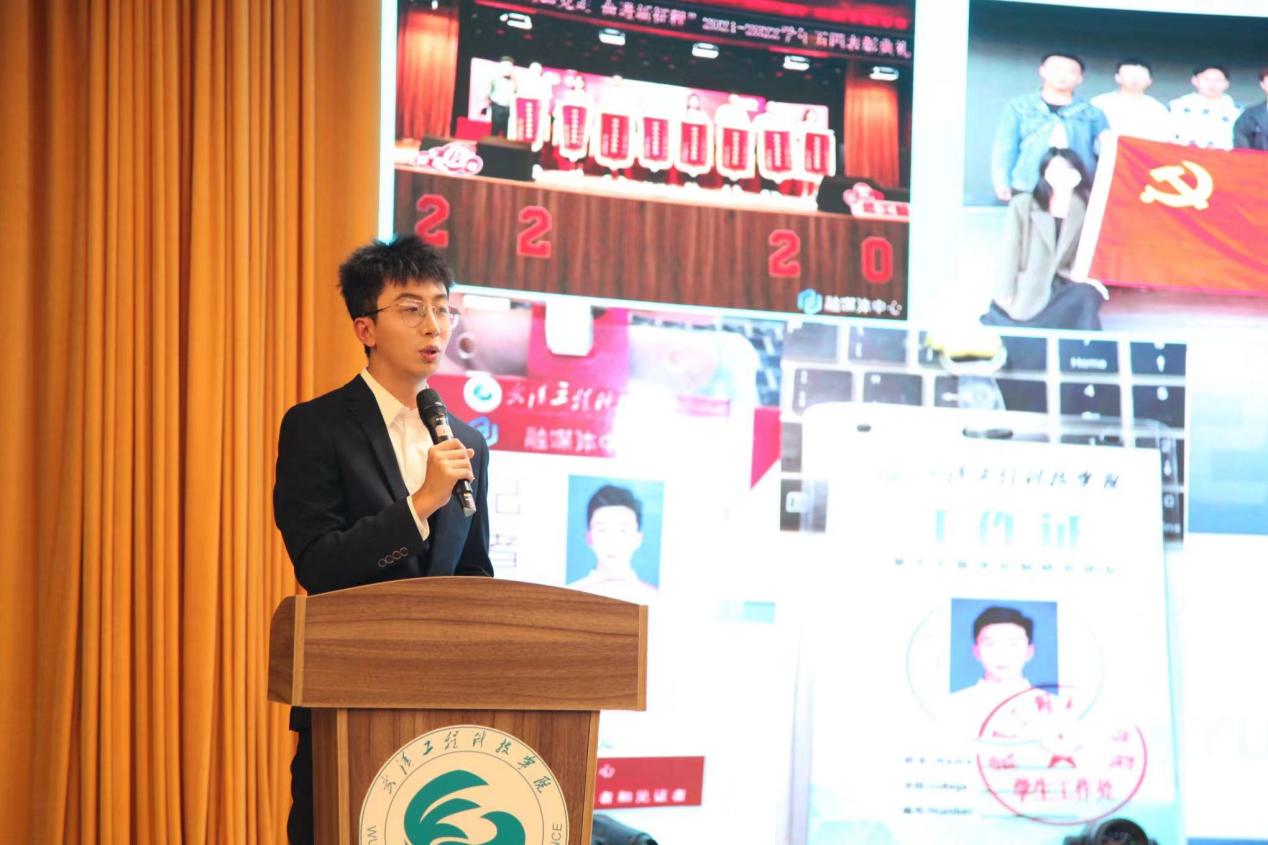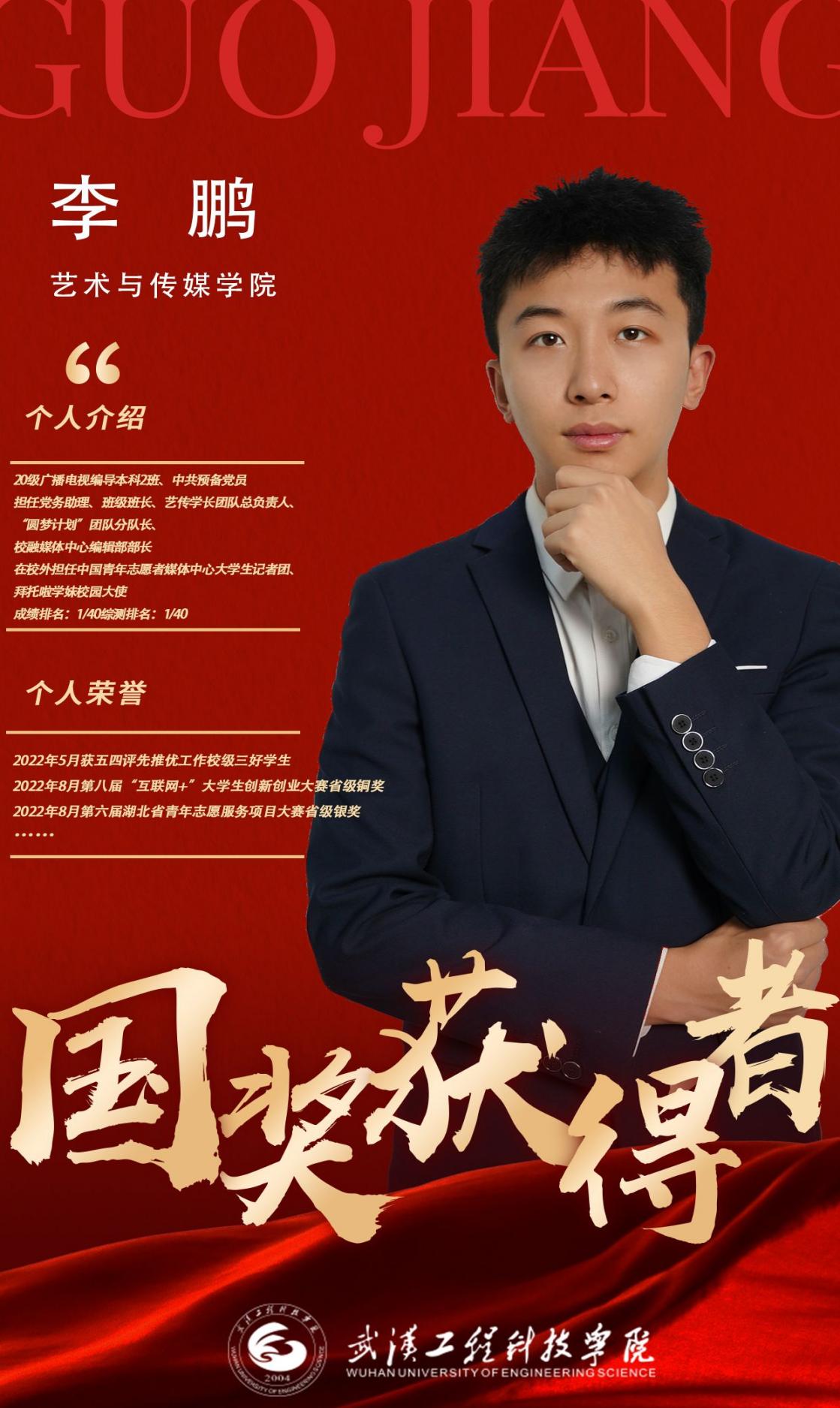同年5月,李鹏参与学校举办的第十六届模拟导游大赛,比赛当天,在武汉北伐纪念馆里,他身着一身板正的西装,说着熟稔于心的历史文化。6月,他挥洒着彩虹的粉末,参加学校的第一届彩虹跑,青春的活力与欢笑在那一刻绽放。李鹏作为校融媒体中心编辑部部长,一直尽心尽责运营着“武汉工程科技学院”官方微信公众号,从选题的策划到文稿的排版,再到发布后的数据分析,他下足功夫不懈怠,一丝一毫不马虎,为学校推送了一篇篇优质的文章,也因此,2022年4月,他被评为学校年度“宣传工作先进个人”。