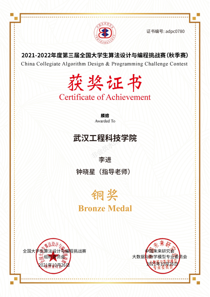 当公布国奖名单时,李进的心情是十分激动的,终于实现了入学时的目标,他觉得就像做了一场梦。2019年,刚步入大学的李进,对国奖的最初认识来自他的带班学长程泽。李进说:“他也是国奖获得者,并且一直鼓励和支持我,我以他为榜样,下定决心成为像他一样优秀的人。”就这样,李进开始朝着自己的目标不断努力。