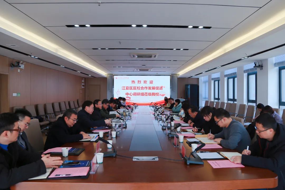 2月14日上午,江夏区校合作发展促进中心党组书记赵振宇、江夏区行政审批局副局长田长荣、江夏区市场监管(知识产权)局四级调研员韩亚琼等一行十余人来我校开展调研工作,就深化区校合作进行了座谈交流。学校全体校领导、相关职能部门和二级学院负责人陪同调研。