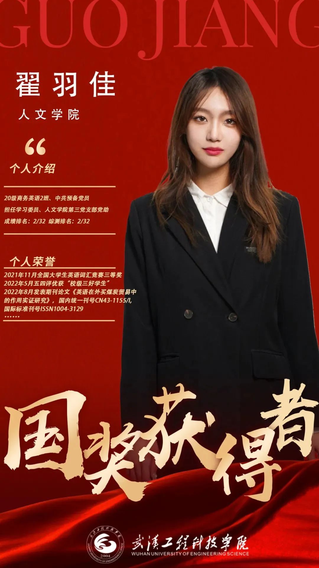 获得国家奖学金对于翟羽佳来说,是对自己实力的证明,翟羽佳寄语学弟学妹:“大学是一个很好的实现自己理想的舞台,与其躺着,不如淌着石头过河,珍惜自己的努力成果。希望大家可以大胆尝试自己感兴趣的事情,多多参加学校的活动、竞赛和校外实践。愿你们不畏世间流言蜚语,大胆追求理想,找到自己的路。