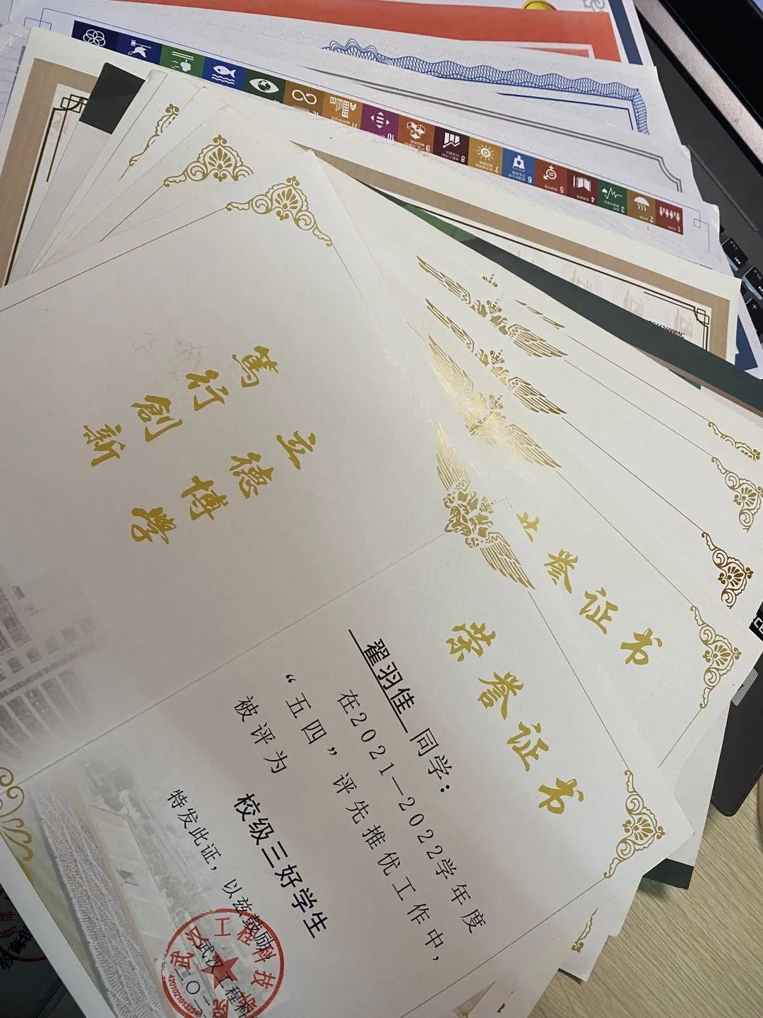 “我很意外,他们都说我希望不大。”得知自己获得国奖后,翟羽佳不仅开心激动,还很意外。作为一名专科生,翟羽佳在竞争国家奖学金时并不被看好,但是她决定通过自己的努力,去证明自己。翟羽佳不仅挑战了2022年的国家奖学金,还决定走专升本这条艰难的路途,考研也是她的目标。“兴趣就是最好的老师。英语和写作方面我自认为还可以,这都是我感兴趣的。我很喜欢看小说,也很喜欢看英剧和美剧,在看完那些剧之后,我还会去找原著再读一遍。”翟羽佳认为,在某些特定的环境下,人的潜能是可以被无限激发的。