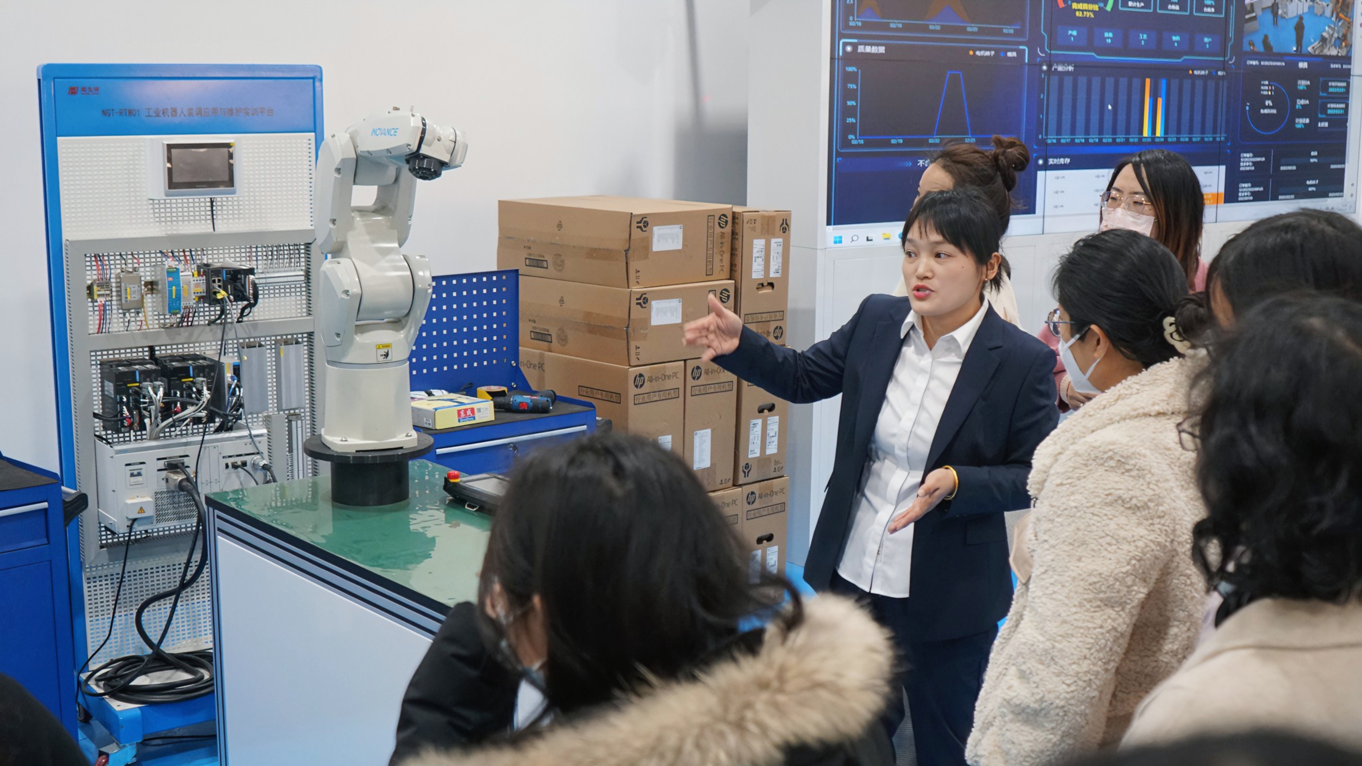 智能制造中心讲解员刘丽明为大家介绍道,智能制造中心以数字化工厂示范中心为功能主体,不断改善实验设备条件,积极探索实验教学新体系,按照企业需求,优化课程结构,改革传统教学模式,探索新的教学方法和手段,提高师资水平,注重学生实践技能和创新能力的培养。
