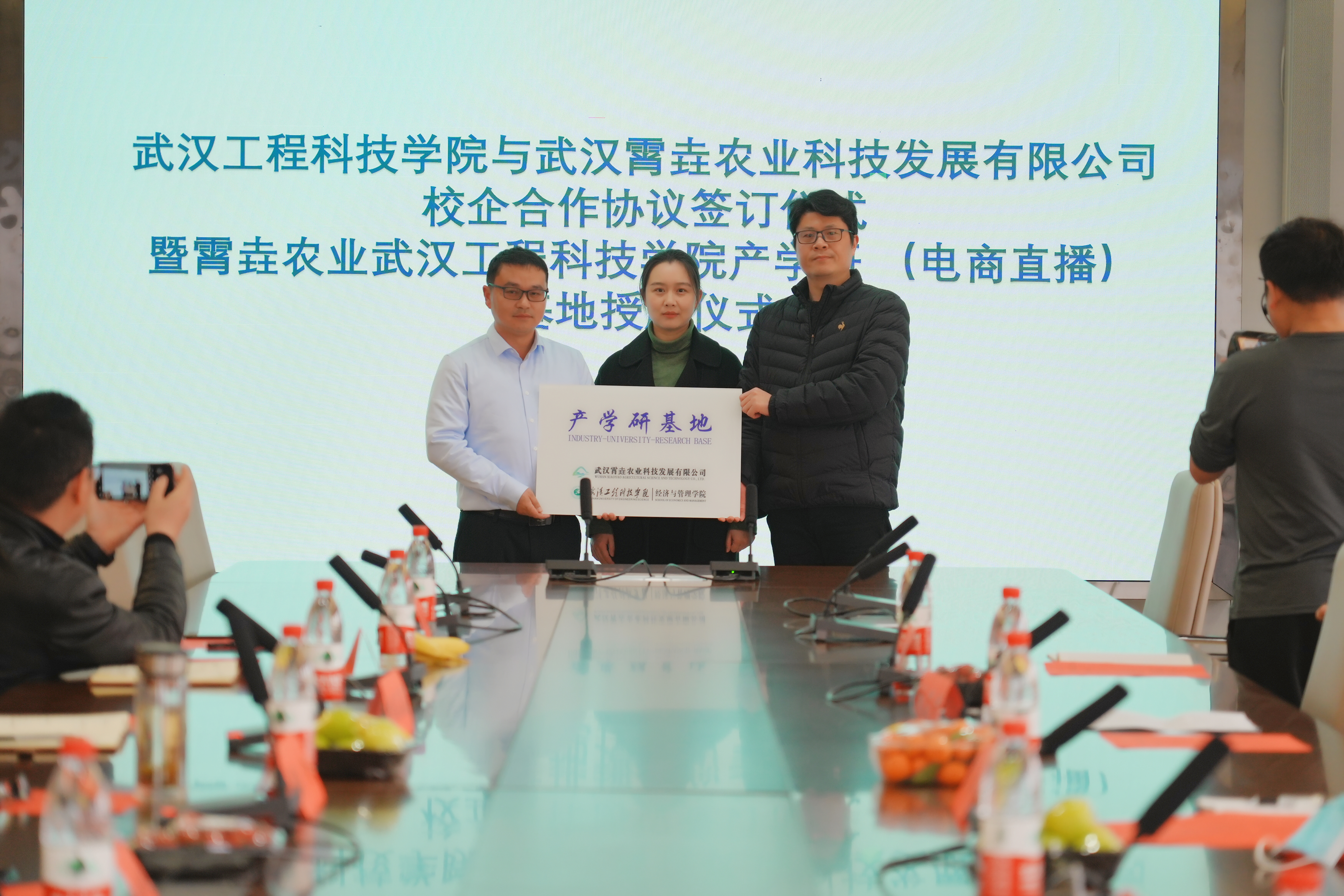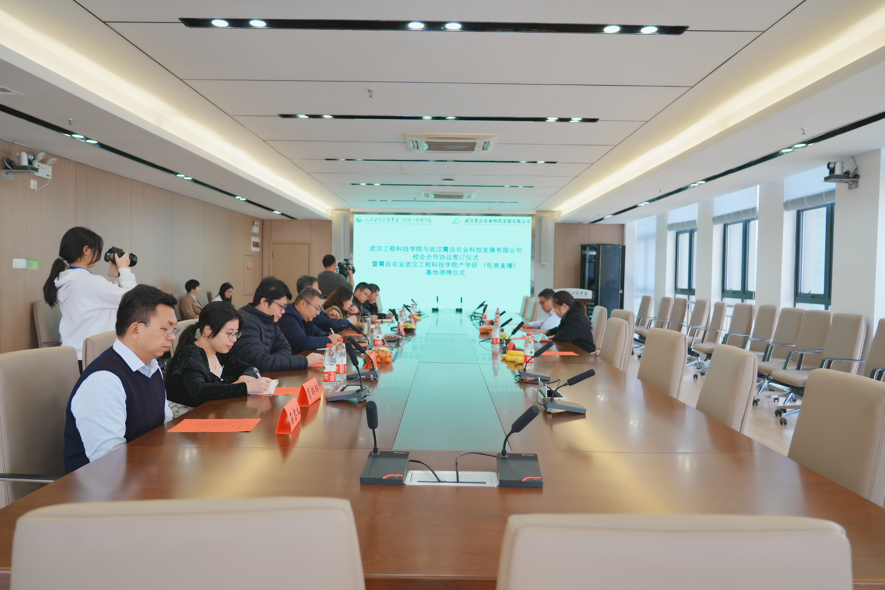 3月2日下午,我校与武汉霄垚农业科技发展有限公司校企合作协议签订仪式暨霄垚农业武汉工程科技学院产学研(电商直播)基地授牌仪式在学校综合楼1210会议室举行。江夏区农业农村局信息中心主任朱祎,霄垚农业科技发展有限公司董事长庞在虎,学校党委常委、副校长杨伦,党委常委、校长助理胡晶晶,经济与管理学院党总支书记王启帆、副院长涂淼、副院长毛洪涛和相关教职员工参加了会议。会议由经济与管理学院院长胡晓峰主持。