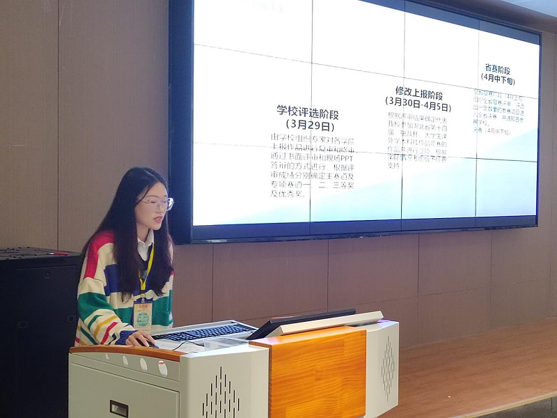 最后,经济与管理学院学生会科创实践部部长邹星语为大家介绍了比赛各项流程、报名及评选时间,希望同学们能够抓紧时间积极参与,也祝愿已经报名参赛的队伍能够努力打磨作品,取得好成绩。