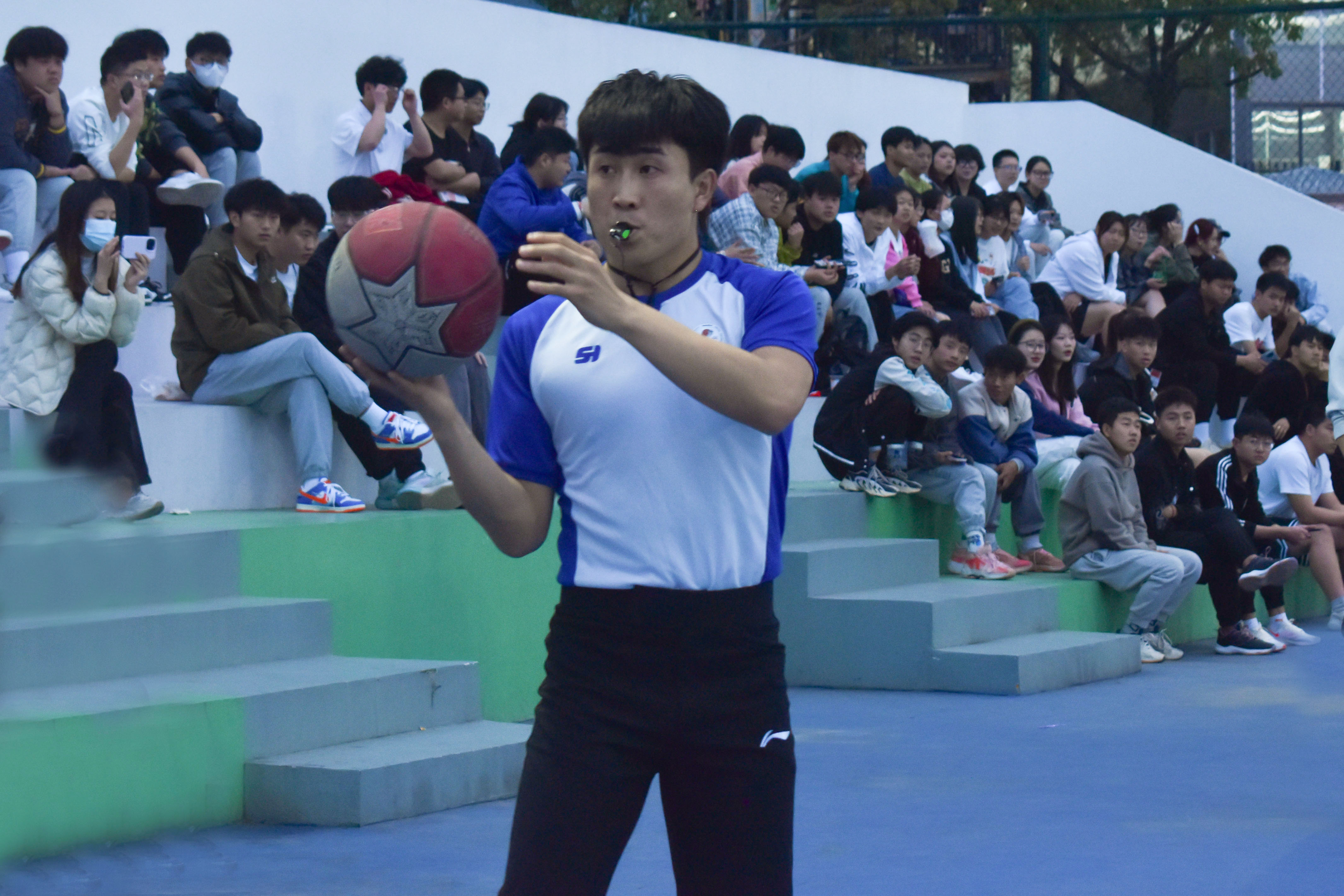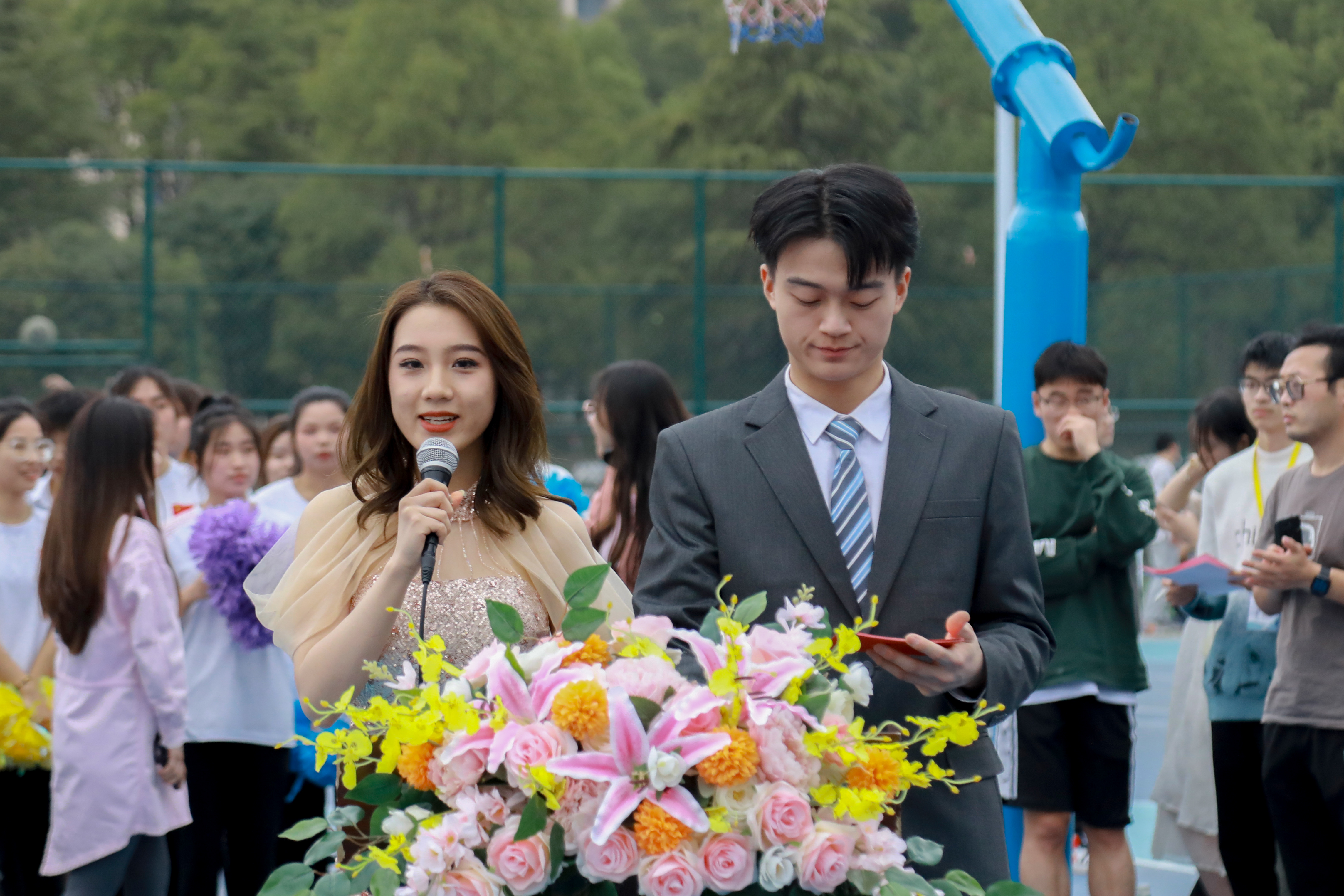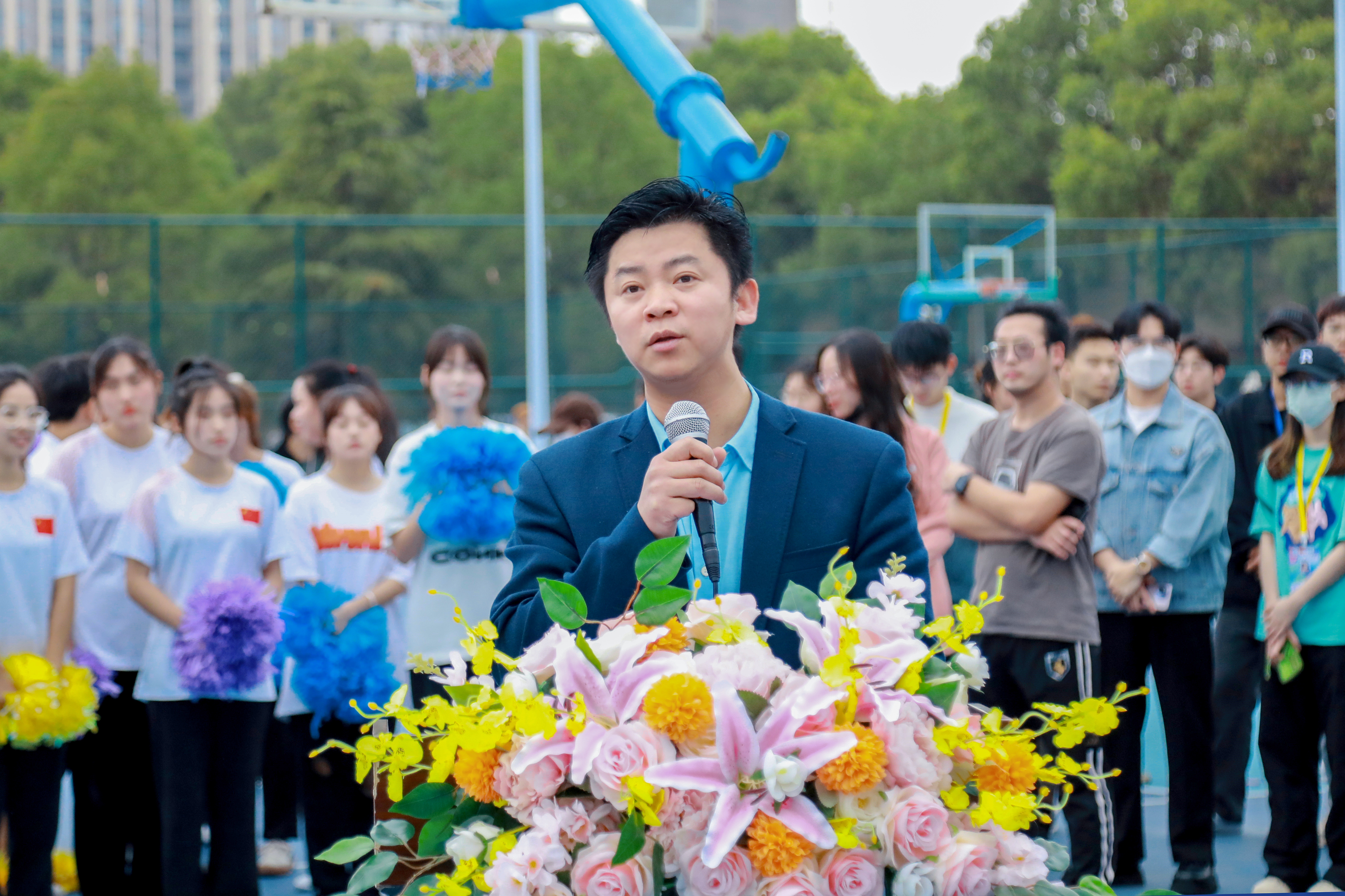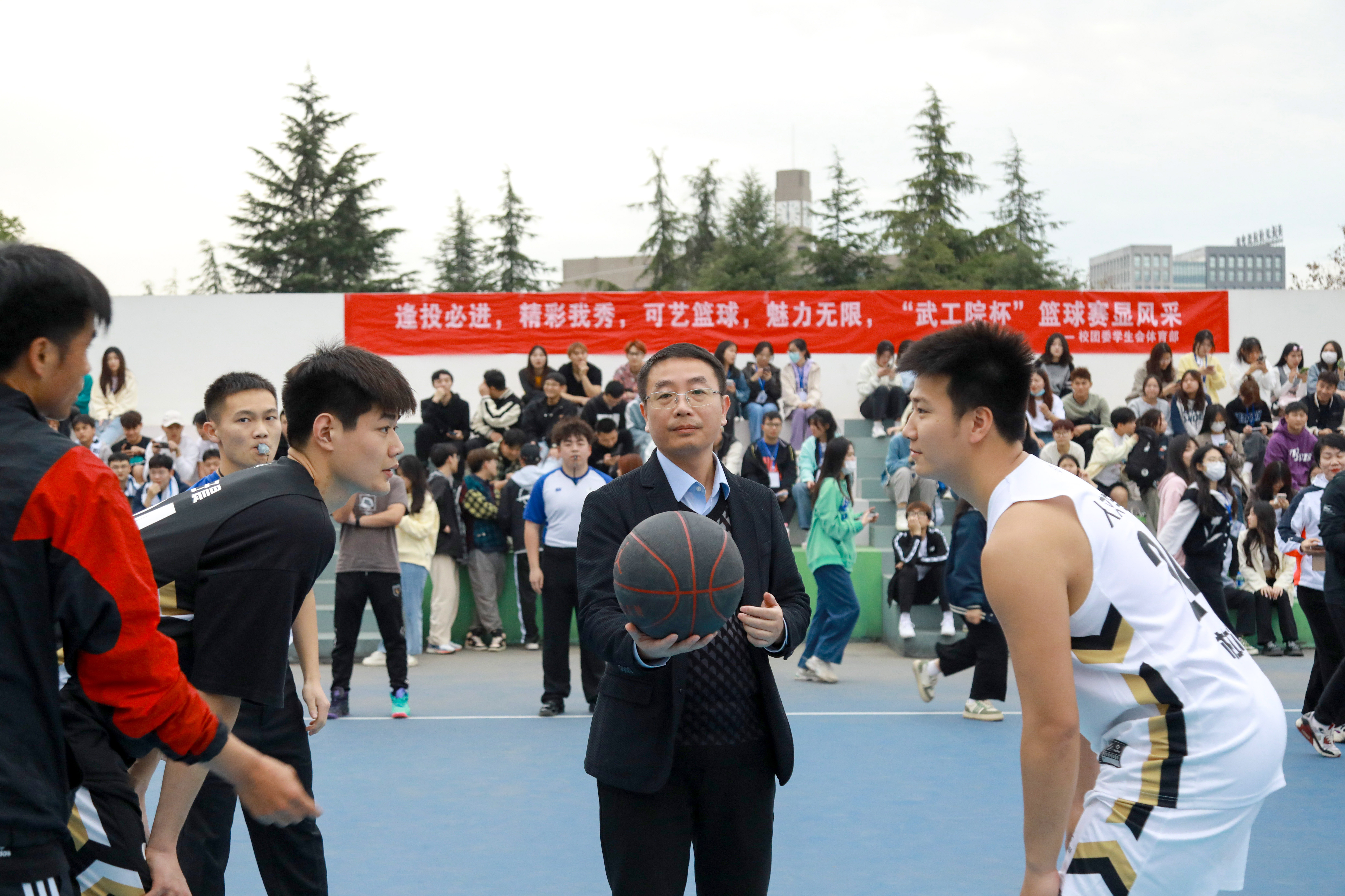 随后进入热血篮球赛环节,唐军国为本次体育文化节首场篮球赛开球。