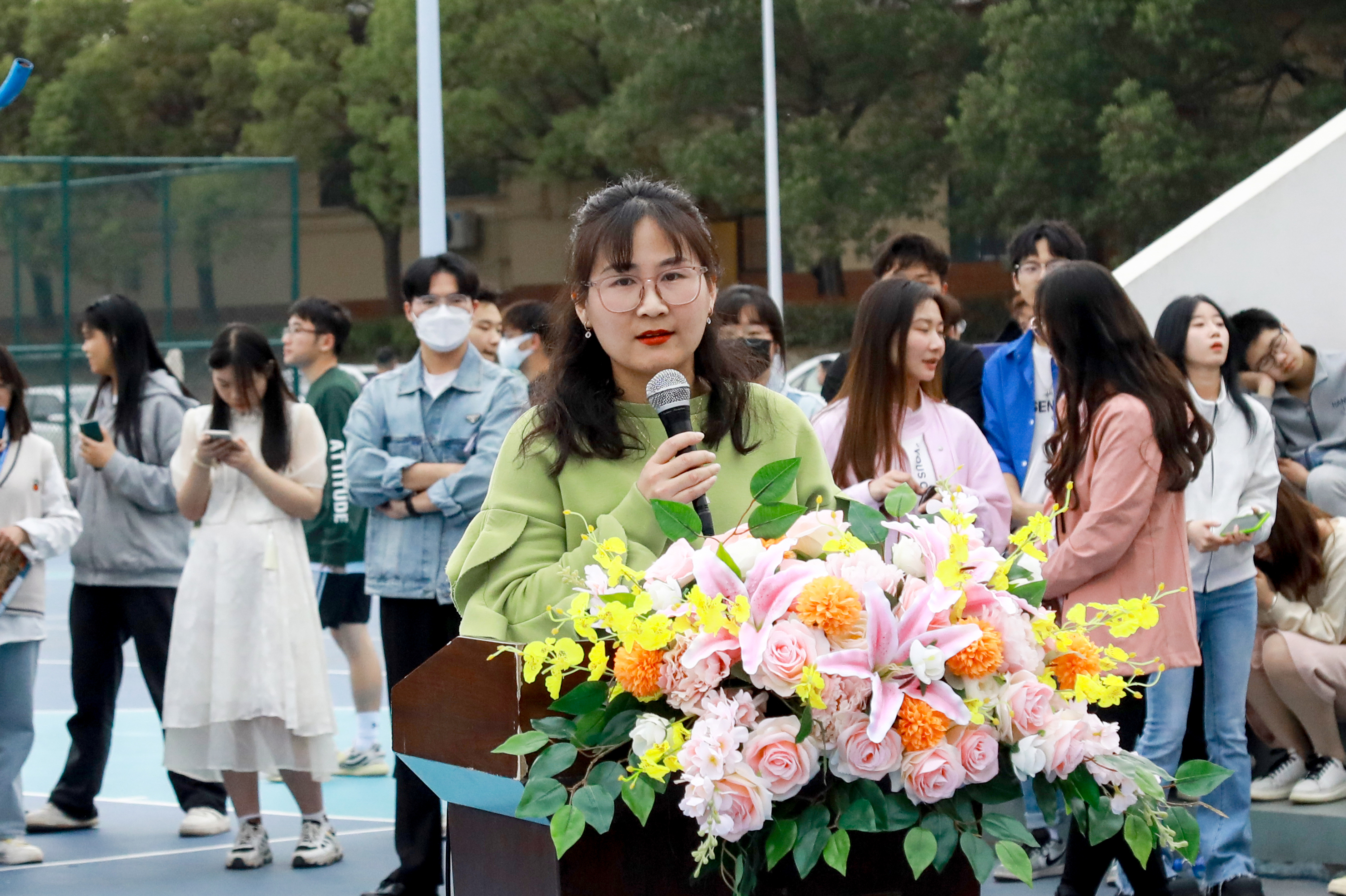 胡美玲宣读《第十八届“江城之春”大学生科技文化节》通知。