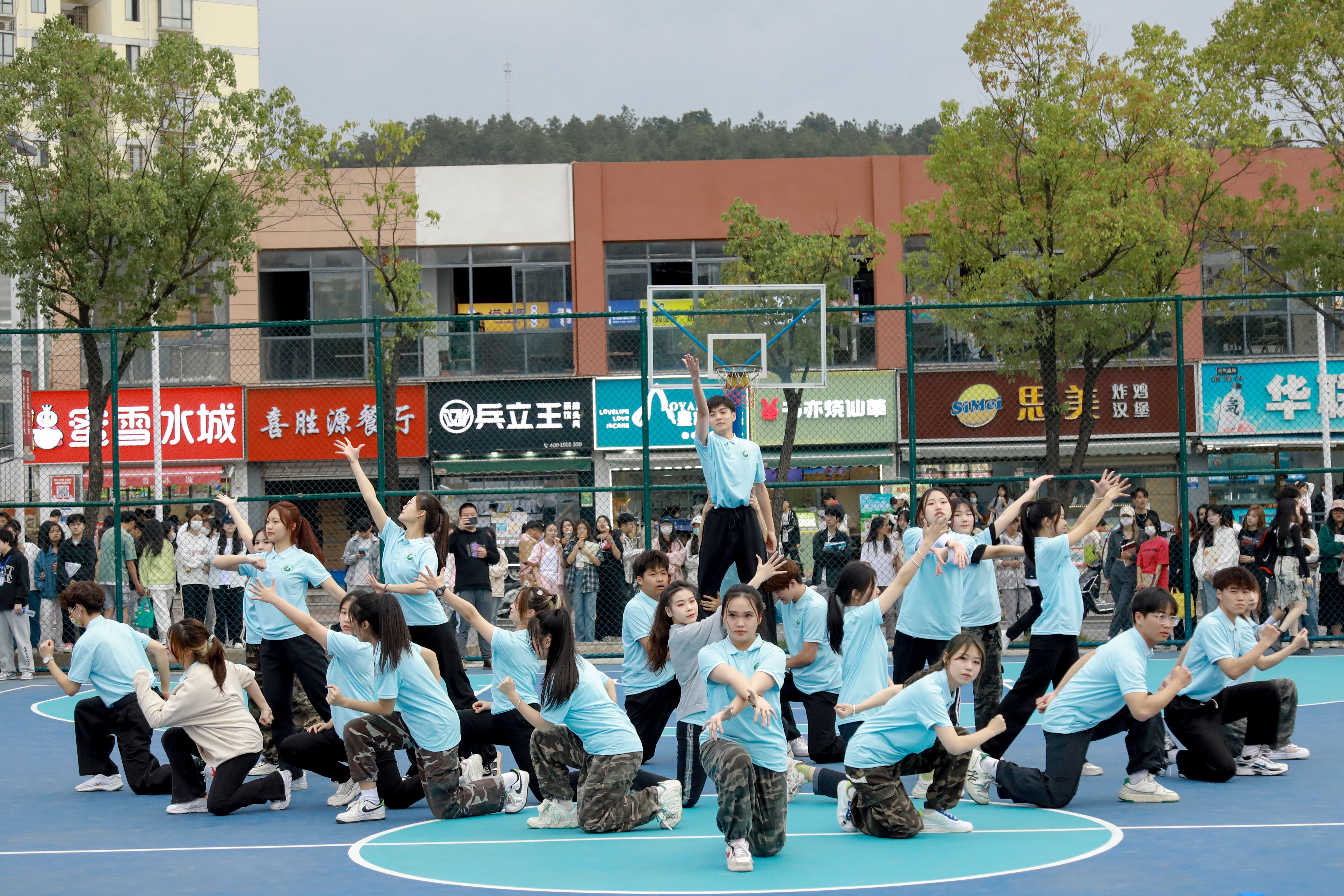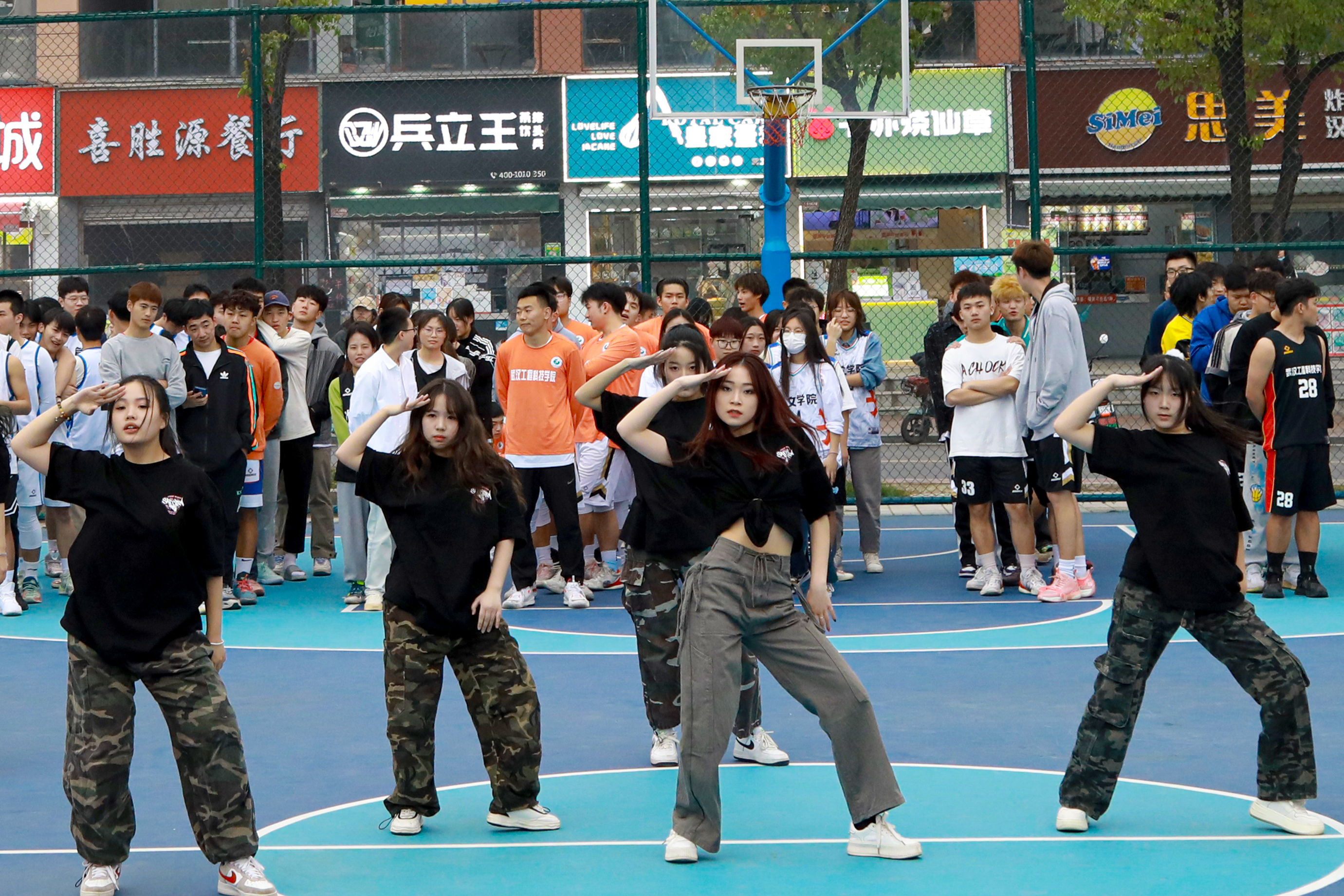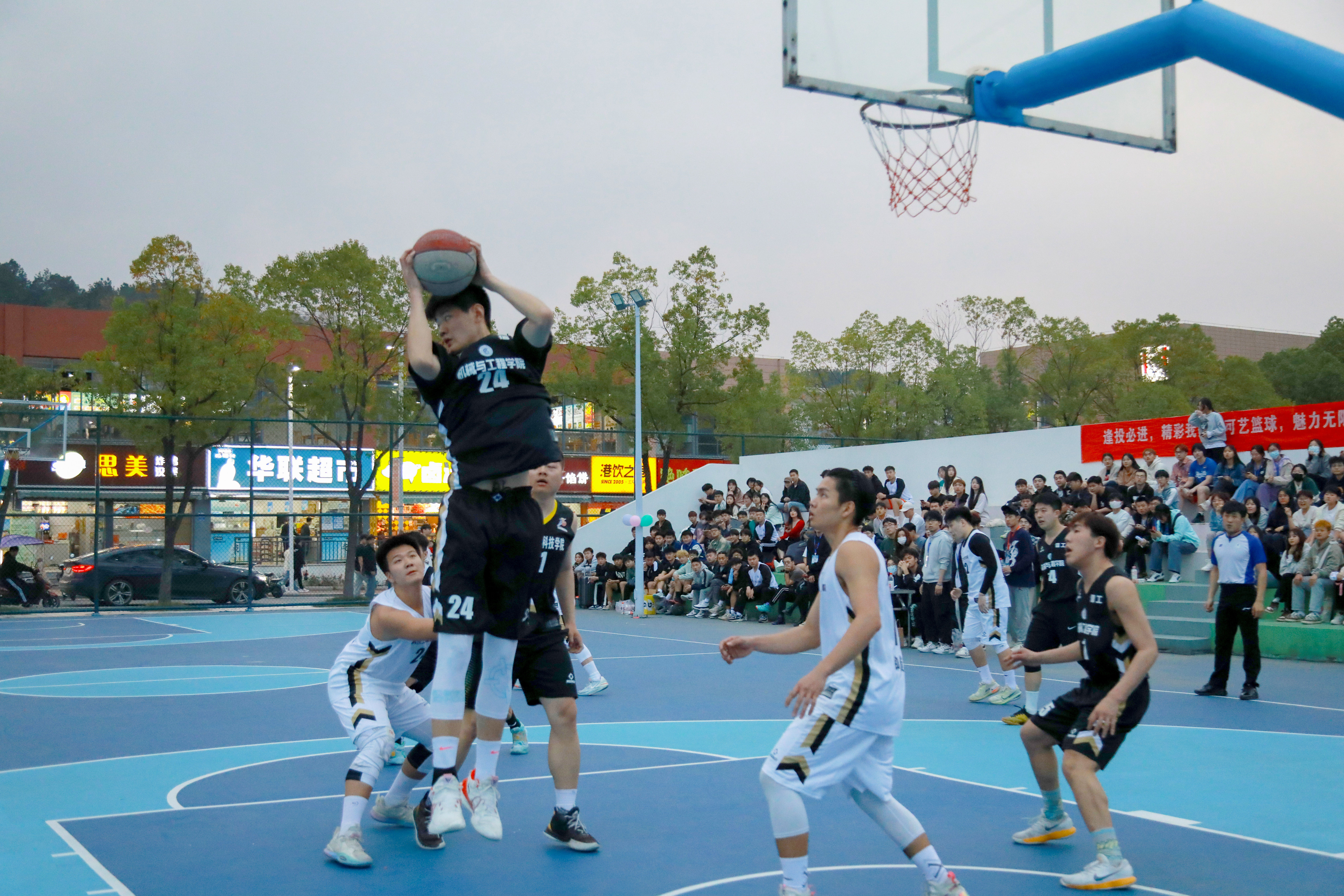 一声哨响,青春飞扬。一记抢断,突然夺舍,转身一掷,欢呼声响,篮球场上运动员挥洒汗水,挥洒青春的活力与朝气,展现着独属于武工院学子的体育精神。