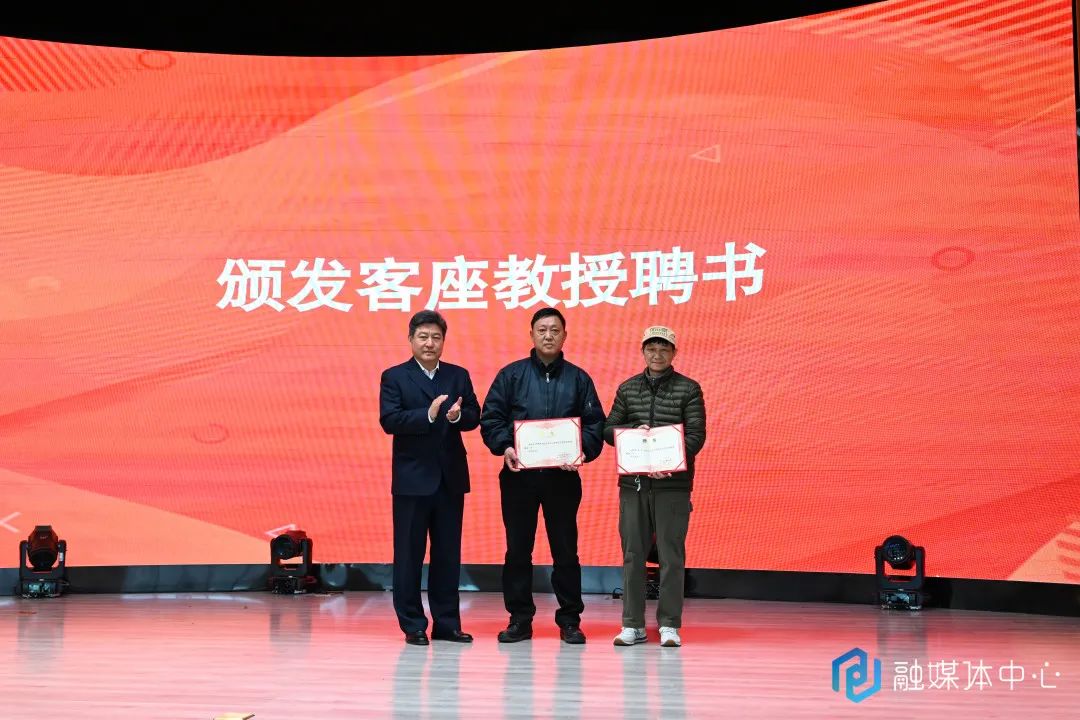 杨伦为湖北省摄影教育专业委员会副主任、武汉纺织大学沈祥胜教授和湖北省摄影教育专业委员会副主任、湖北美术学院张朴教授颁发客座教授聘书。