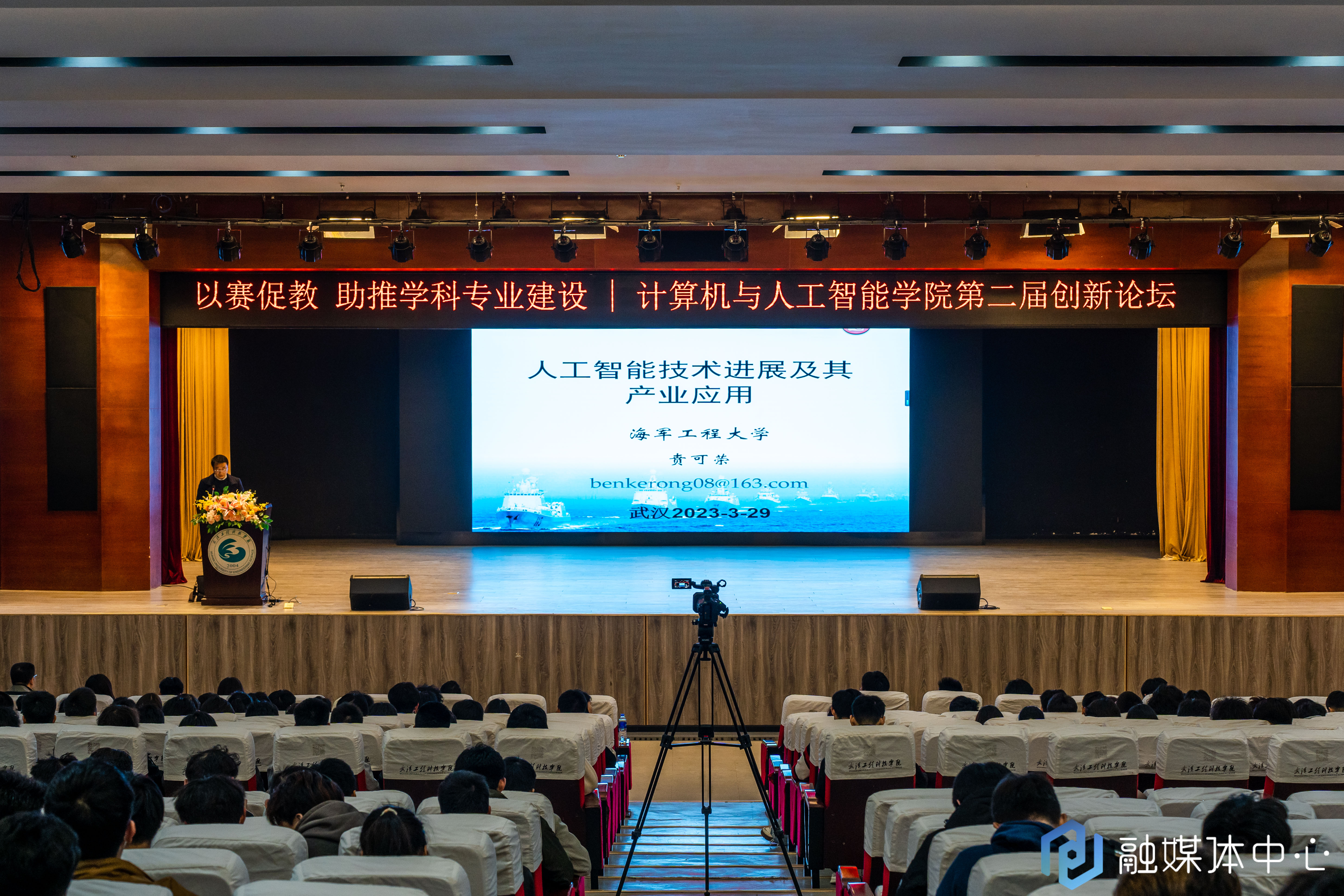 本网讯(大学生记者岳磊 摄影 徐亭玮 李佳琦)3月29日下午,武汉工程科技学院计算机与人工智能学院第二届创新论坛在学校三教报告厅举行。论坛邀请海军工程大学贲可荣教授和中国地质大学(武汉)王广君教授进行主题讲座。学校党委副书记、校长助理唐军国出席活动。计算机与人工智能学院院长蔡之华、党总支书记钟晓星、副院长黎丽、团总支书记张冬琦及师生代表参加活动。