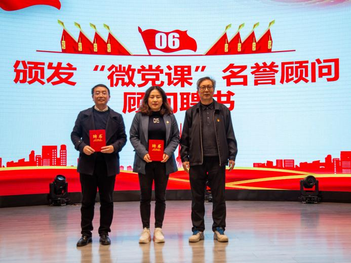 人文学院聘请阎占定为“微党课”工作室名誉顾问,聘请吴亚林、高莉为“微党课”工作室顾问。高芸为“微党课”工作室名誉顾问和顾问颁发聘书。