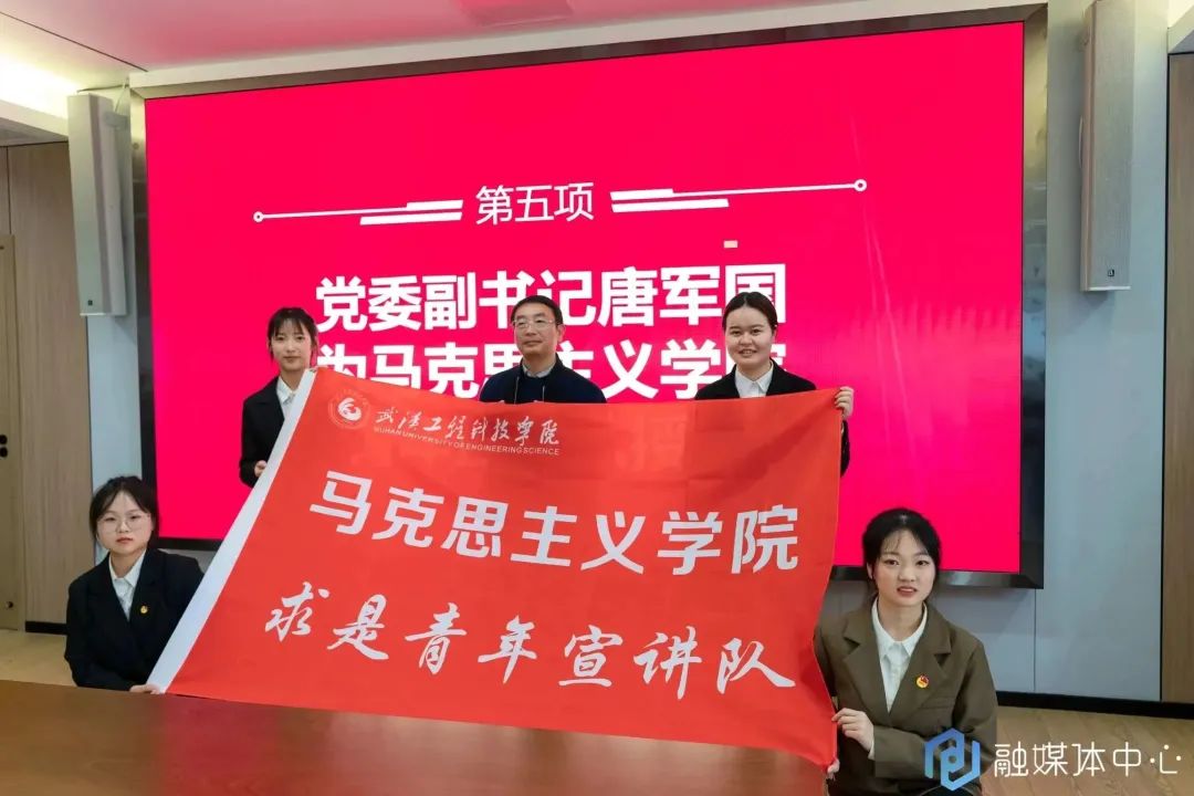 唐军国为马克思主义学院求是青年宣讲队授旗。