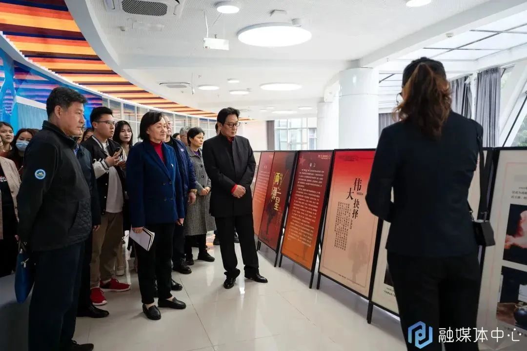 活动尾声,现场领导嘉宾一同合影留念,并在中山舰讲解员的带领下前往图书馆二楼玻璃阳光厅参观“两弹一星”精神永放光芒——中国原子城历史图片展。