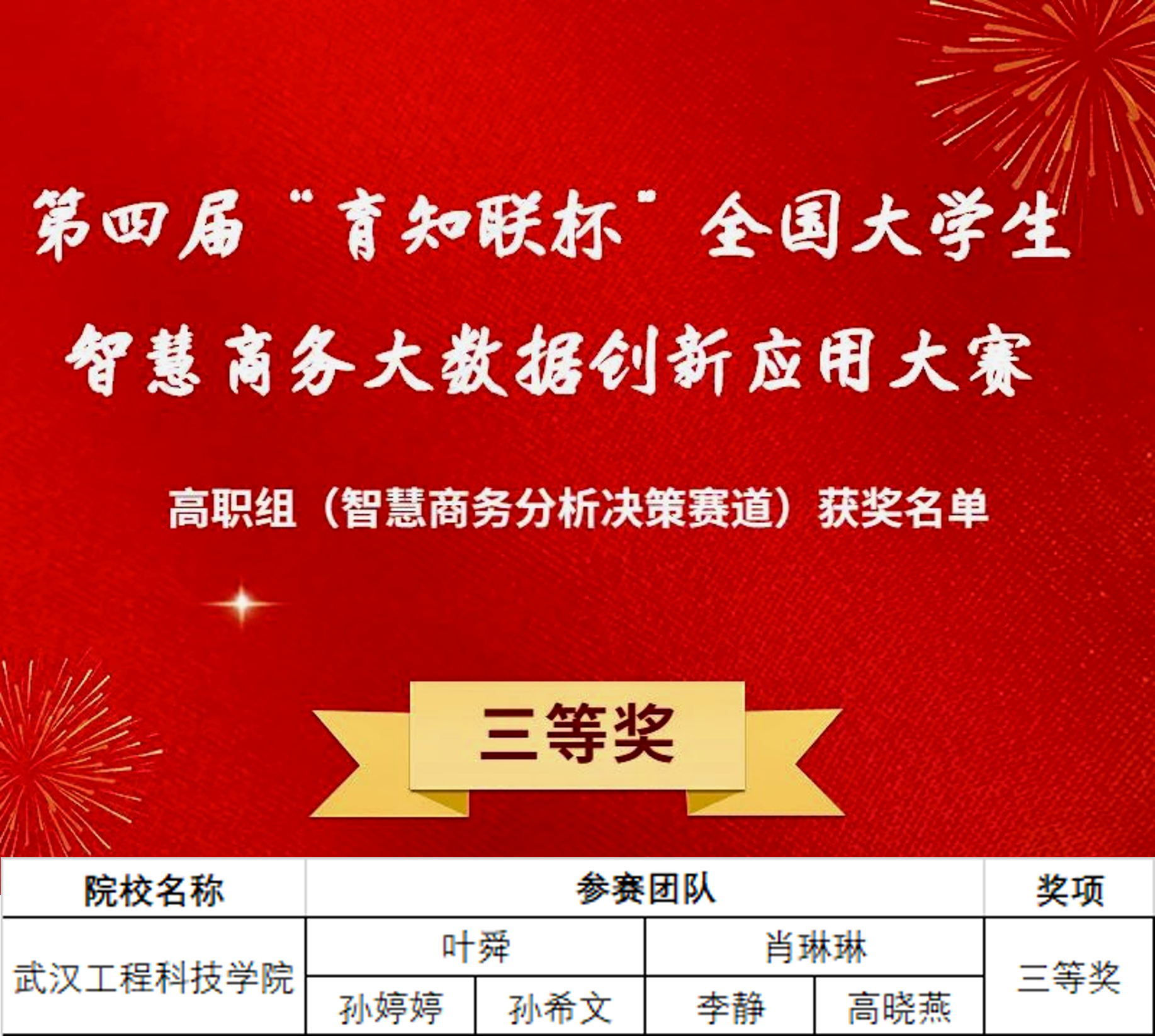 喜报!武工院学子在第四届“育知联杯”全国智慧商业大数据创新应用大赛总决赛中斩获多个奖项