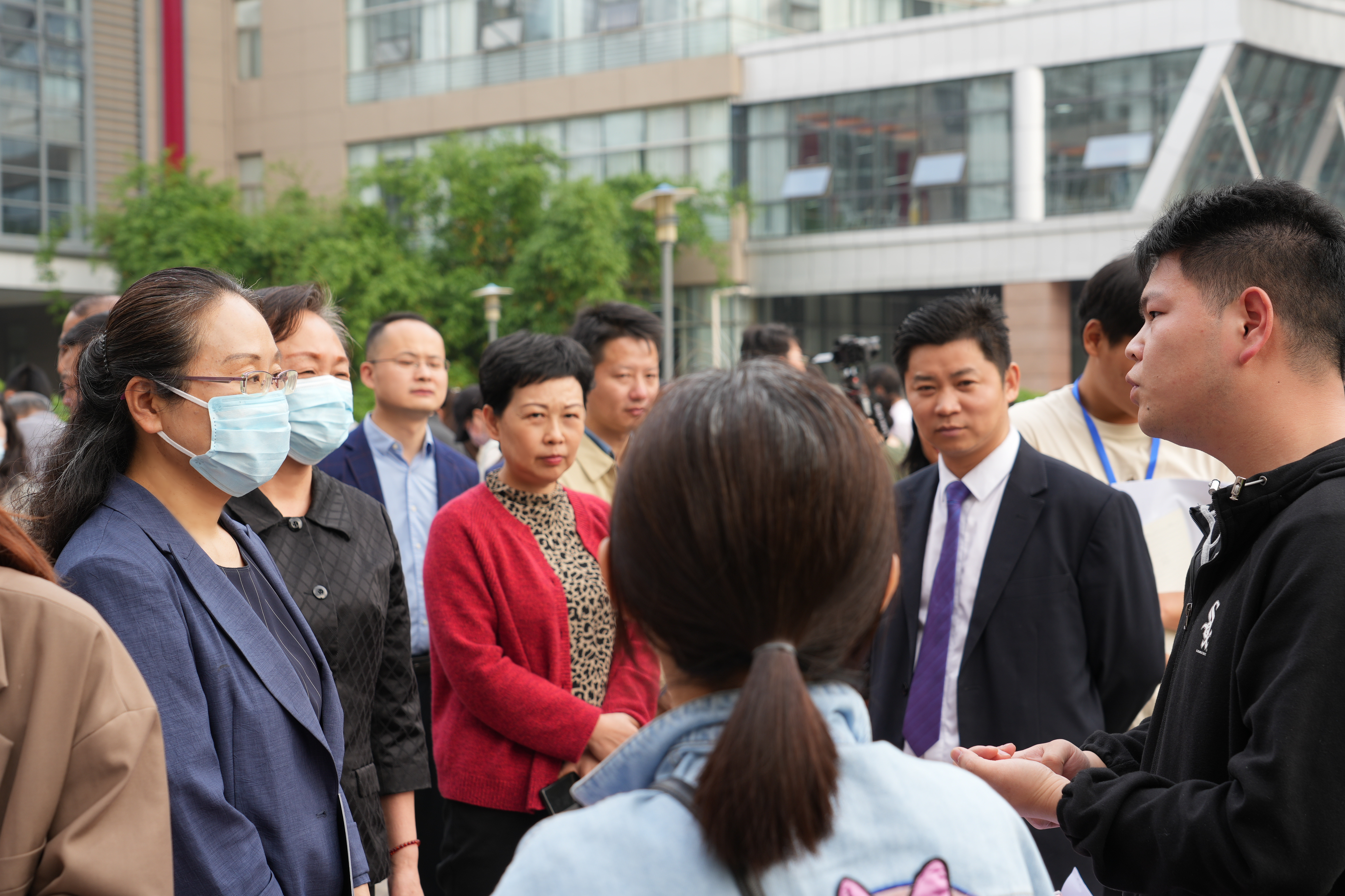 校园文化长廊现场,省市区领导体验企业开办“驻校办”全流程,现场人潮涌动,前来咨询注册公司事宜的学生络绎不绝,“真的是一站式服务,太方便了!”2020级环境设计专业的学生蔡彬彬兴奋地说。